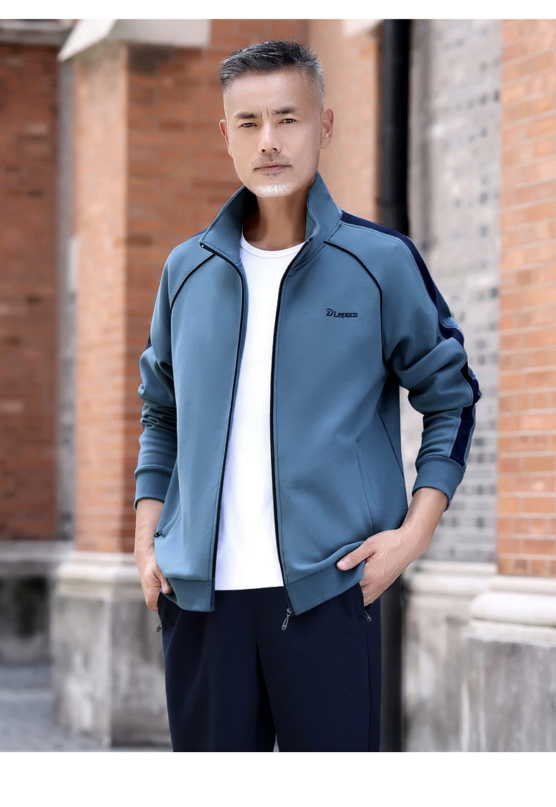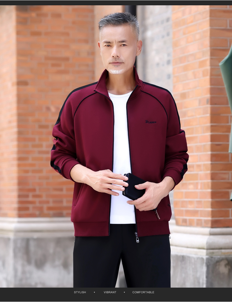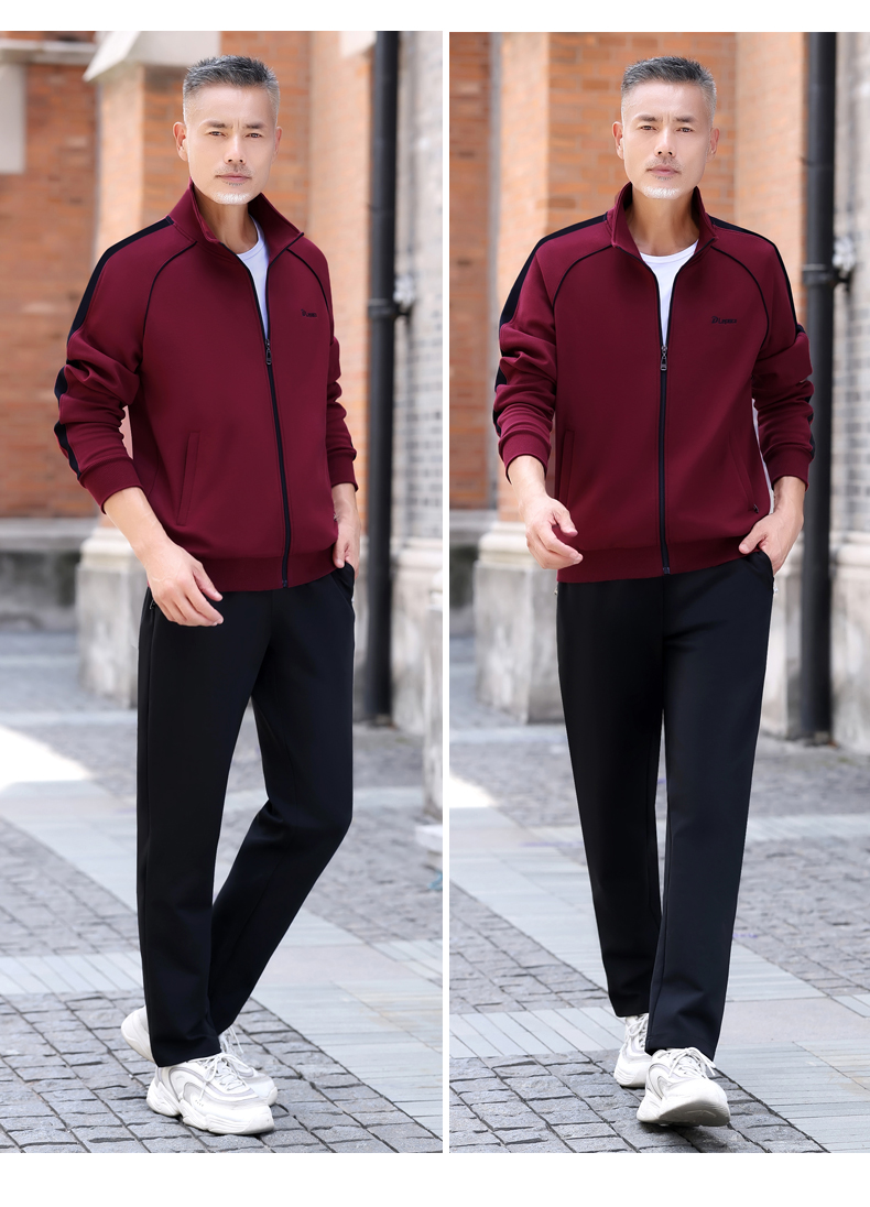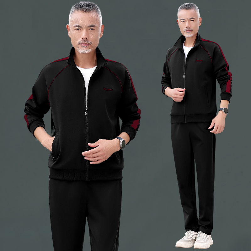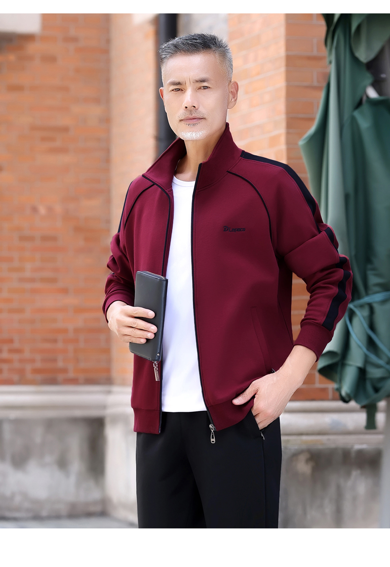 양면 면 아빠 봄과 가을 세트 2024 새로운 카디건 긴 소매 달리기 중년 노인 남성 캐주얼 스포츠 의류스토어 가기