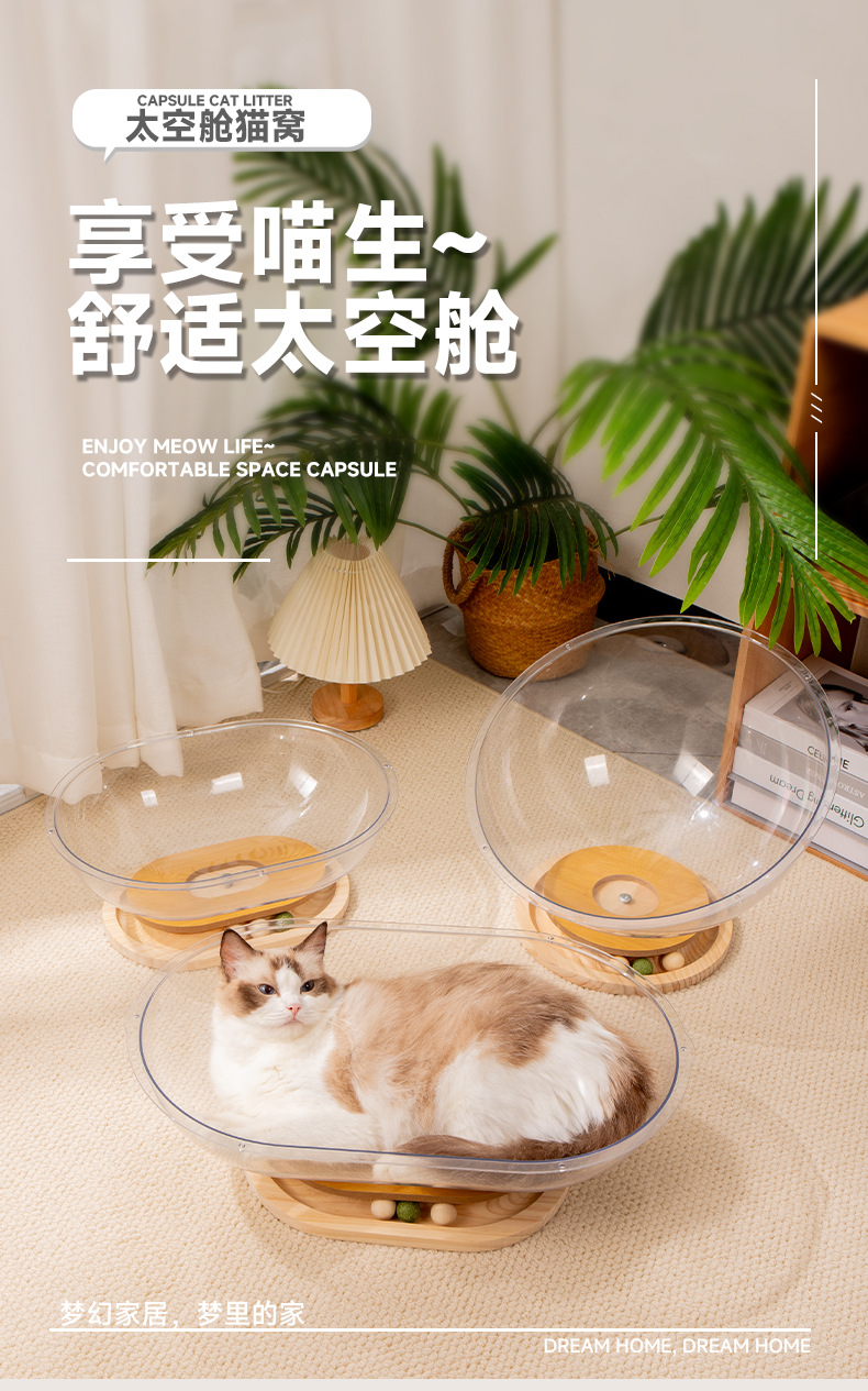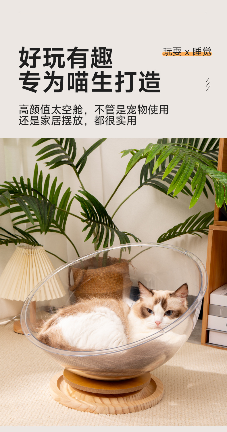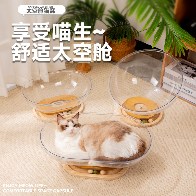 우주 캡슐 아크릴 고양이 둥지 사계절 유니버설 여름 고양이 둥지 턴테이블 고양이 장난감 침대 통합 반 폐쇄 얼음 둥지스토어 가기