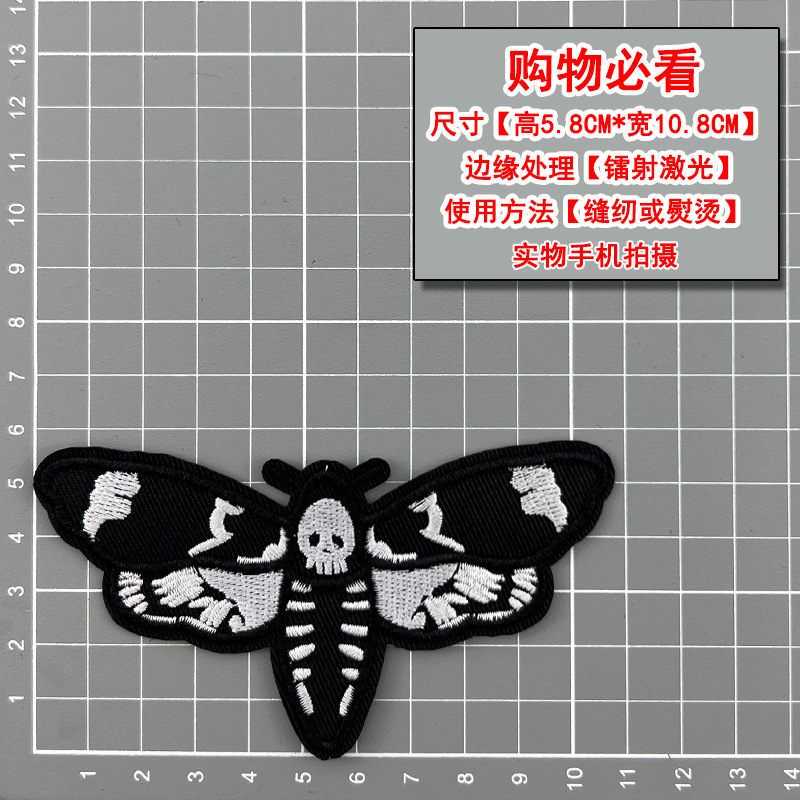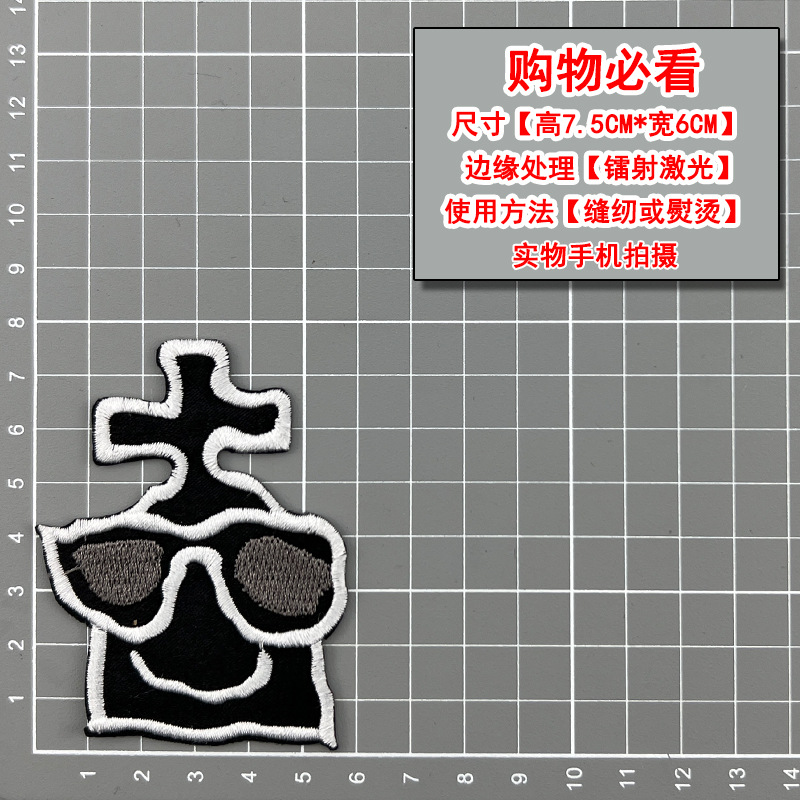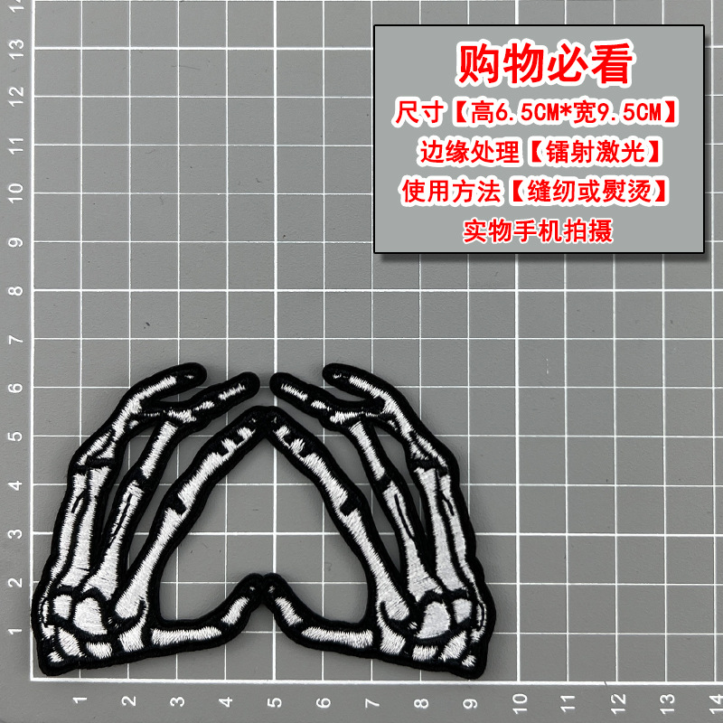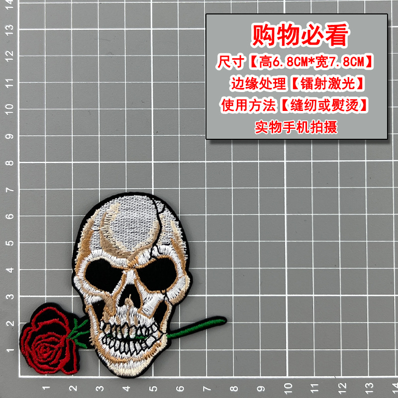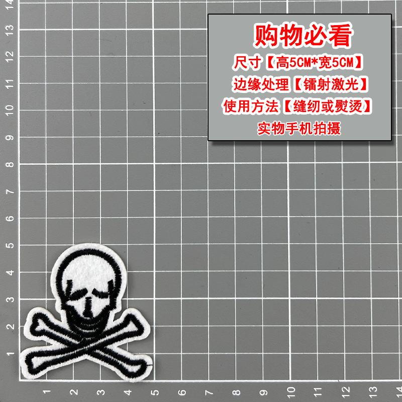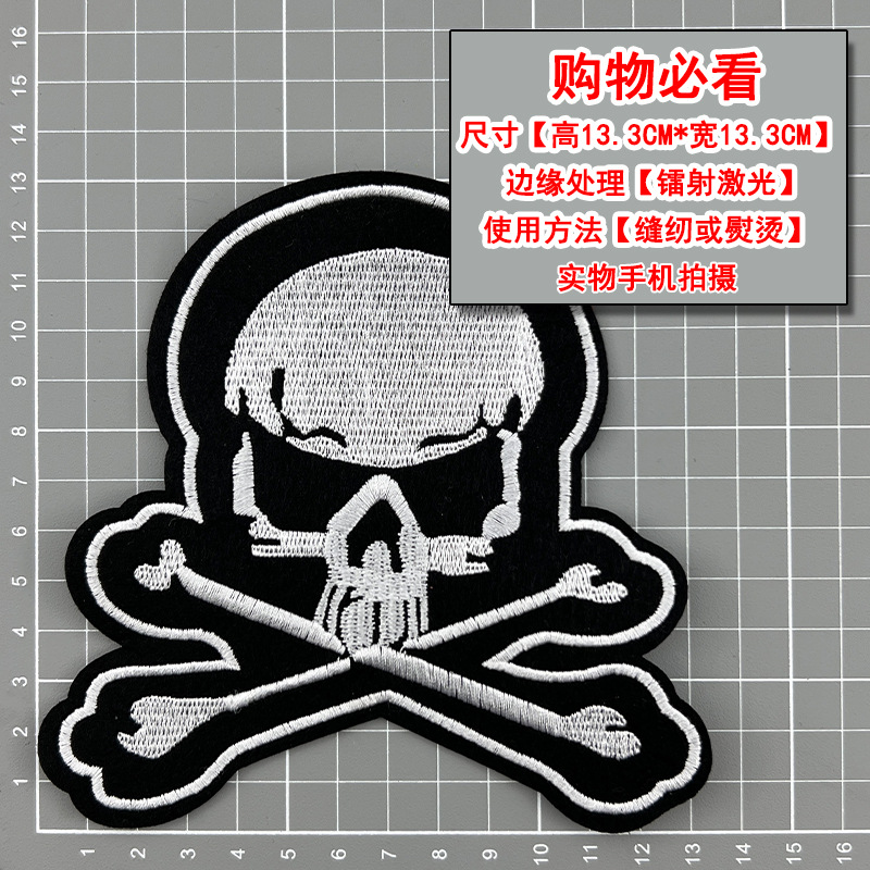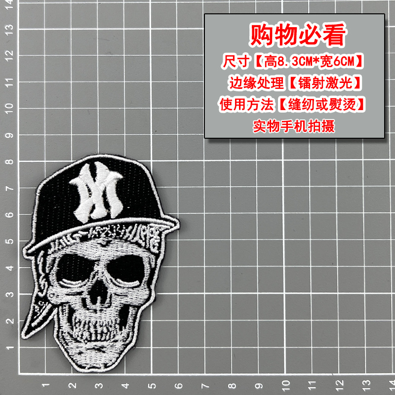 무역 스타일 흑백 록 펑크 스타일 자수 두개골 천 스티커 옷 모자 구멍 수리 패치