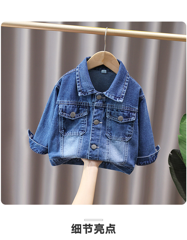 어린이 착용 5 소년 봄과 가을 코트 2024 새로운 스타일의 단색 데님 톱 7 어린이 유행 재킷 트렌디스토어 가기