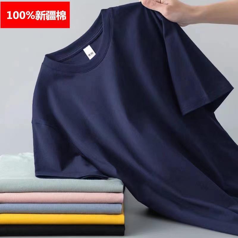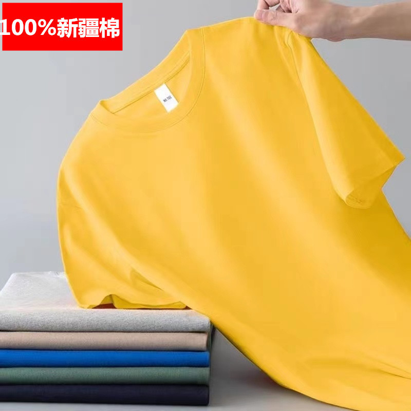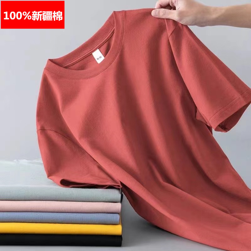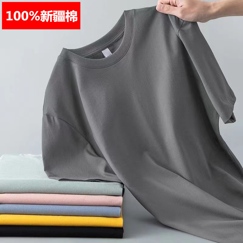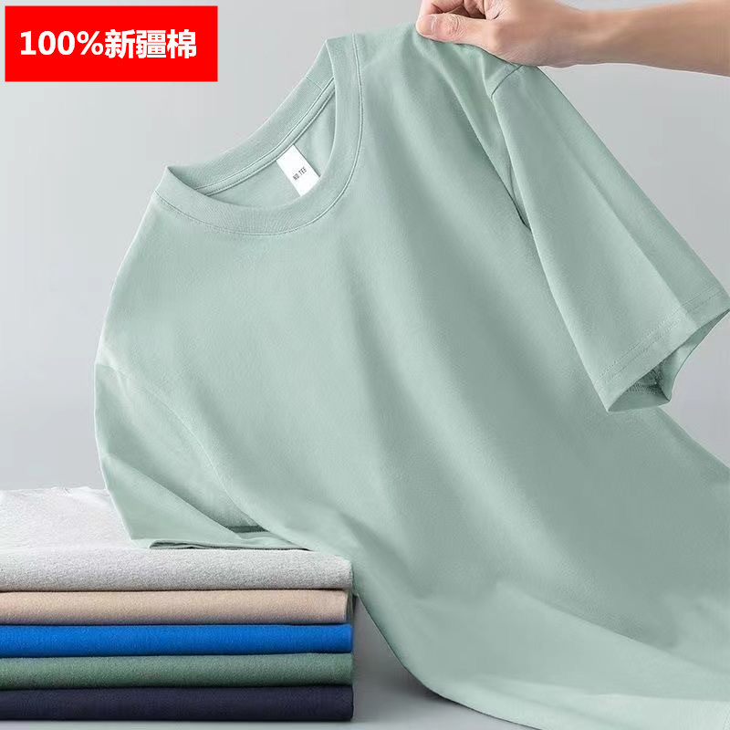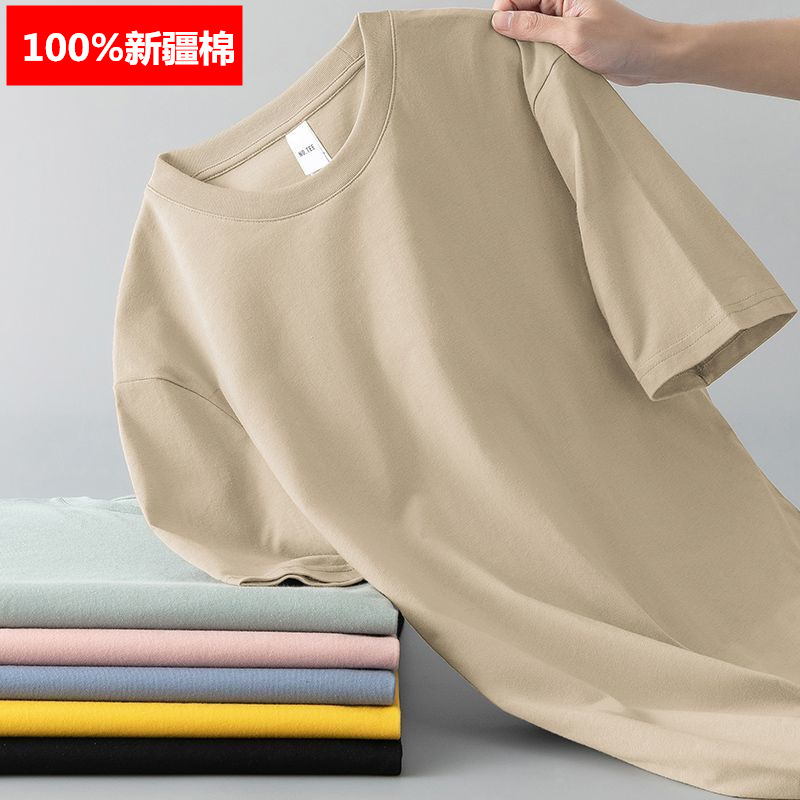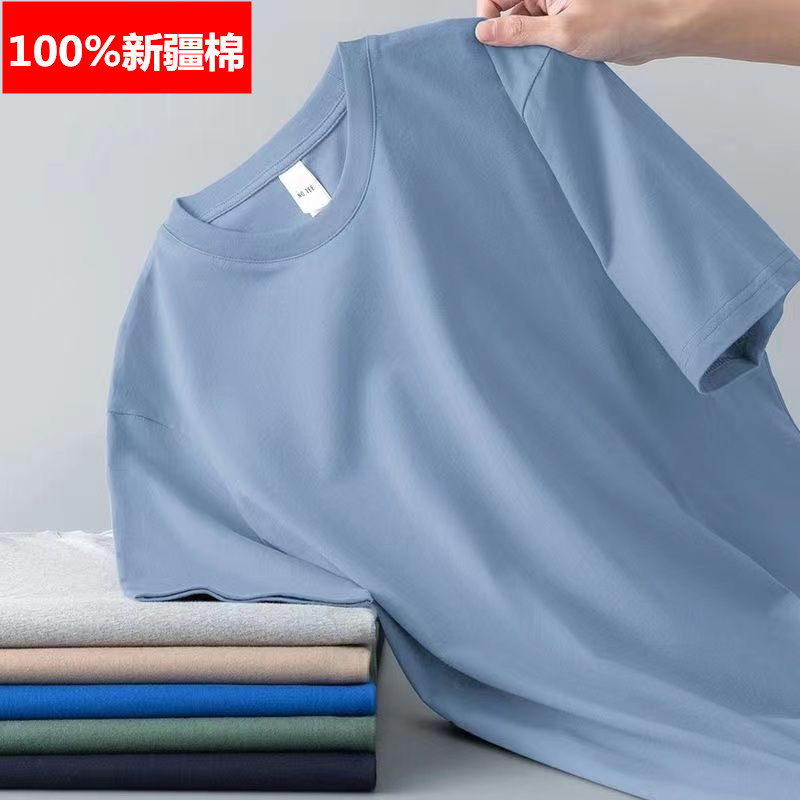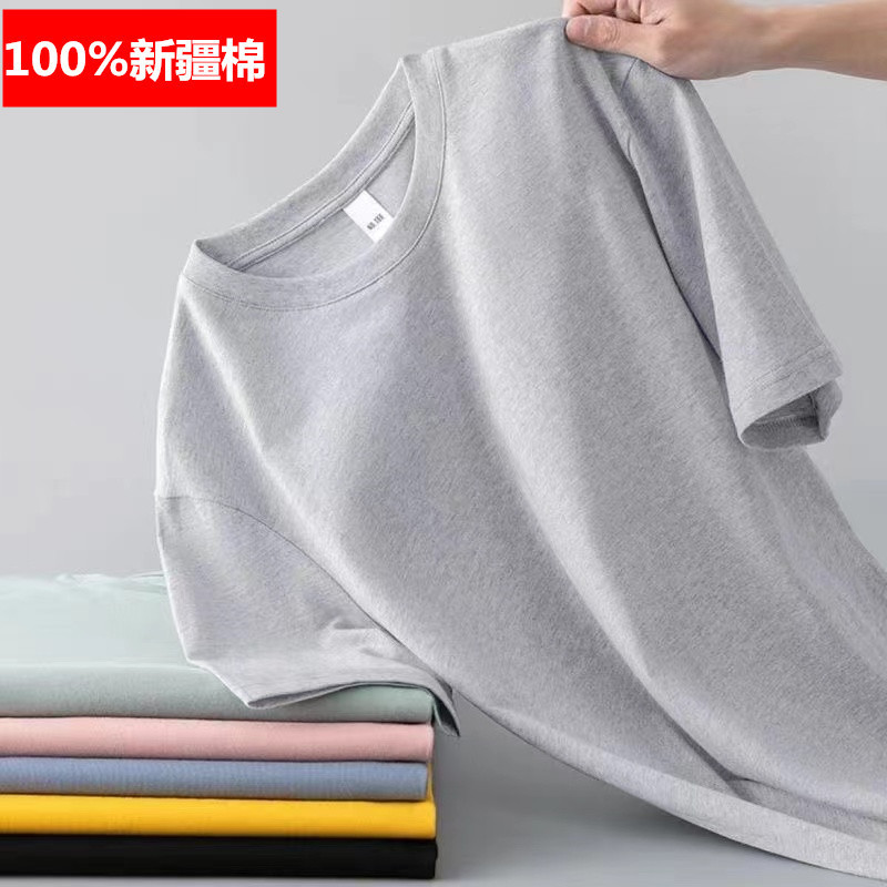 신장 면 남자 티셔츠 짧은 소매 2024 새로운 여름 올 매치 느슨한 단색 라운드 넥 트렌드스토어 가기