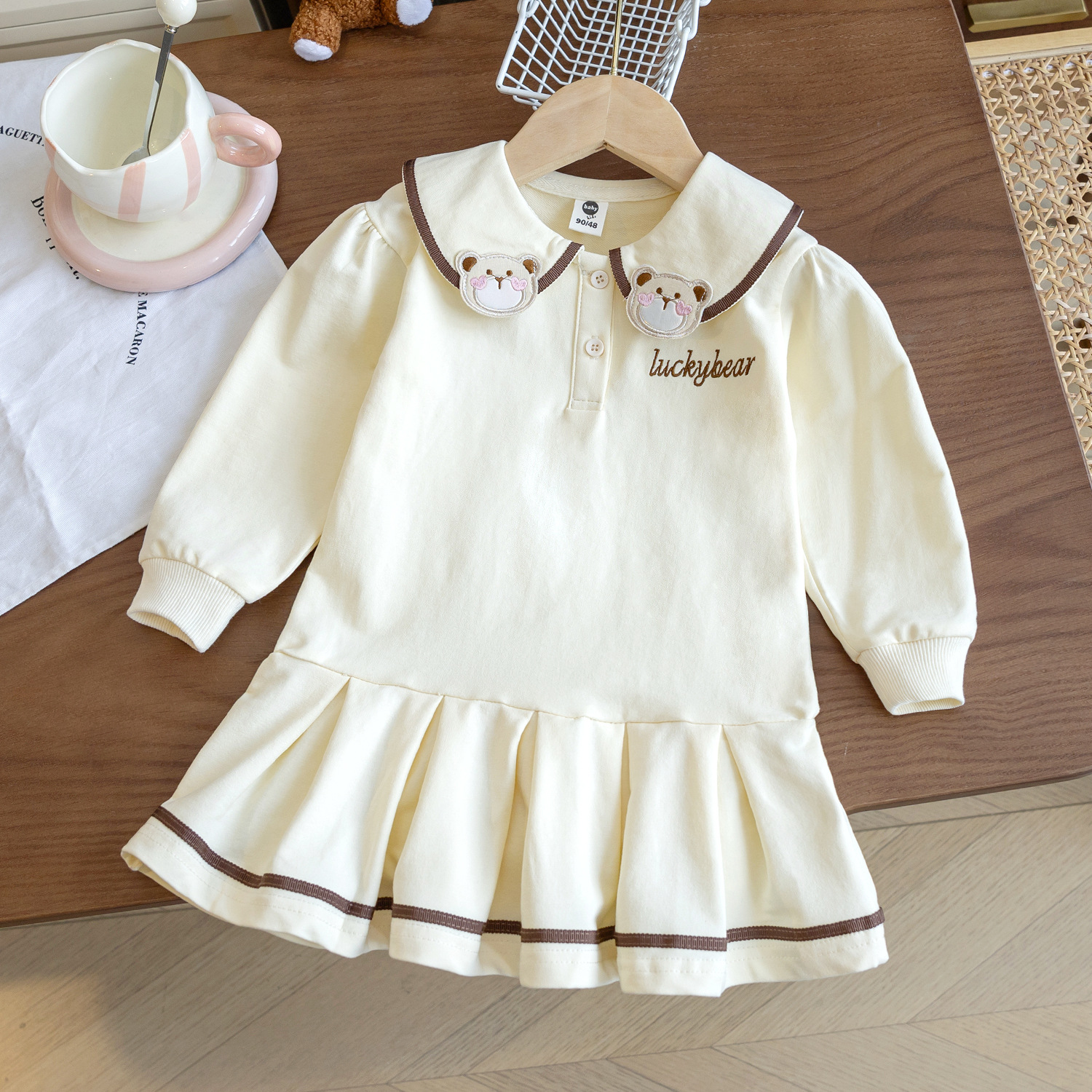 소녀 폴로 원피스 2024 봄과 가을 새로운 어린이 공주 원피스 아기 소녀 대학 스타일 만화 인형 목걸이 원피스스토어 가기