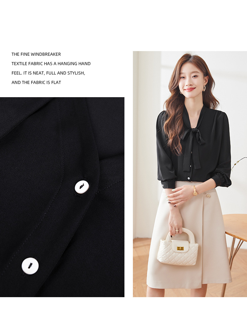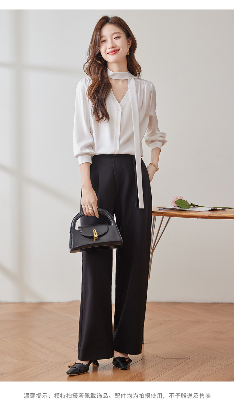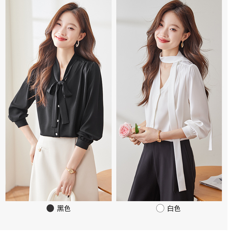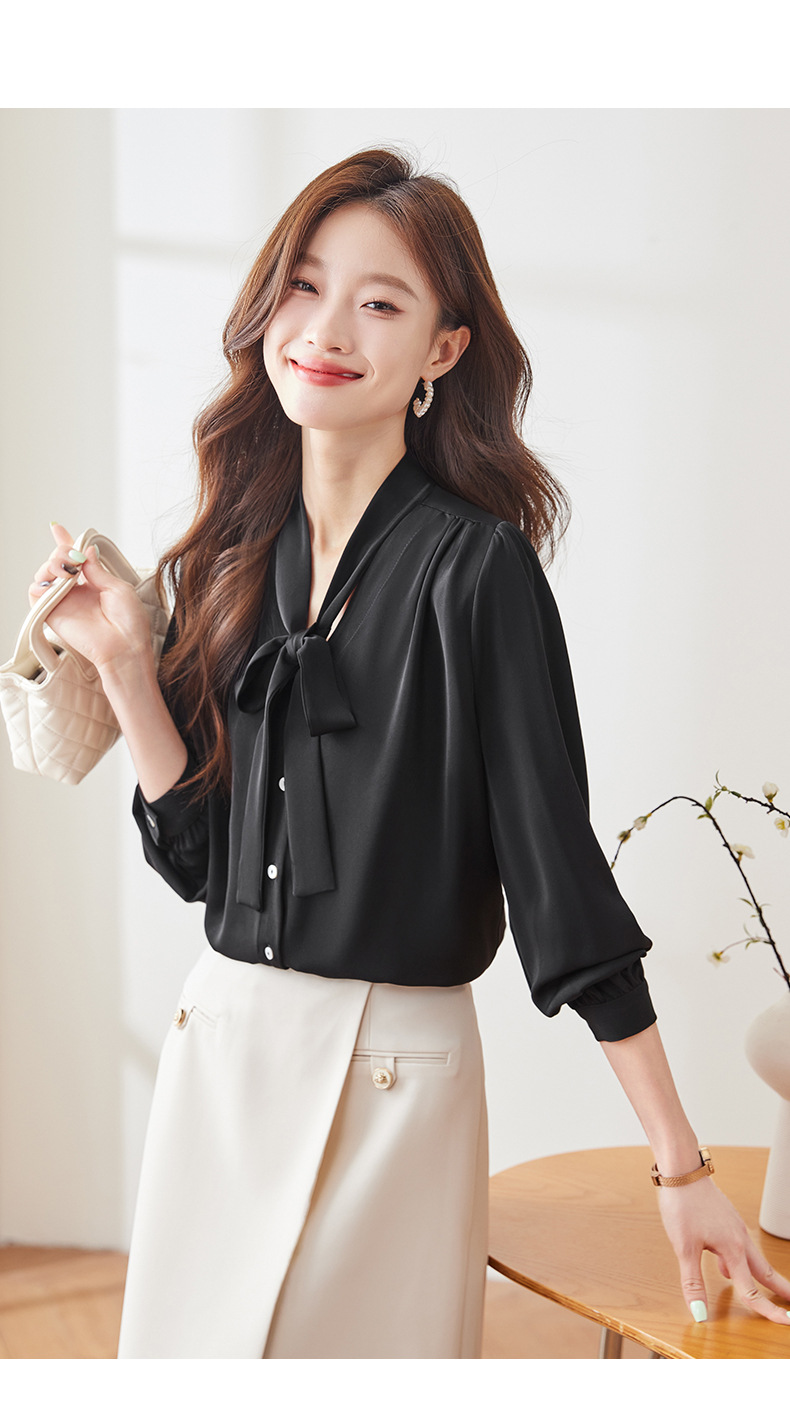 리본 셔츠 여성용 활 2024 새로운 봄과 가을 우아한 스트랩 셔츠 초가을 쉬폰 V 넥 탑 하이 엔드스토어 가기