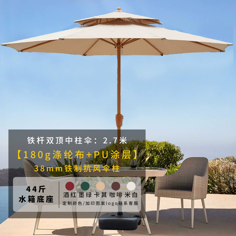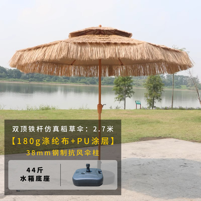 • 철제 이중 상단 시뮬레이션 밀짚 중앙 기둥 우산 2.7m [물탱크 베이스 22kg 개 포함]