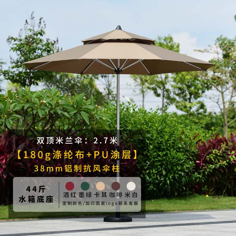 • 알루미늄 폴 더블탑 밀란 우산 2.7m [물탱크 베이스 22kg개 포함, 색상 메시지 남겨주세요]