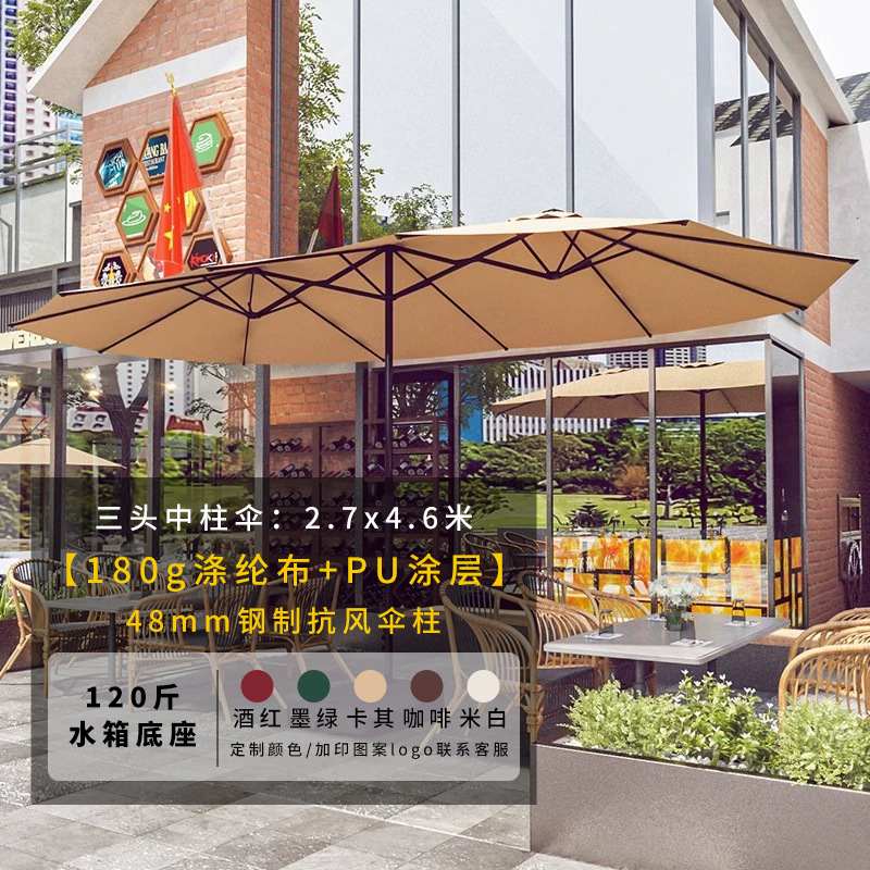 • 철제 삼두 센터 기둥 우산 2.7* 4.6m [물탱크 베이스 60kg개 포함, 색상 메시지 남겨주세요]