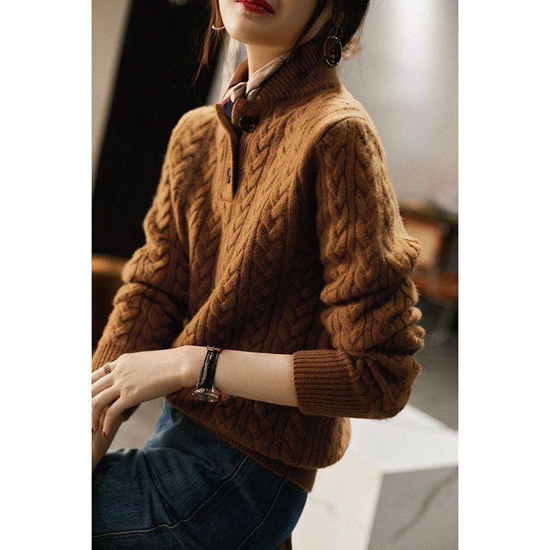 샤오 샹 스타일 니트 카디건 재킷 2024 가을과 겨울 새로운 유럽 스타일 여성의 두꺼운 칼라베이스 스웨터스토어 가기