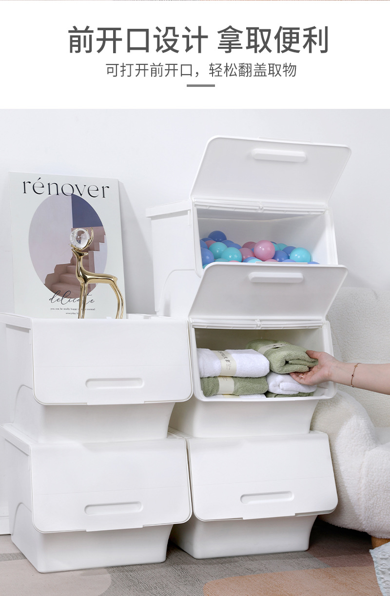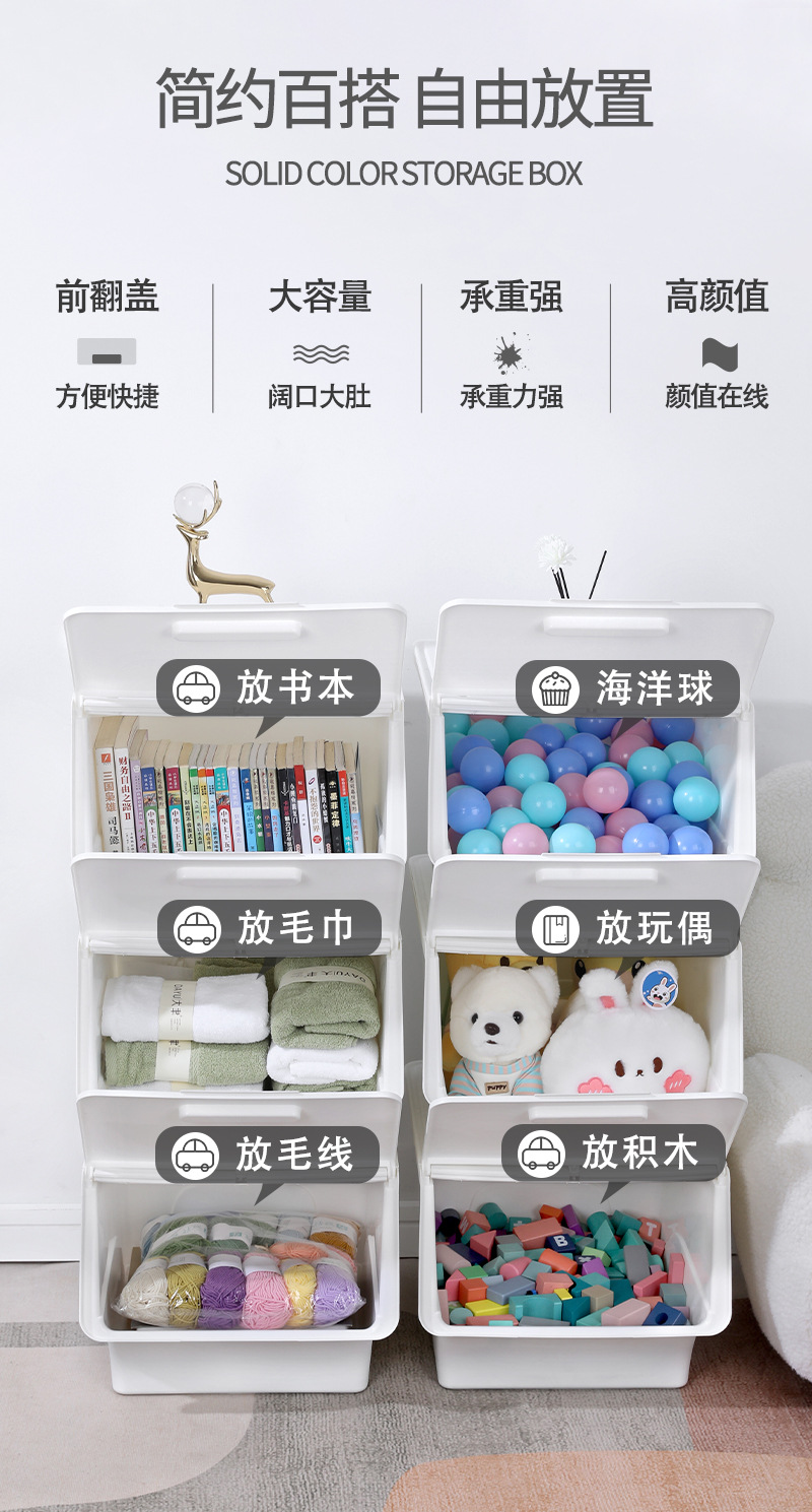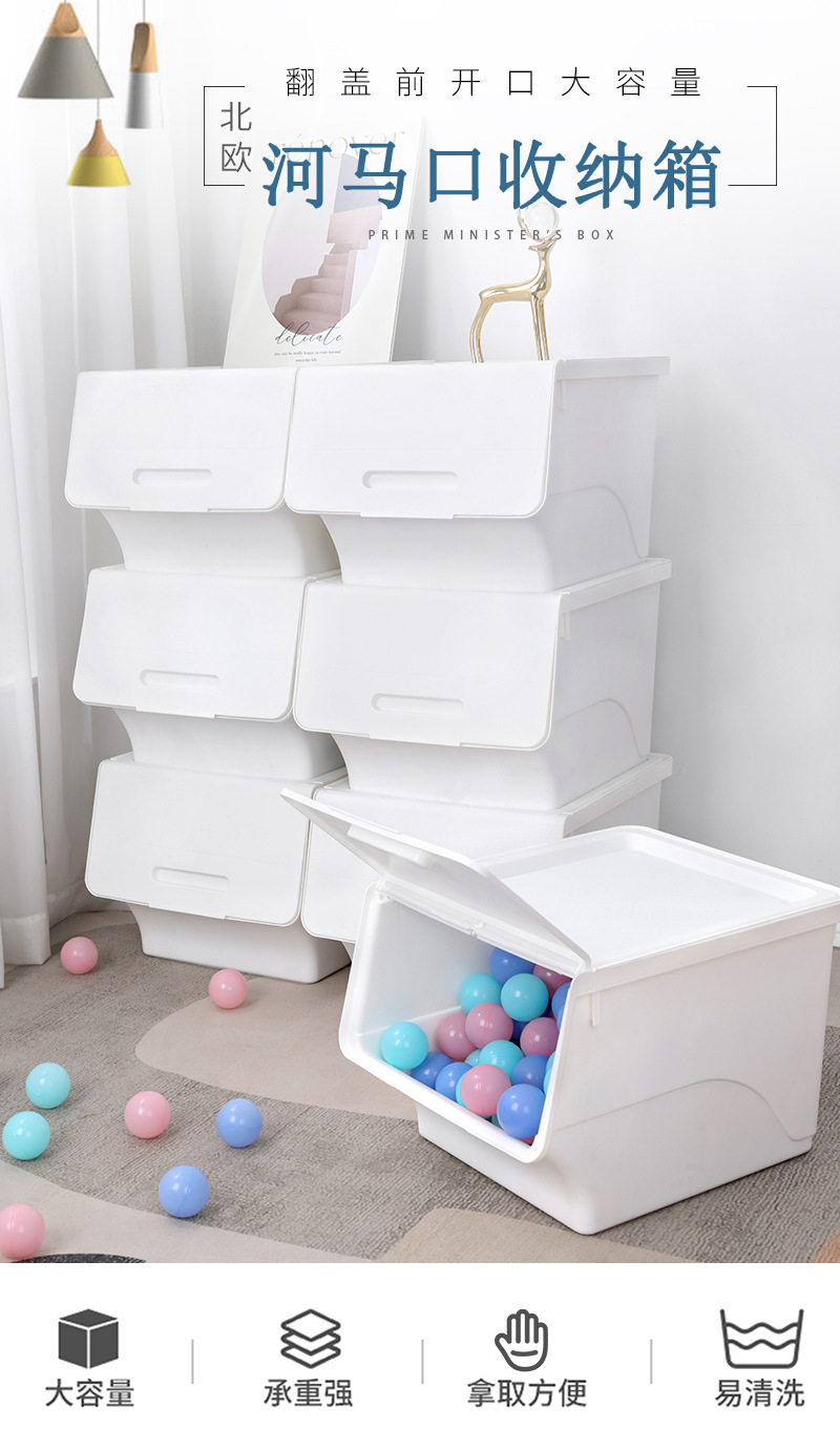 전면 오픈 플립 스토리지 박스 도매 가정용 스낵 스토리지 박스 책 옷은 어린이 장난감 정리 상자를 구성합니다.