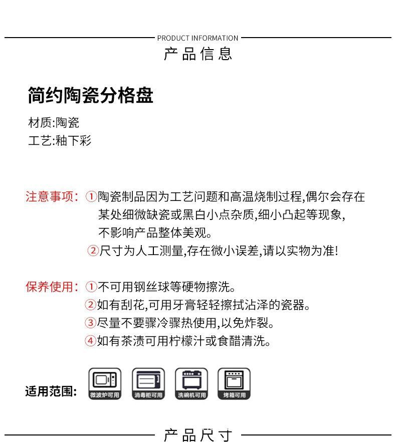 세라믹 식기 분할 접시 어린이용 분할 식판 아침 식사 접시 창의적인 분할 접시 가정용 다이어트 및 체중 감량용