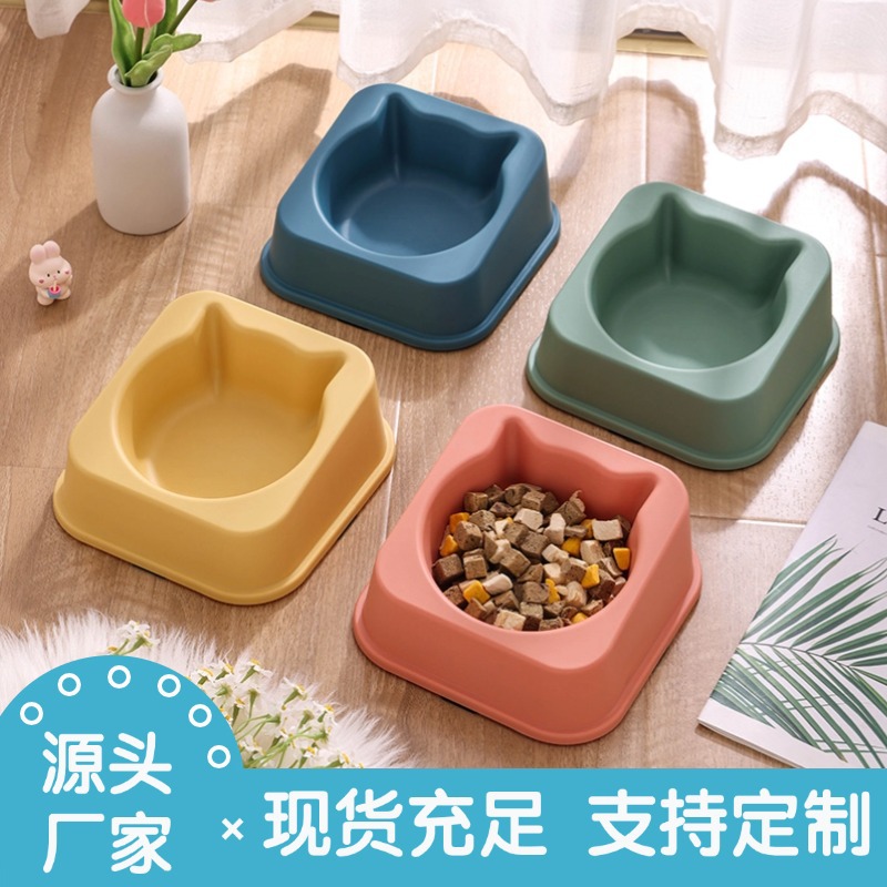 재고 도매 컬러 애완 동물 그릇 고양이와 개 그릇 만화 고양이 얼굴 15 ° 틸트 단일 그릇 고양이와 개 사료 분지 애완 동물 용품