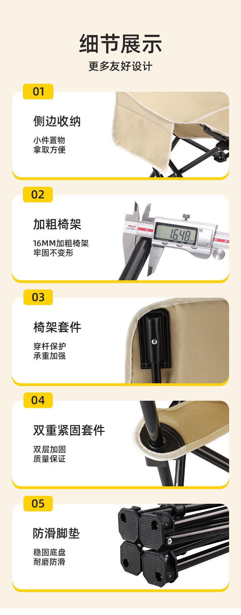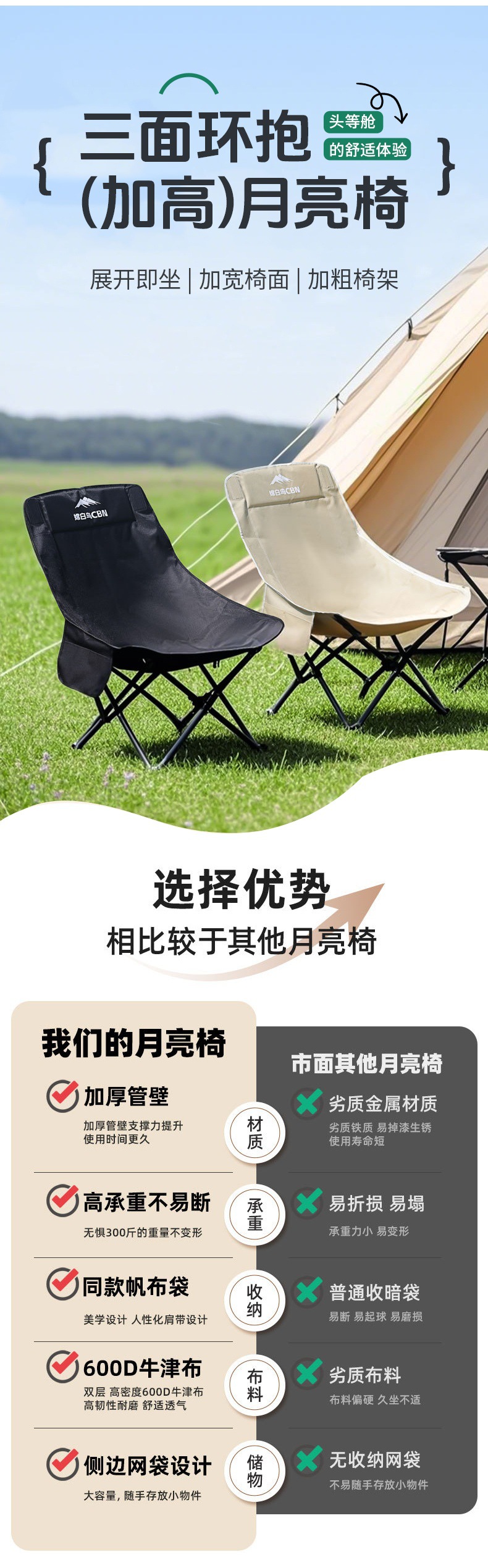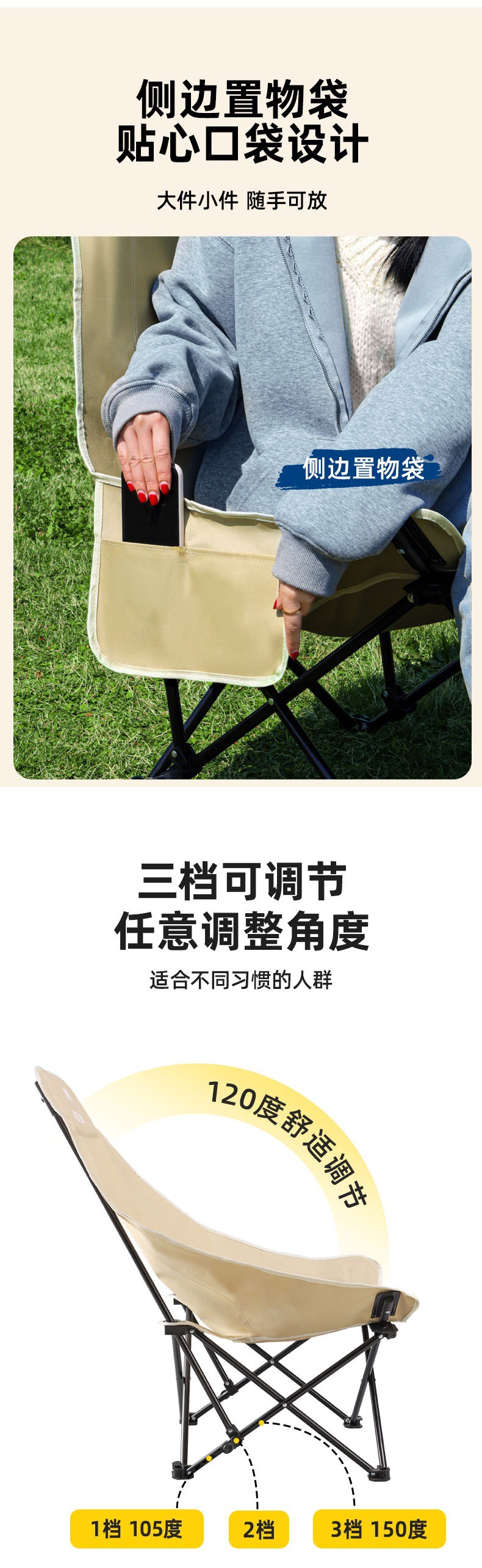 Changbai Bird 야외 휴대용 접이식 달 모양 의자, 등받이 높은 리클라이닝 의자, 야외 캠핑 및 해변용 의자스토어 가기