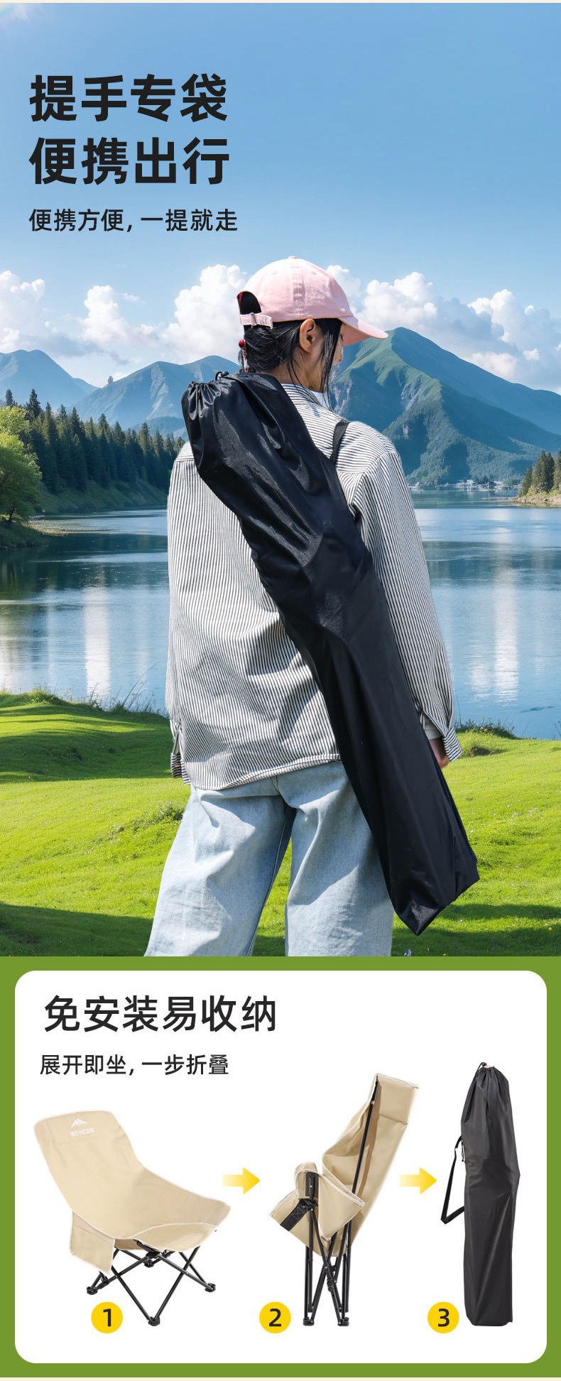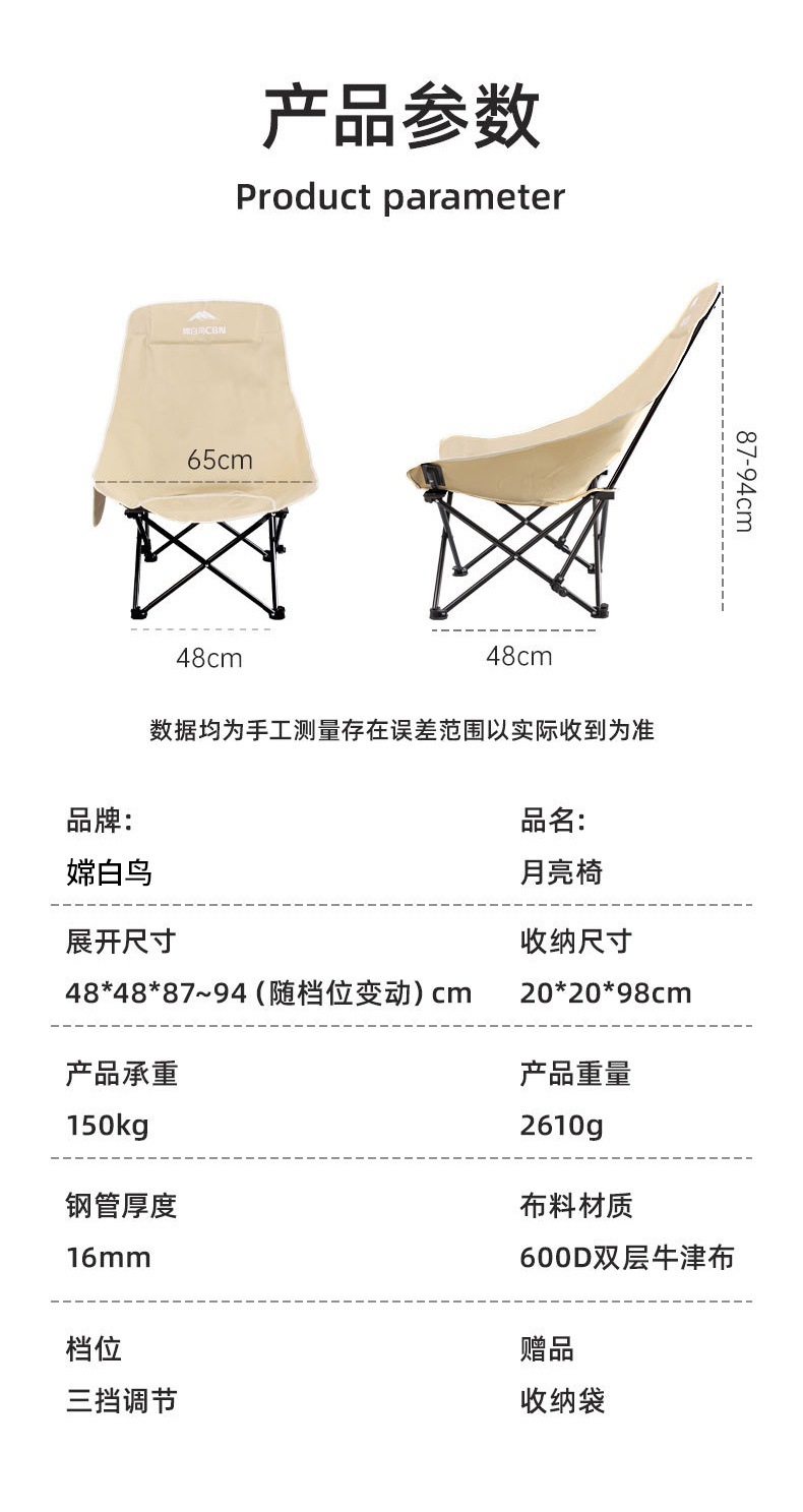 Changbai Bird 야외 휴대용 접이식 달 모양 의자, 등받이 높은 리클라이닝 의자, 야외 캠핑 및 해변용 의자