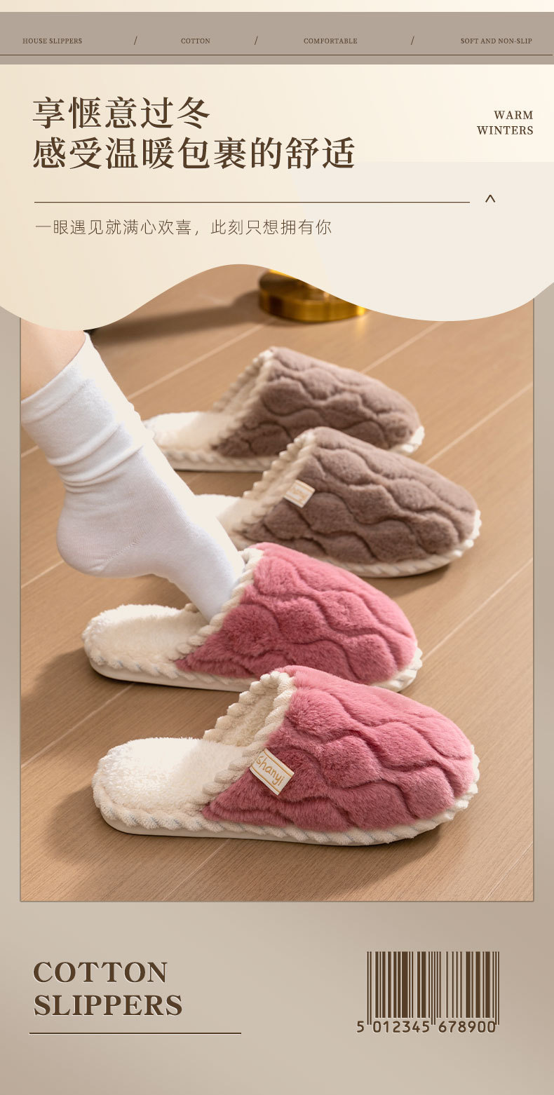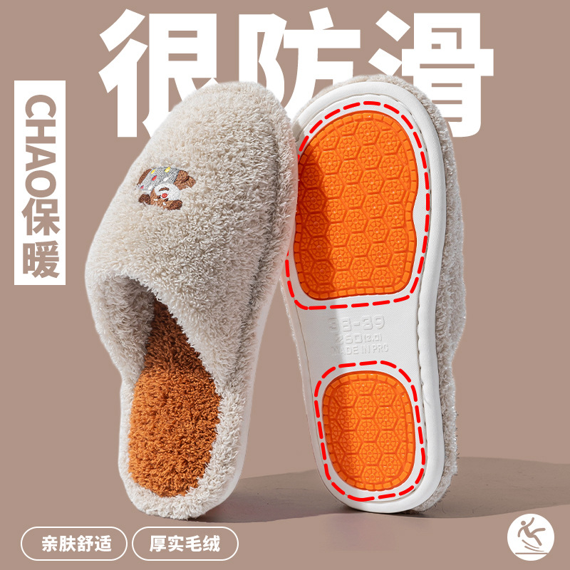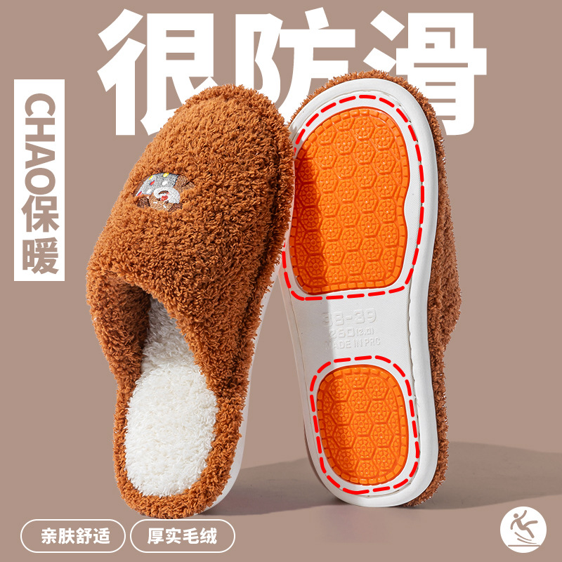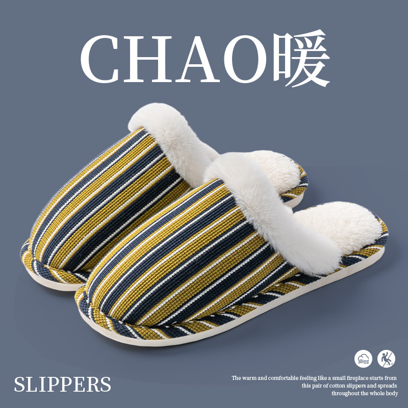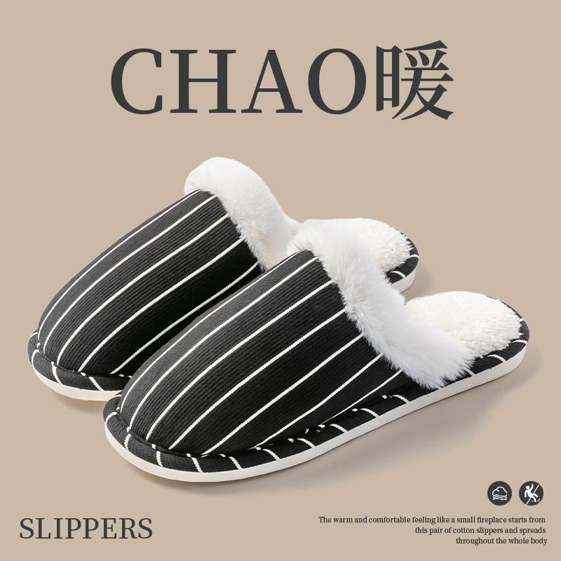 Cixi 면화 슬리퍼 여성 봄과 가을 겨울 홈 실내 미끄럼 방지 홈 따뜻한 커플 겨울 모피 플러시 남성