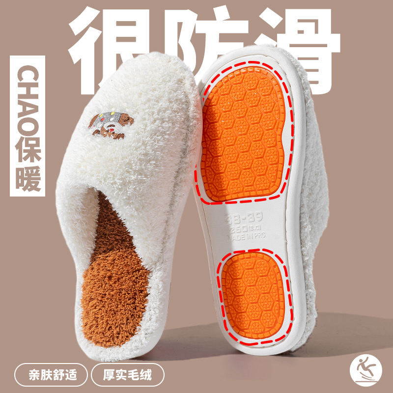 Cixi 면화 슬리퍼 여성 봄과 가을 겨울 홈 실내 미끄럼 방지 홈 따뜻한 커플 겨울 모피 플러시 남성스토어 가기