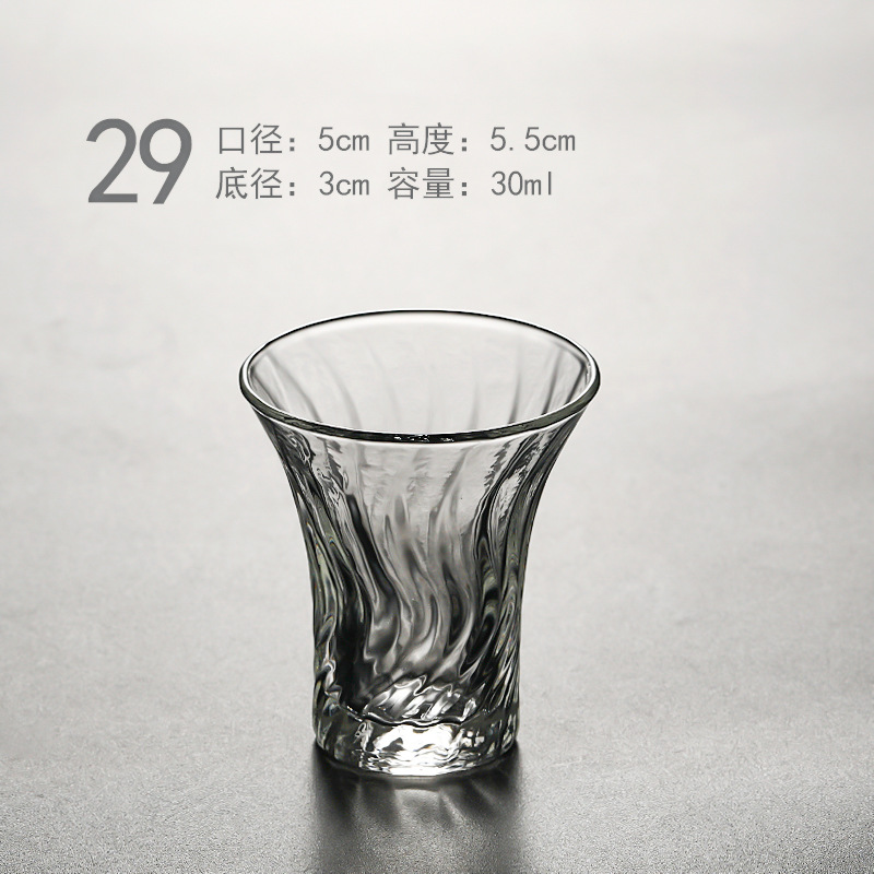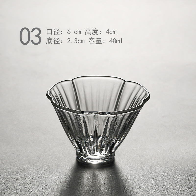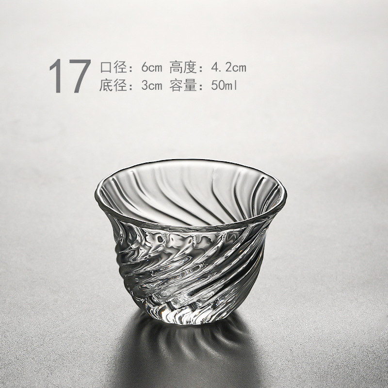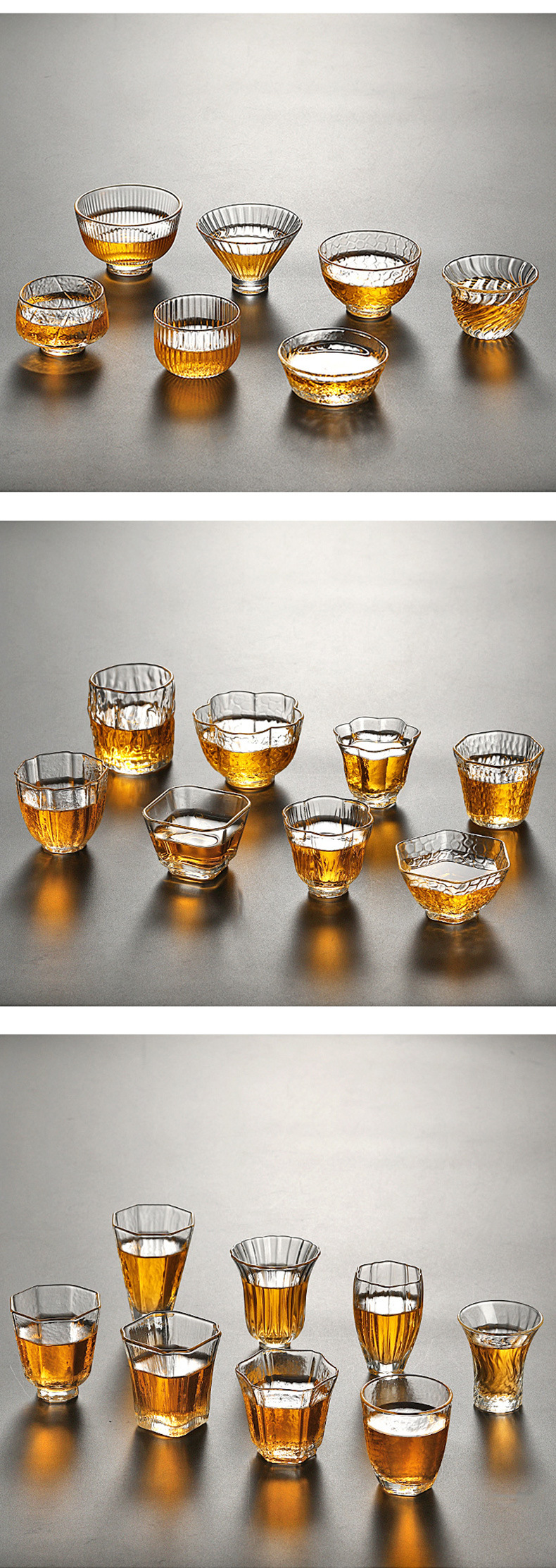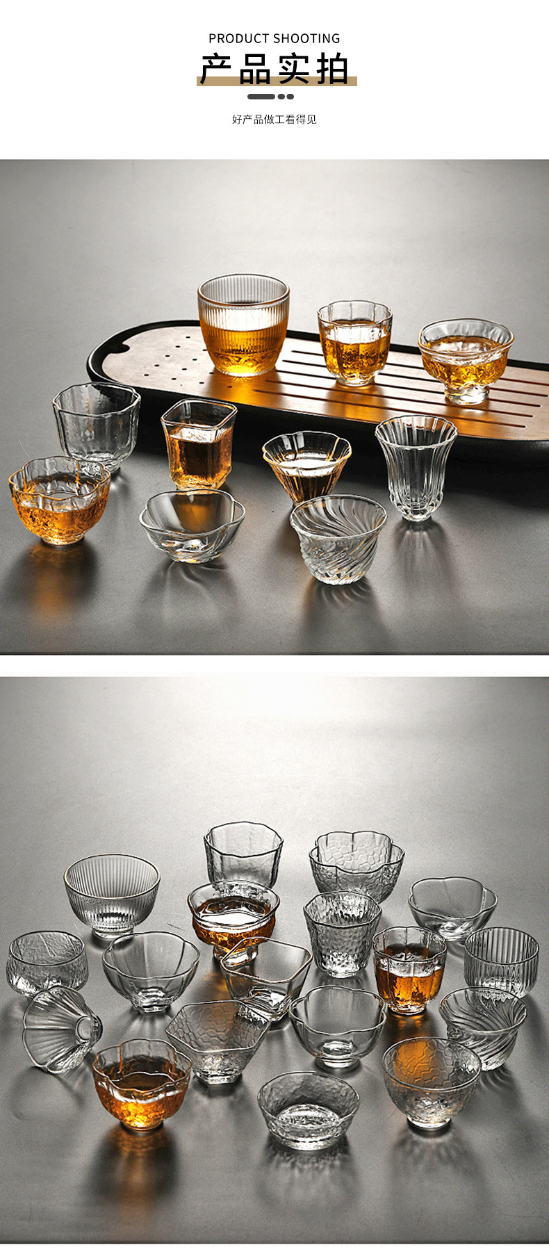 둥근 난로 요리 차 투명한 유리 차 시음 컵 쿵푸 차 세트 높은 붕규산 유리 사무실 다방 환대 작은 차 컵