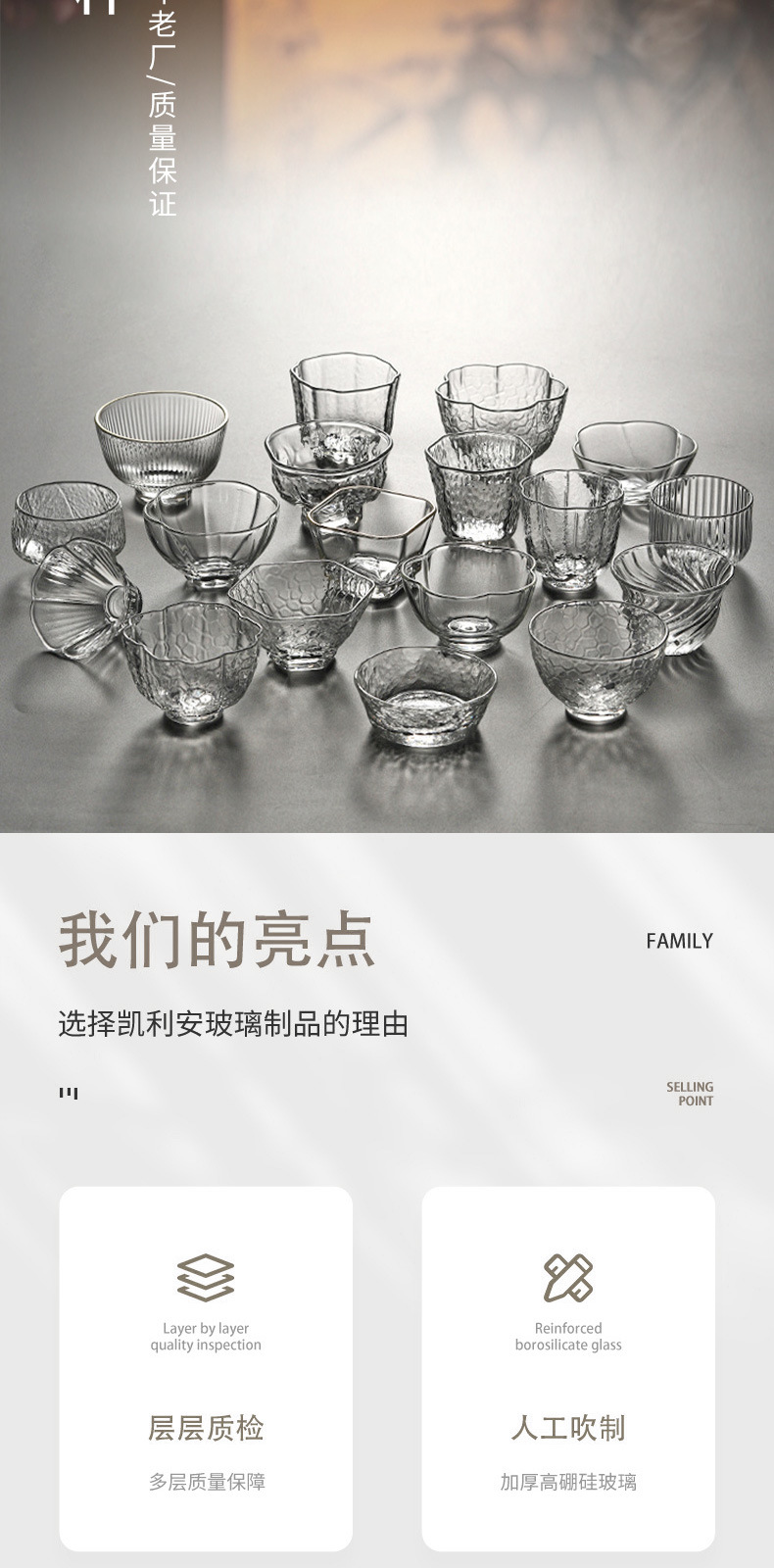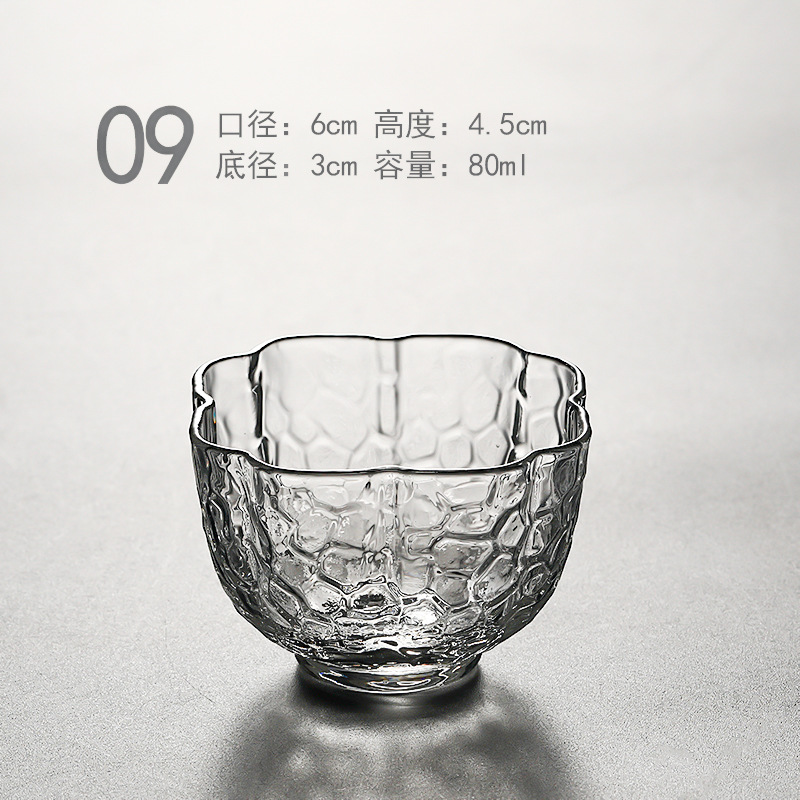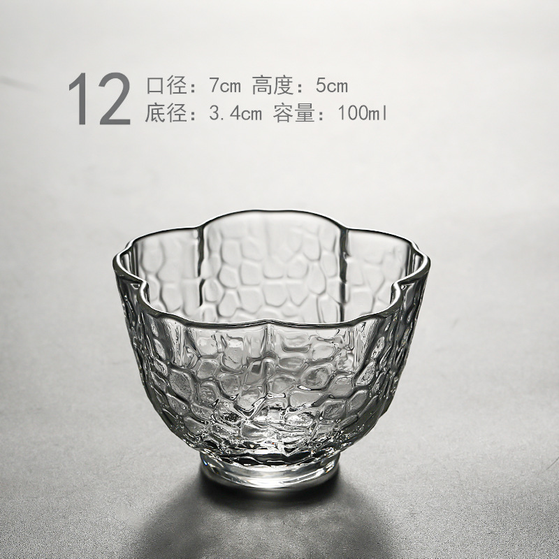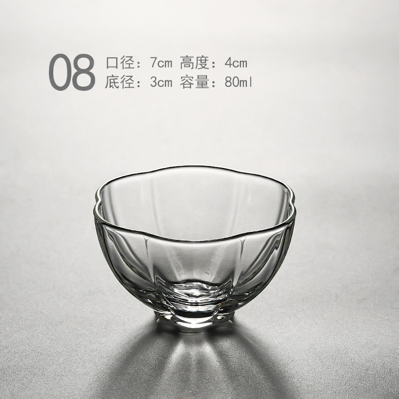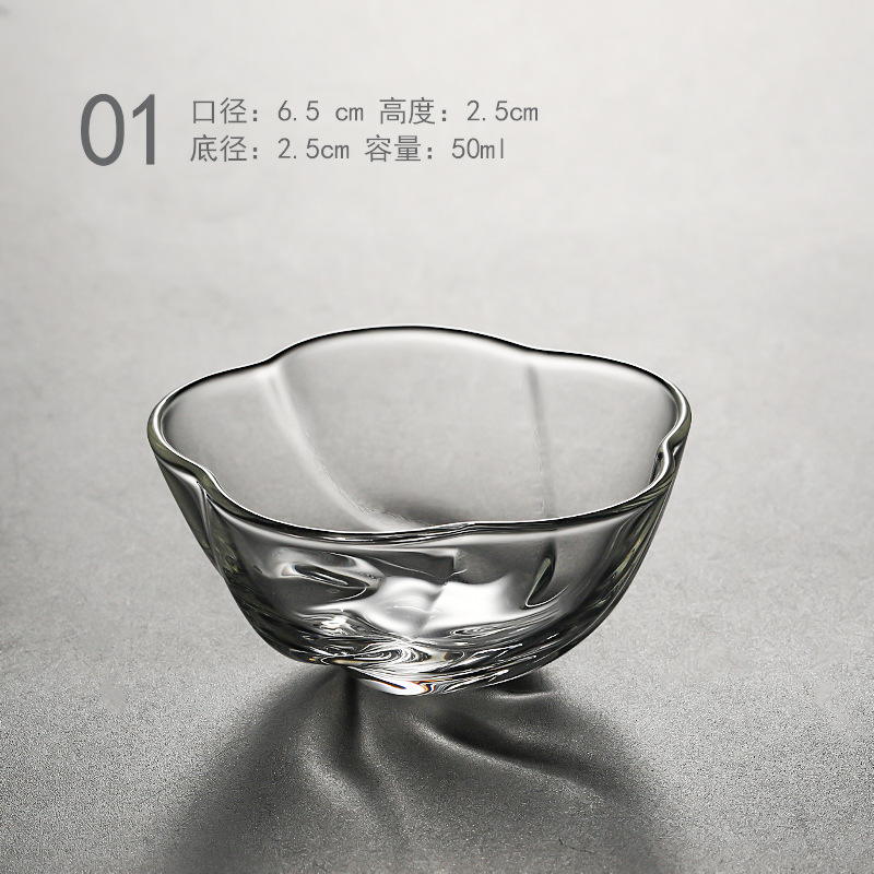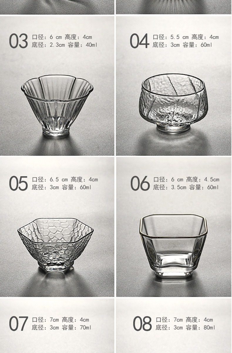 둥근 난로 요리 차 투명한 유리 차 시음 컵 쿵푸 차 세트 높은 붕규산 유리 사무실 다방 환대 작은 차 컵