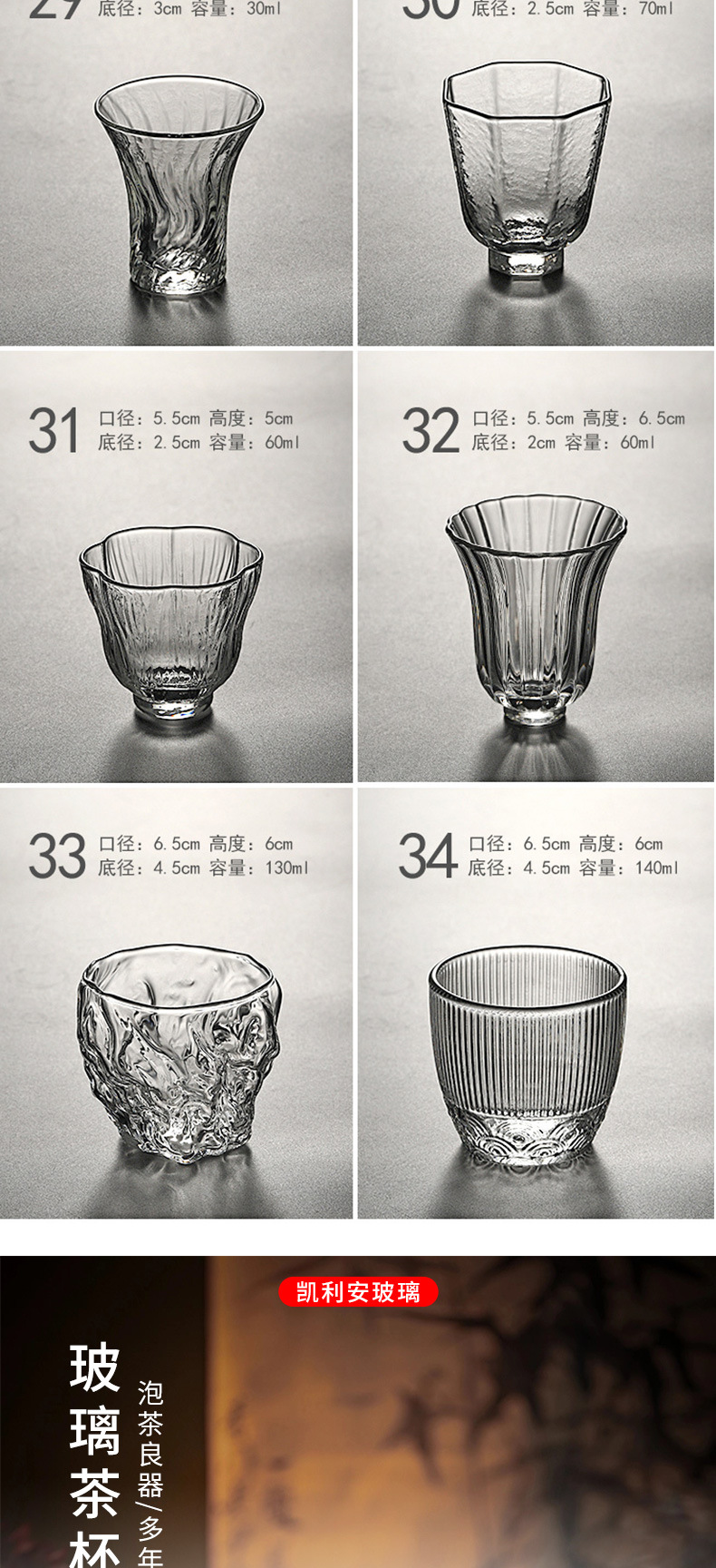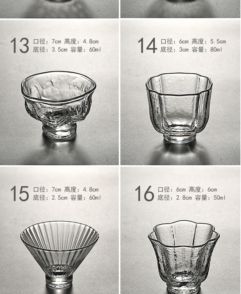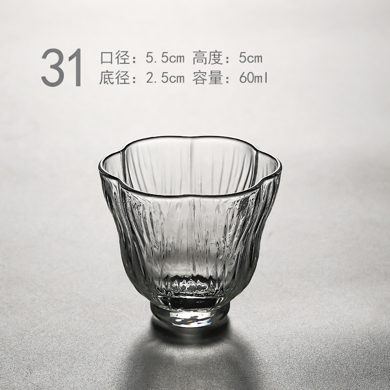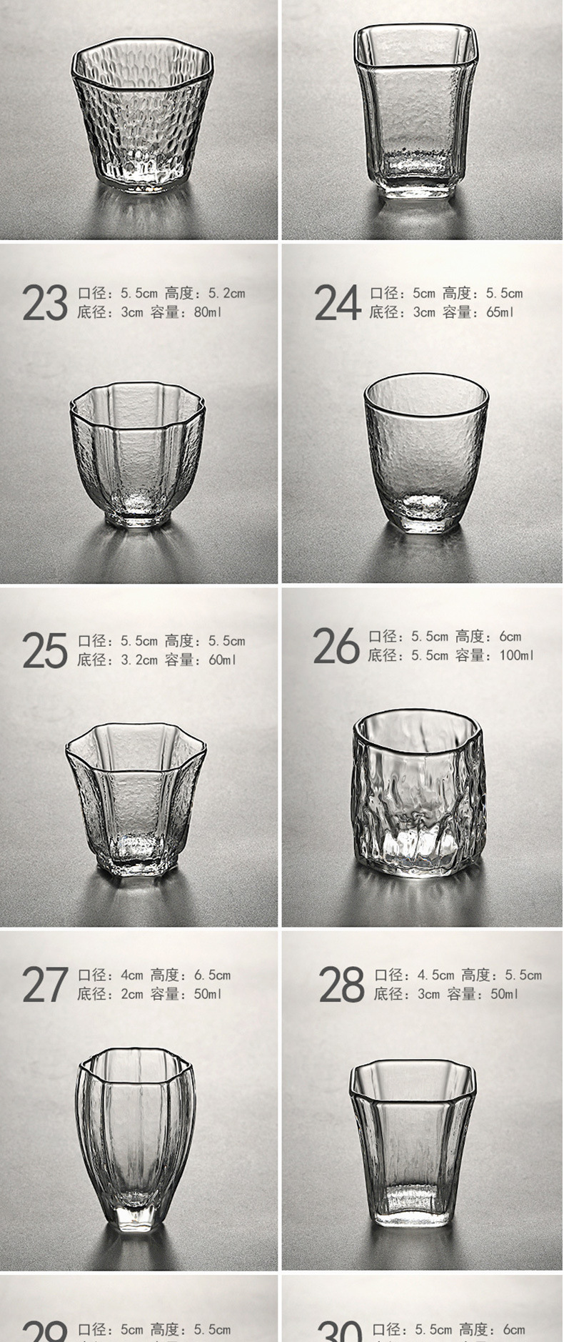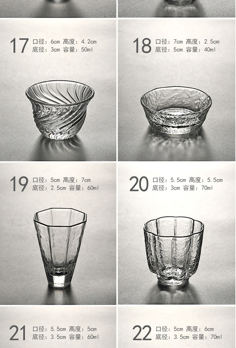 둥근 난로 요리 차 투명한 유리 차 시음 컵 쿵푸 차 세트 높은 붕규산 유리 사무실 다방 환대 작은 차 컵스토어 가기