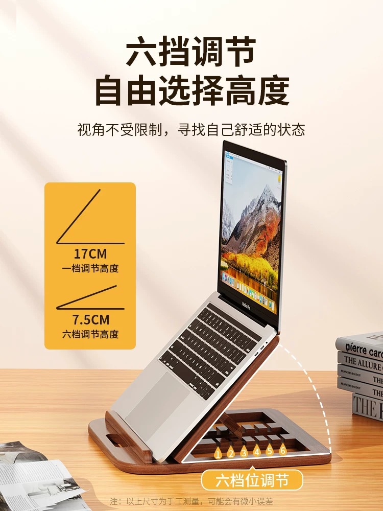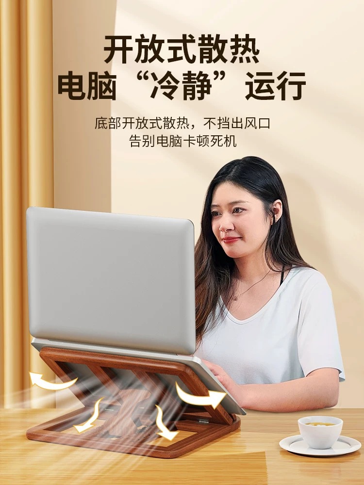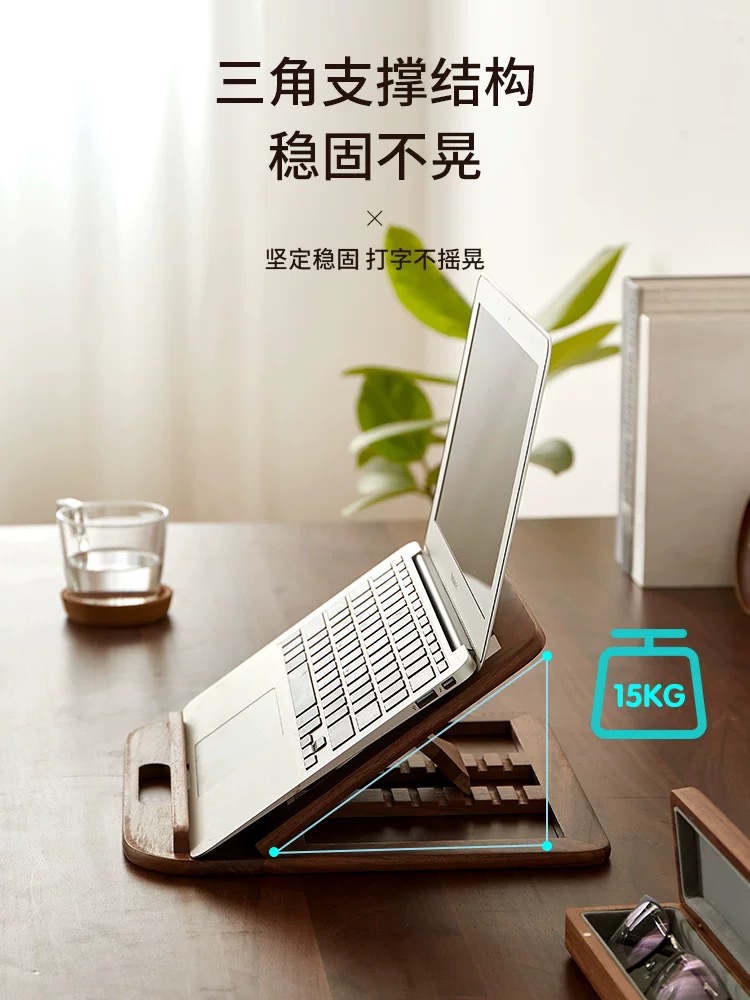 호두 솔리드 우드 데스크탑 노트북 브래킷 가정용 평면 패널 강화 냉각 랙 접이식 휴대용 미니 브래킷