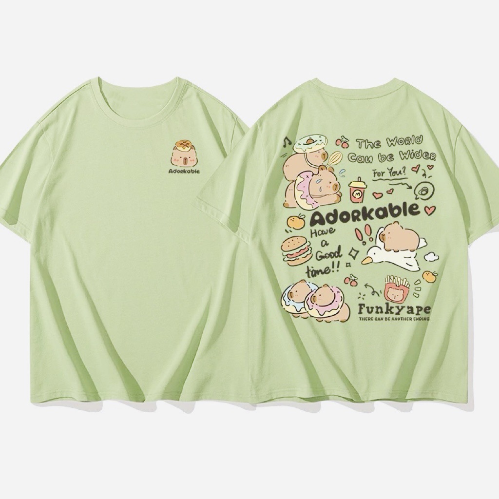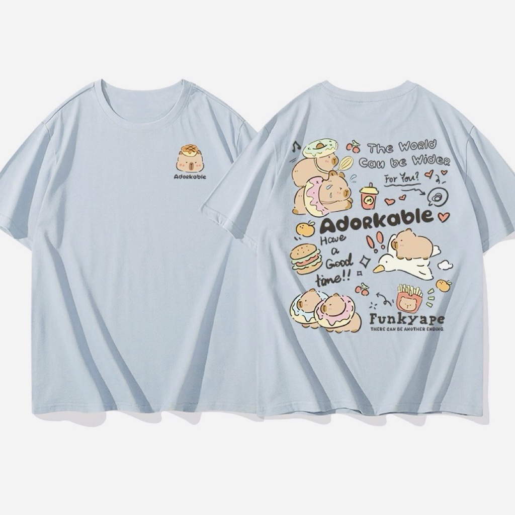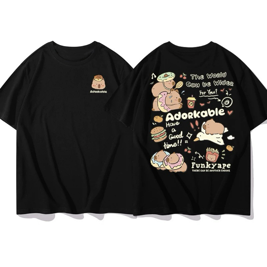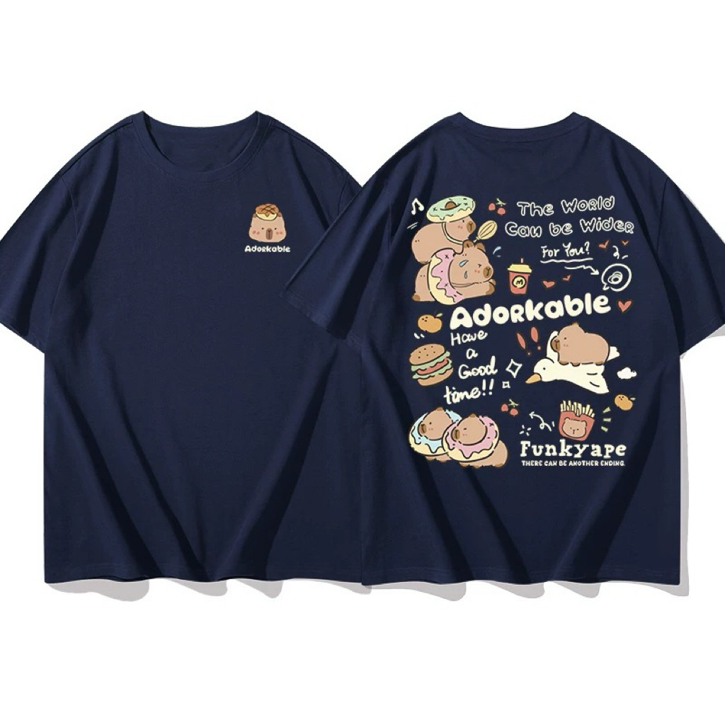 코튼 백 칼라 여름 새로운 일본 스타일 만화 인쇄 가죽 카발라 짧은 소매 라운드 넥 티셔츠 남성과 여성의 귀여운스토어 가기