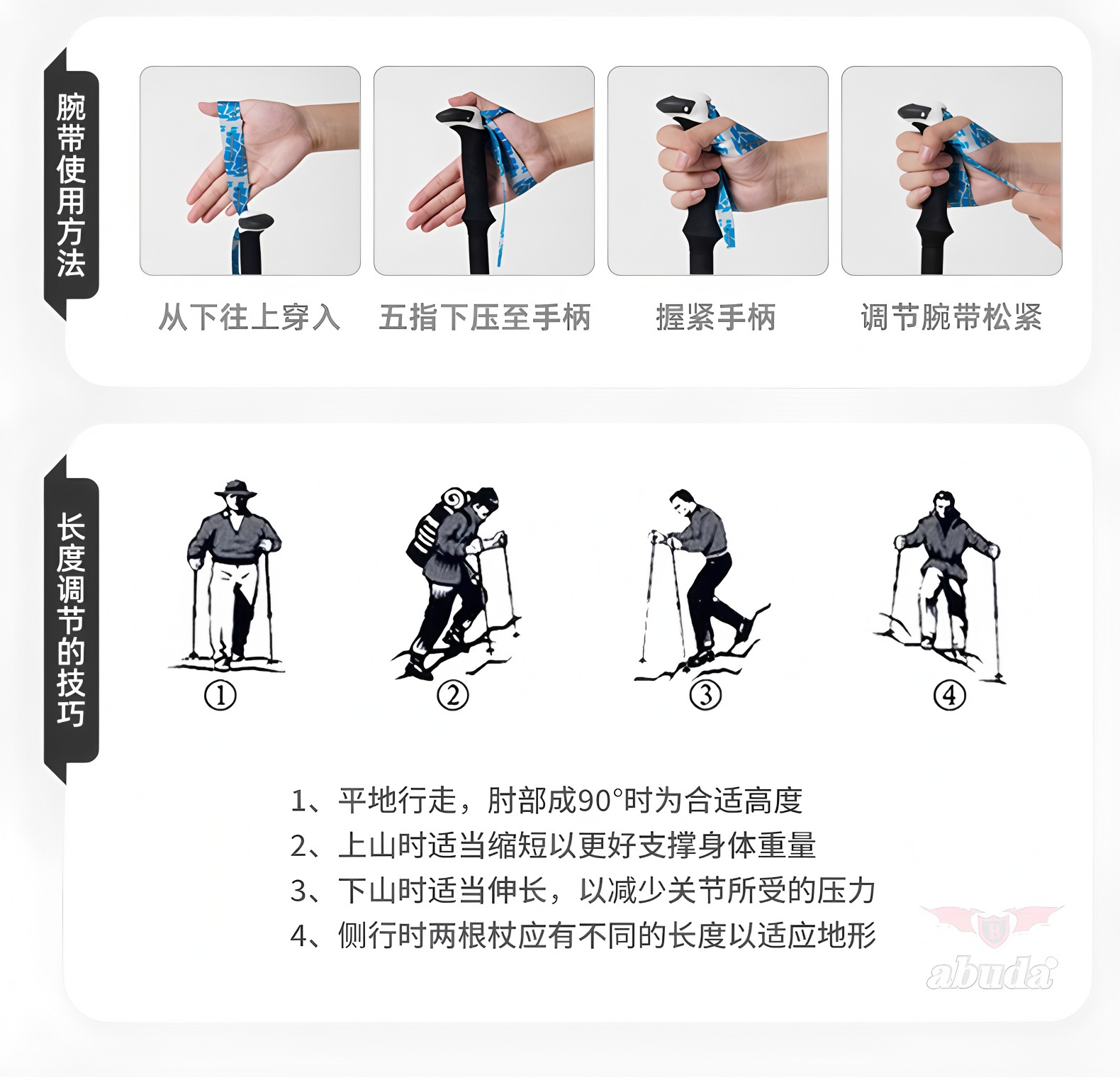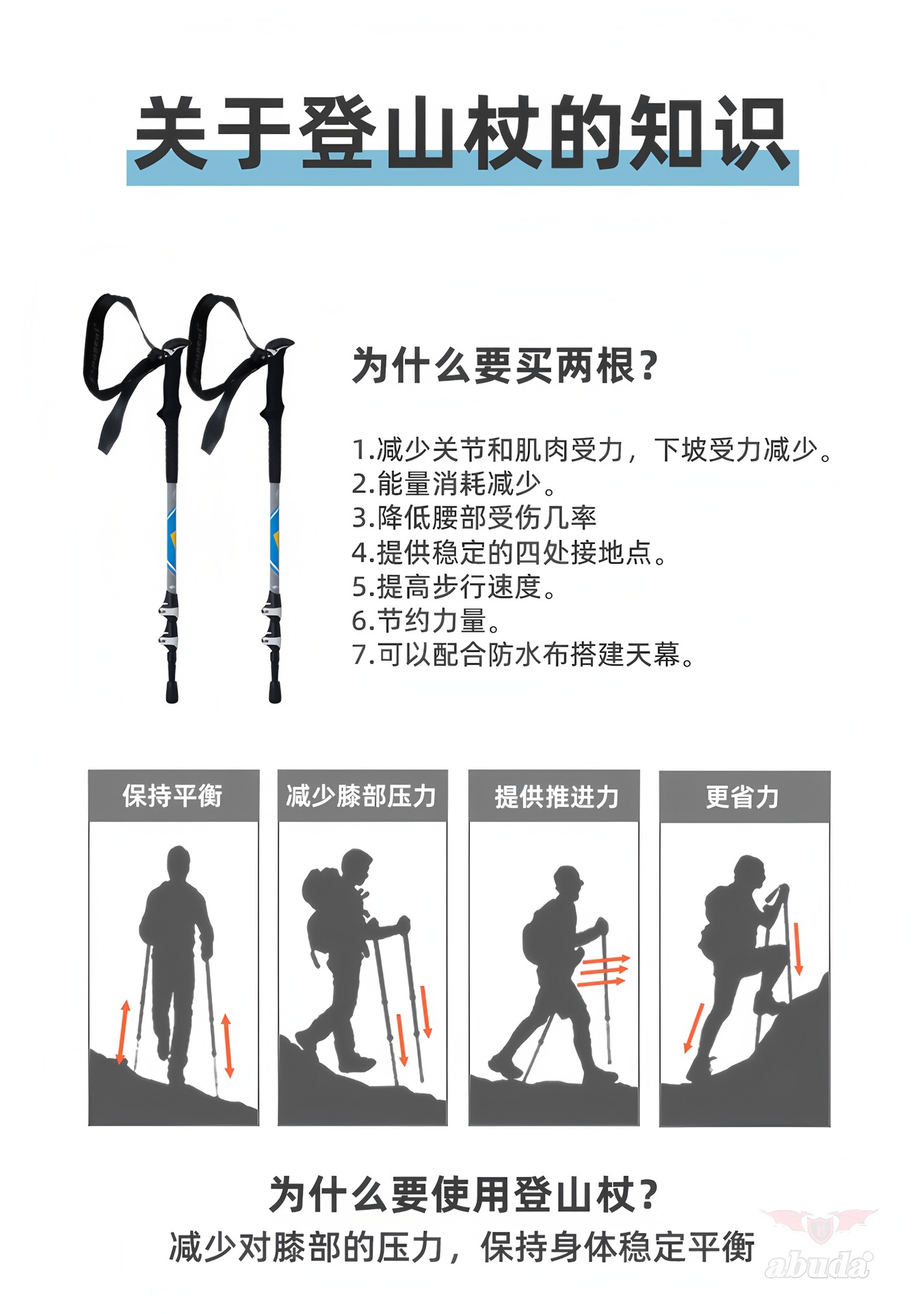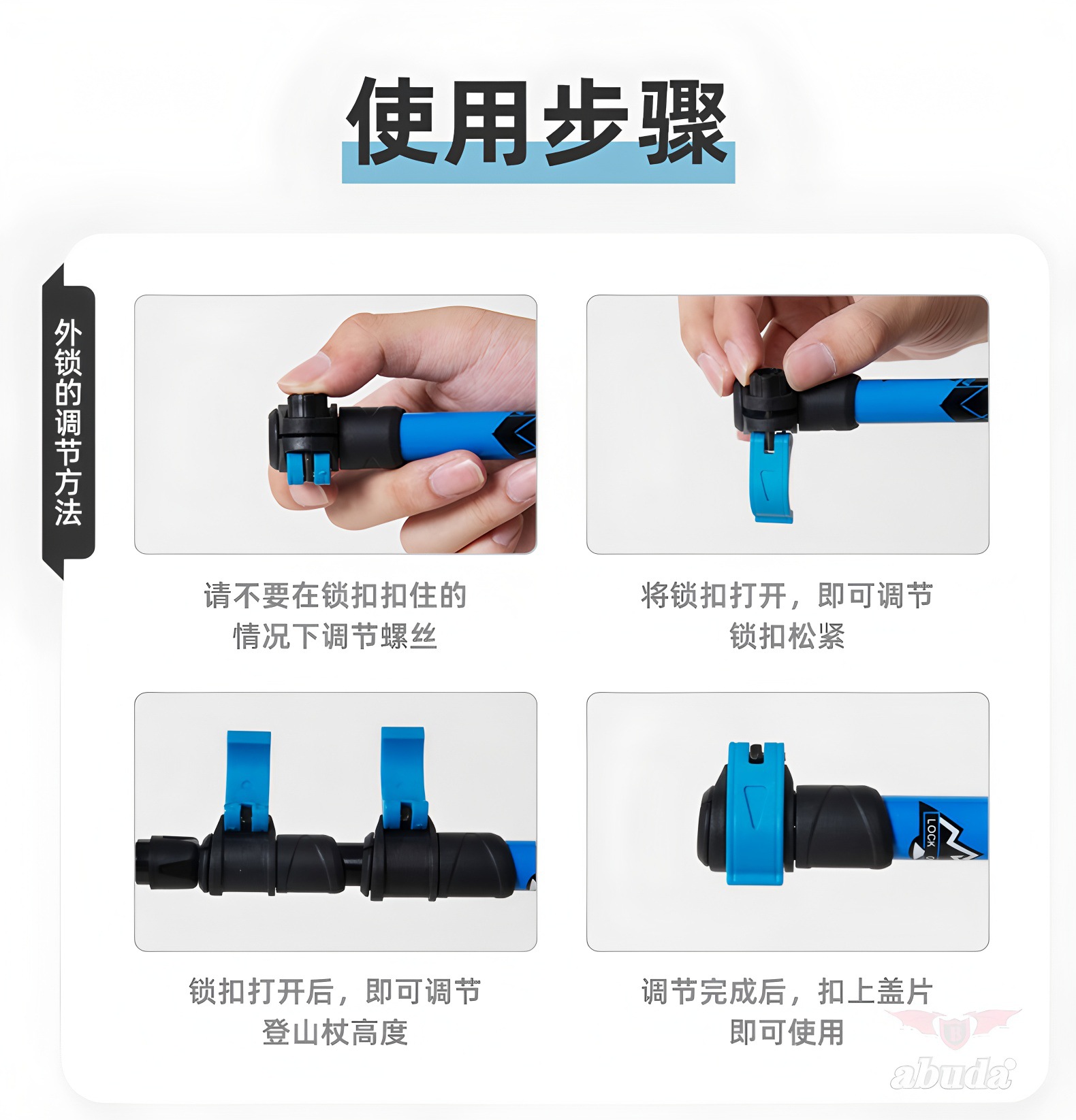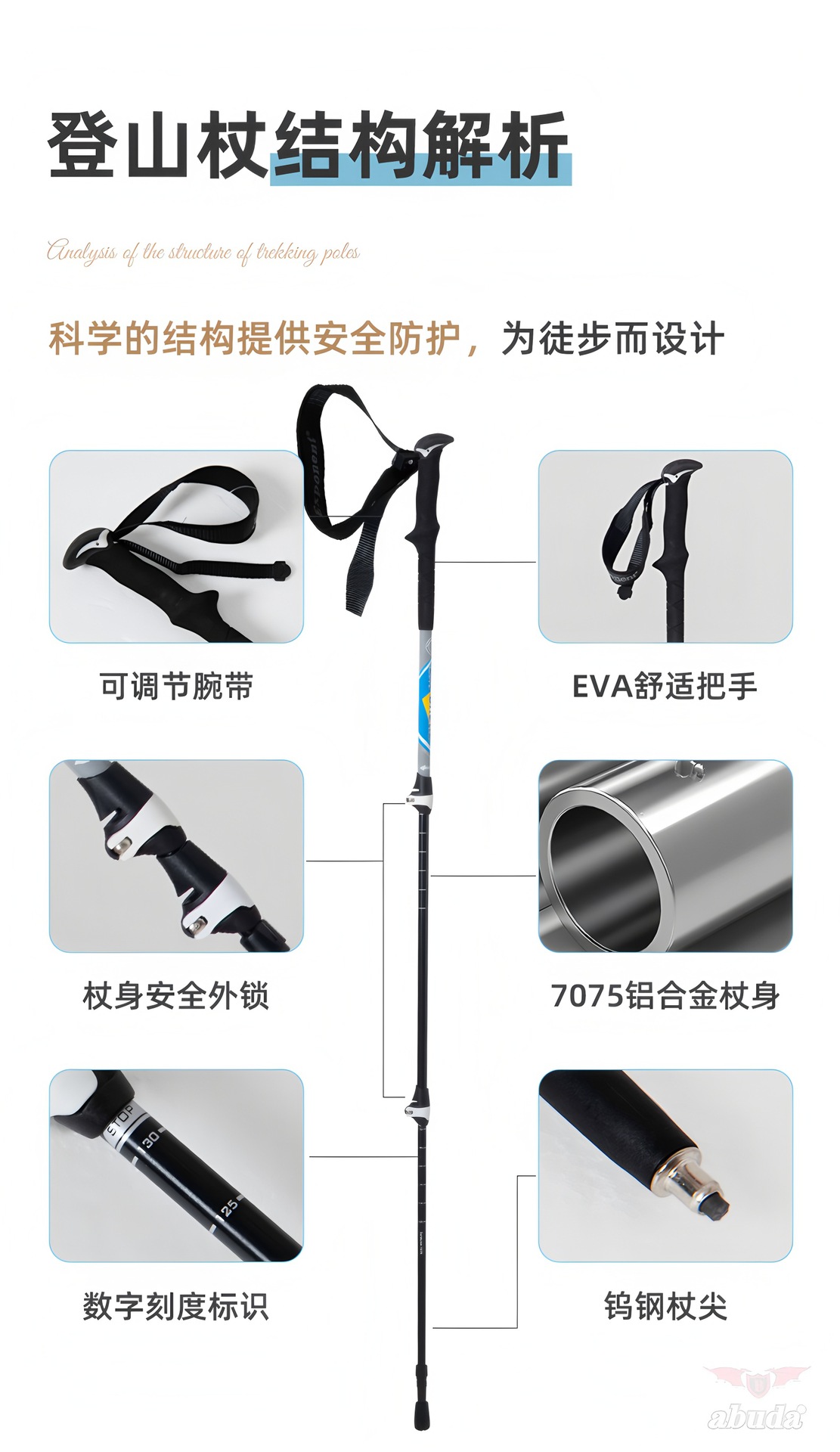 야외 알루미늄 합금 등산 직원 7075 Abda 야외 하이킹 도보 직원 개폐식 목발 제조 업체 도매스토어 가기
