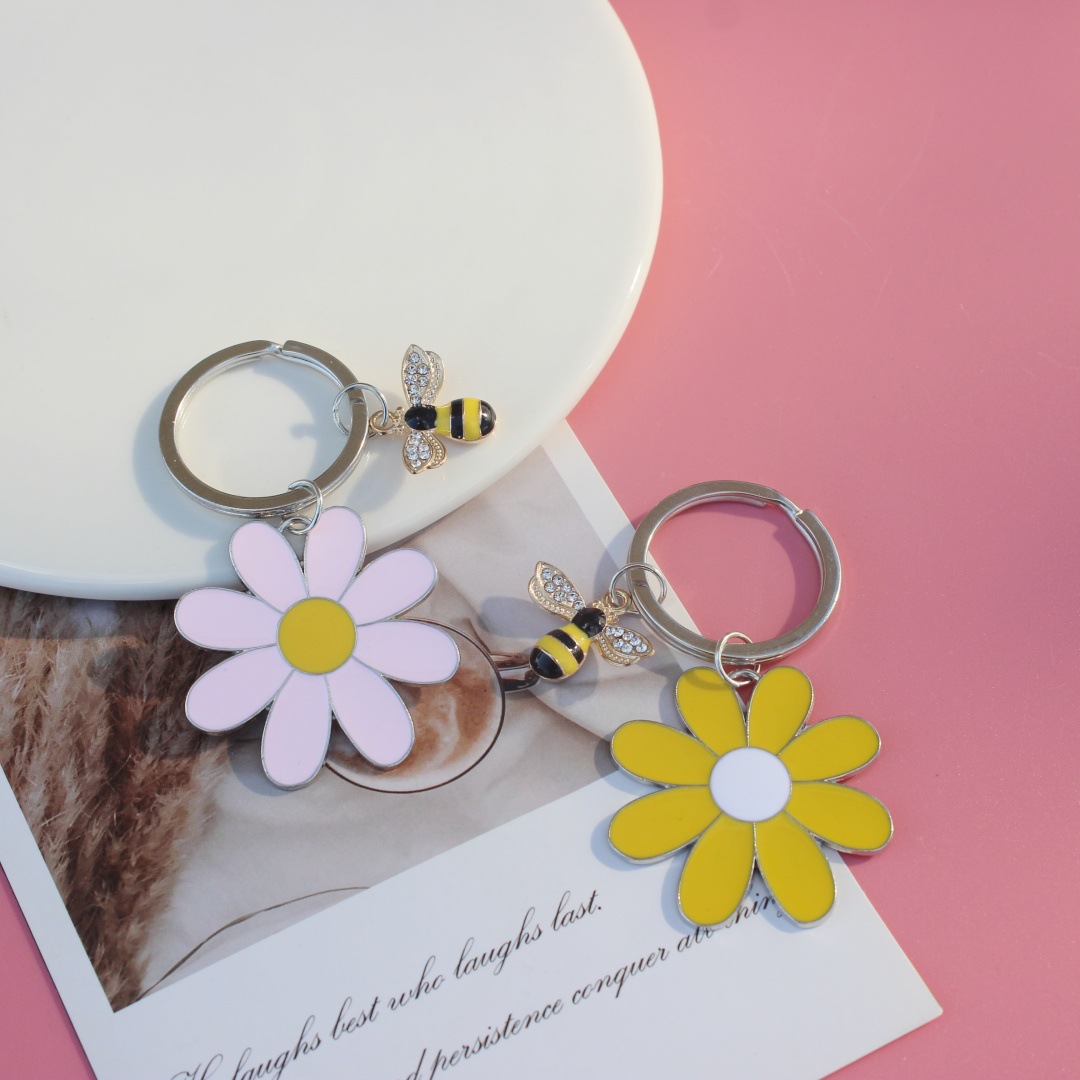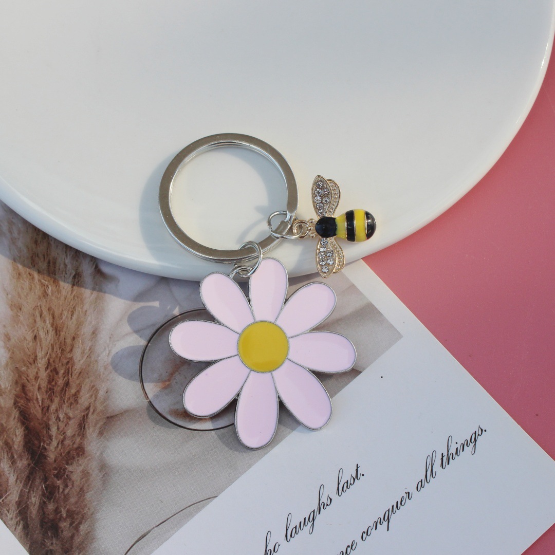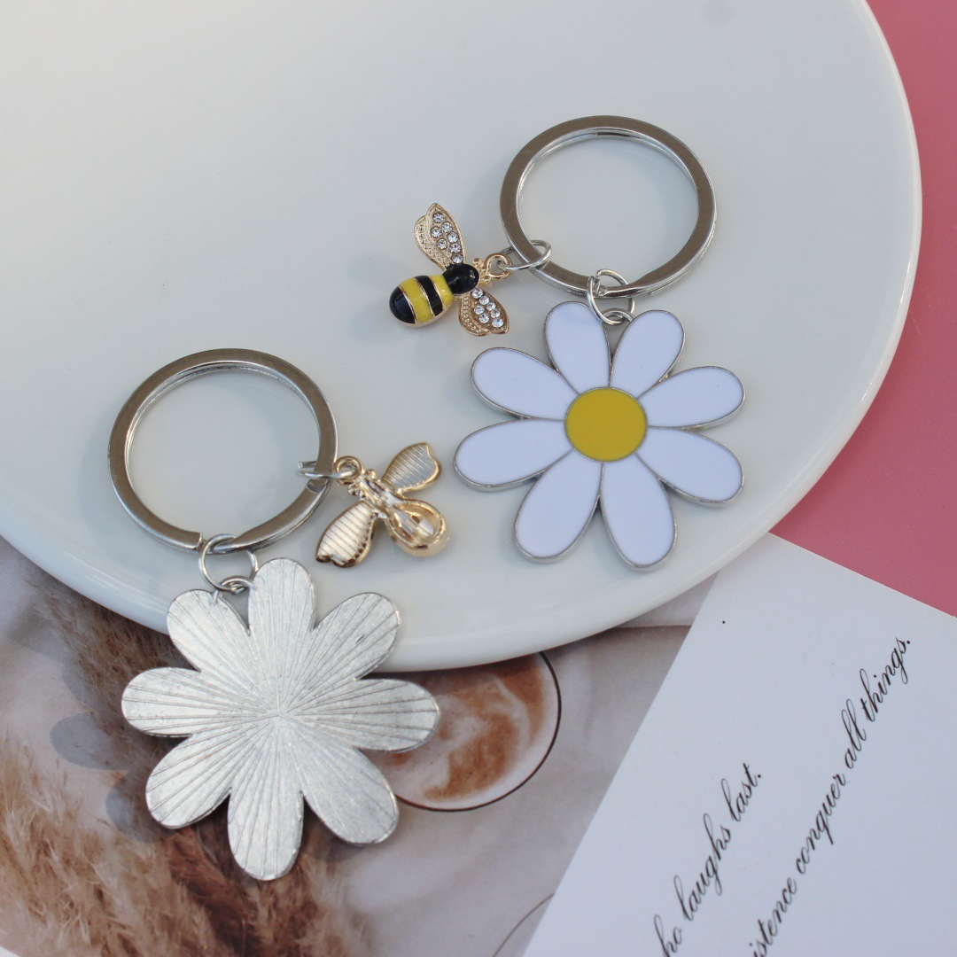 크로스 보더 벌 맞춤형 데이지 키 체인 펜던트 스테인레스 스틸 꽃 열쇠 고리 가방 자동차 키 걸이 액세서리