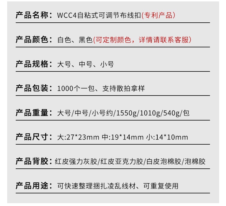• WCC4 소형-흰색 [빨간색 투명 접착제/말 없음]