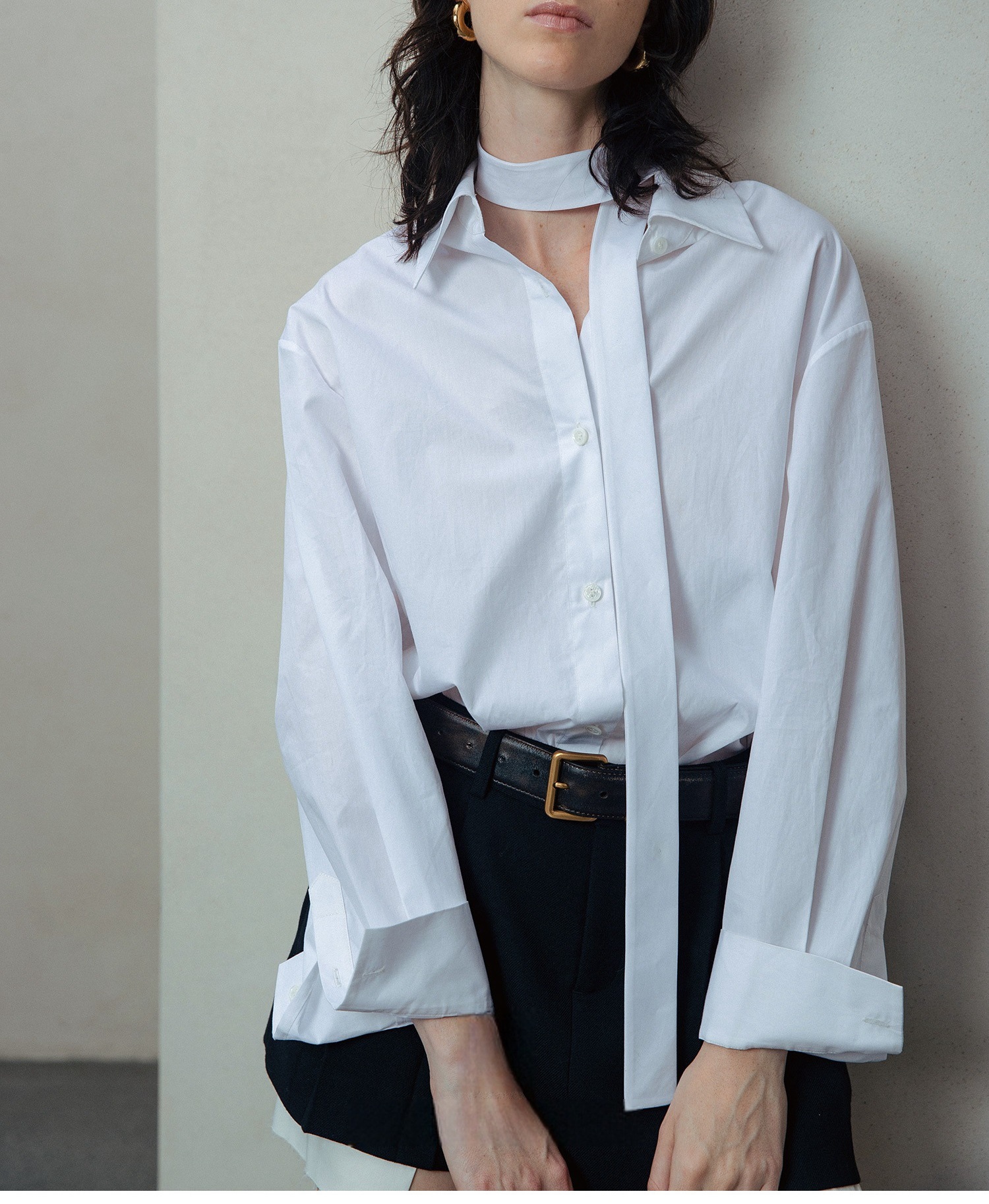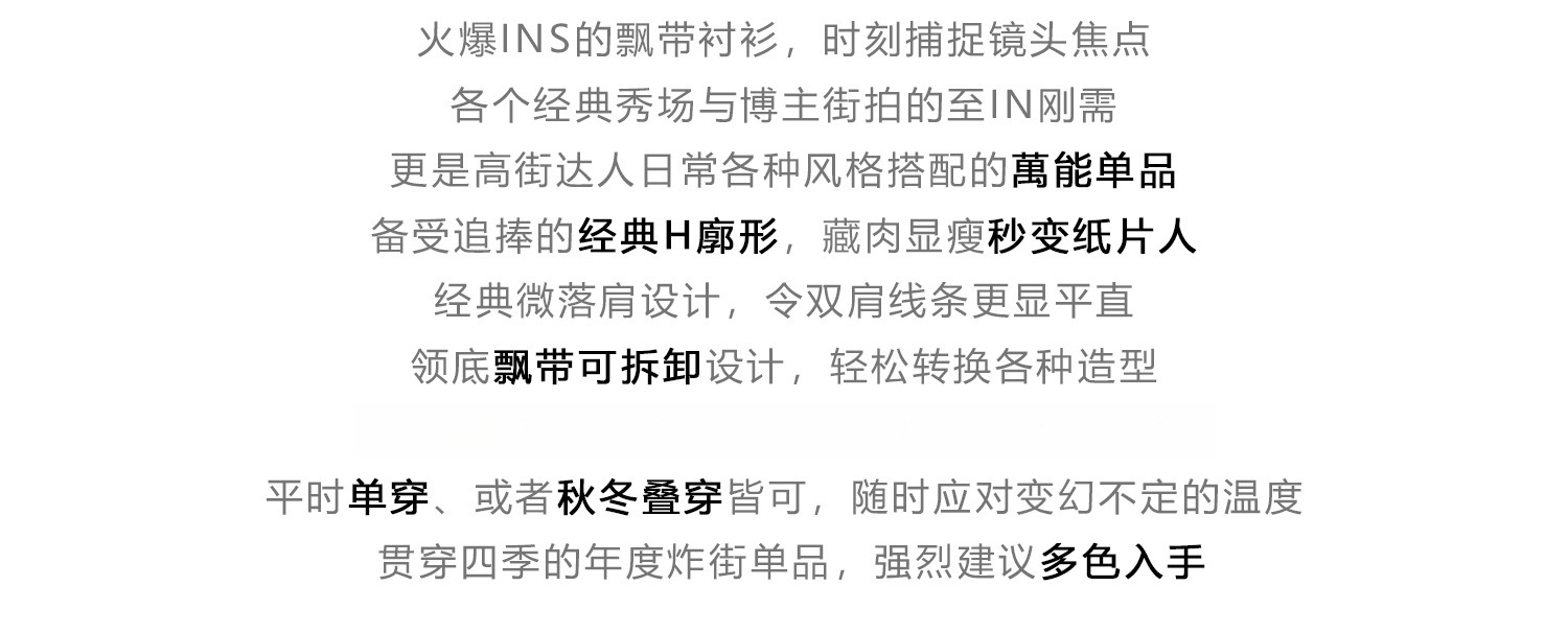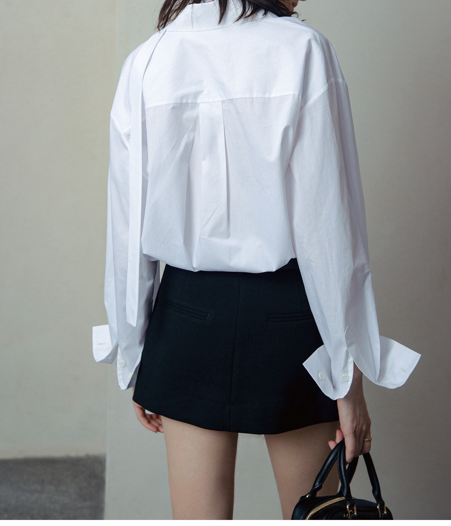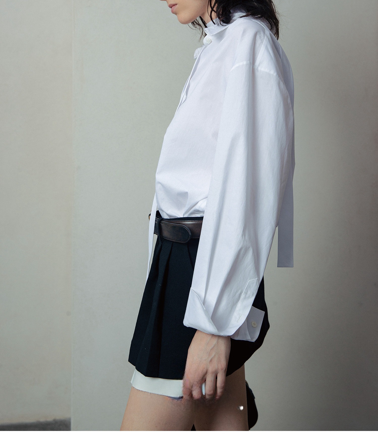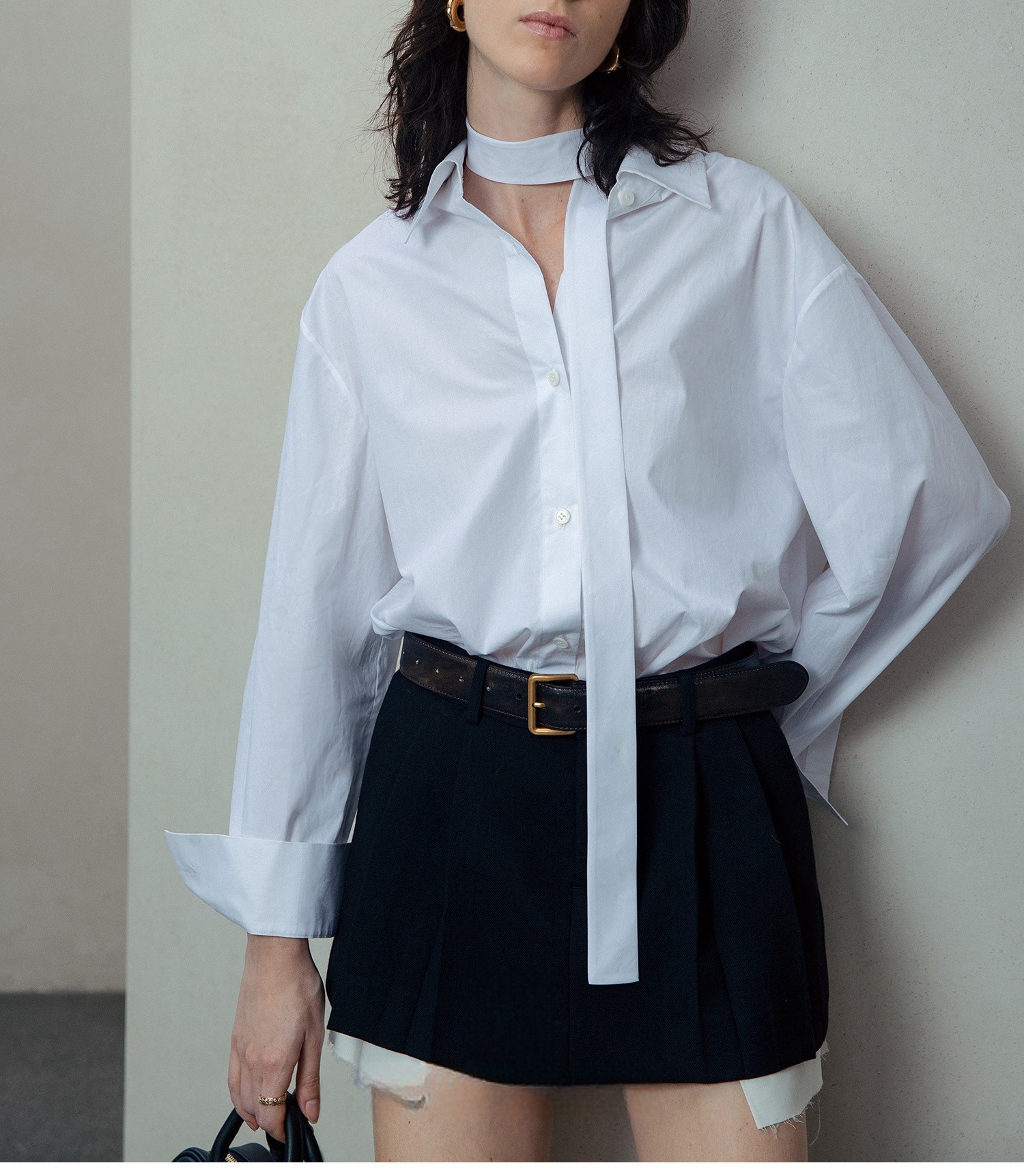 봄철 상의로 입을 수 있으며 3계절 착용 가능하며, B형 탈부착 가능한 리본으로 스타일링을 연출할 수 있으며, 레이어드하여 활용할 수 있는 활용도 높은 긴팔 셔츠입니다.스토어 가기