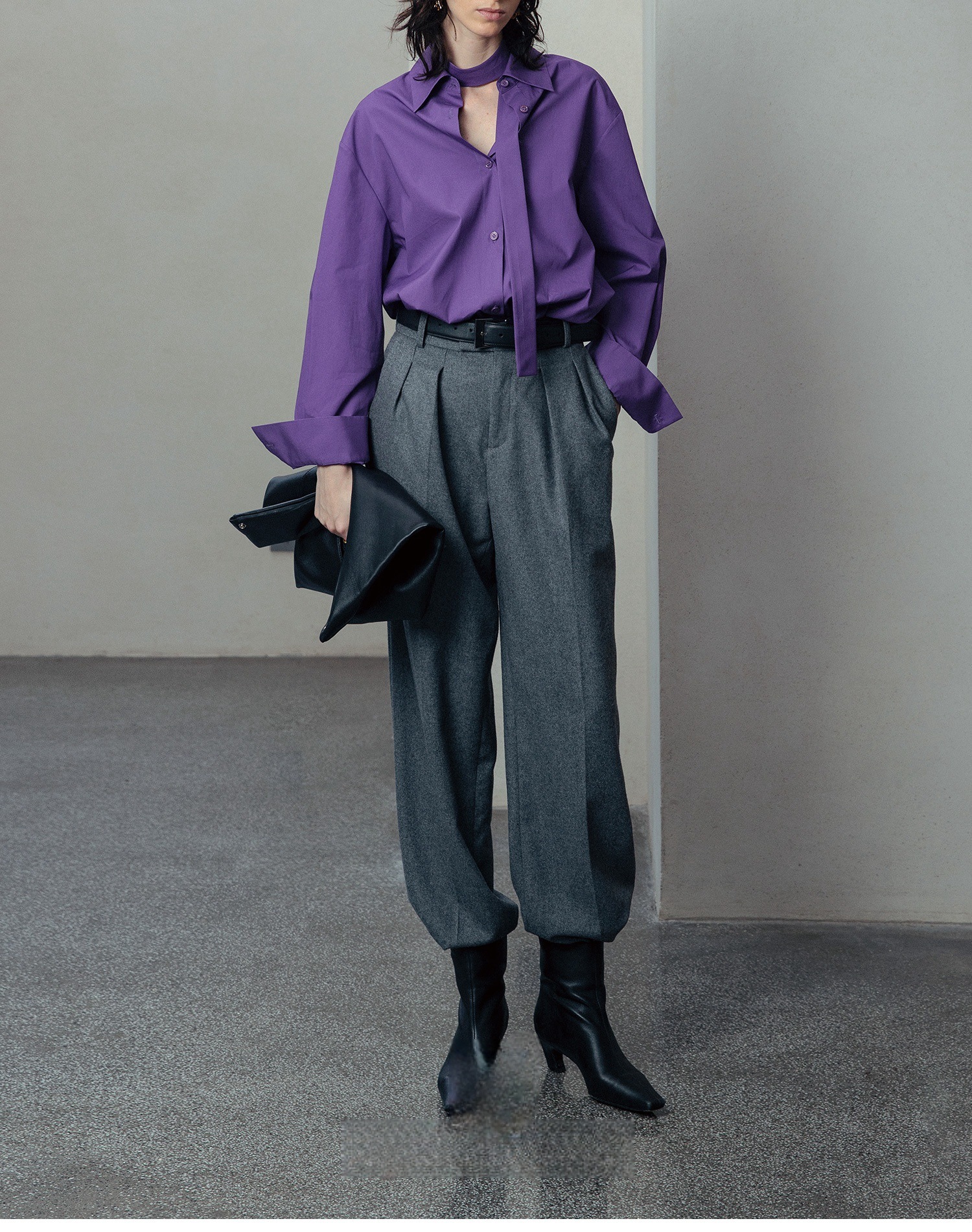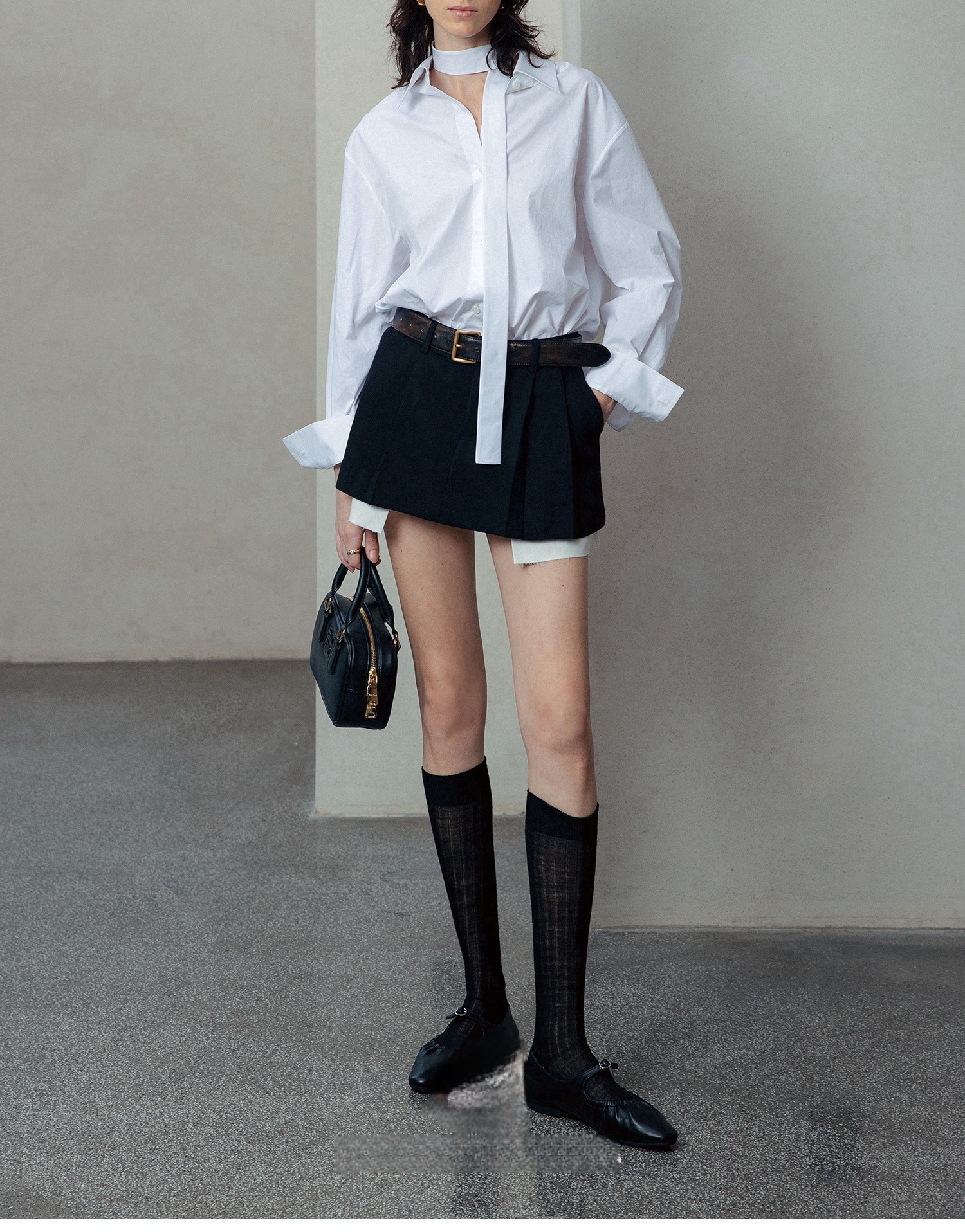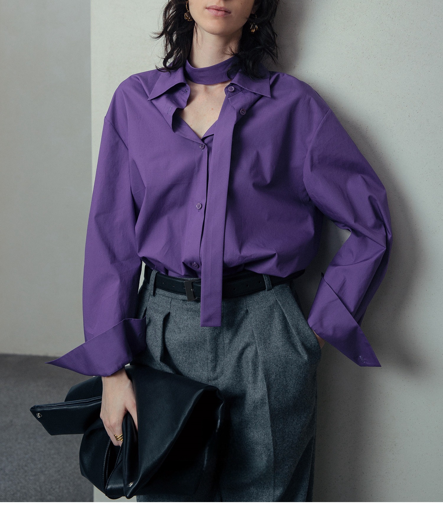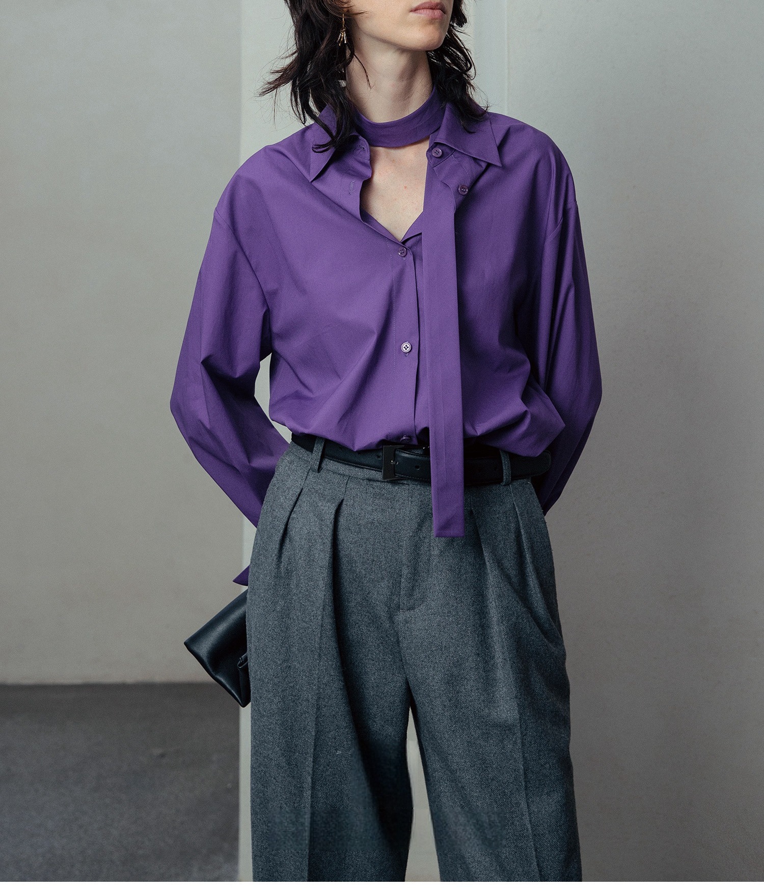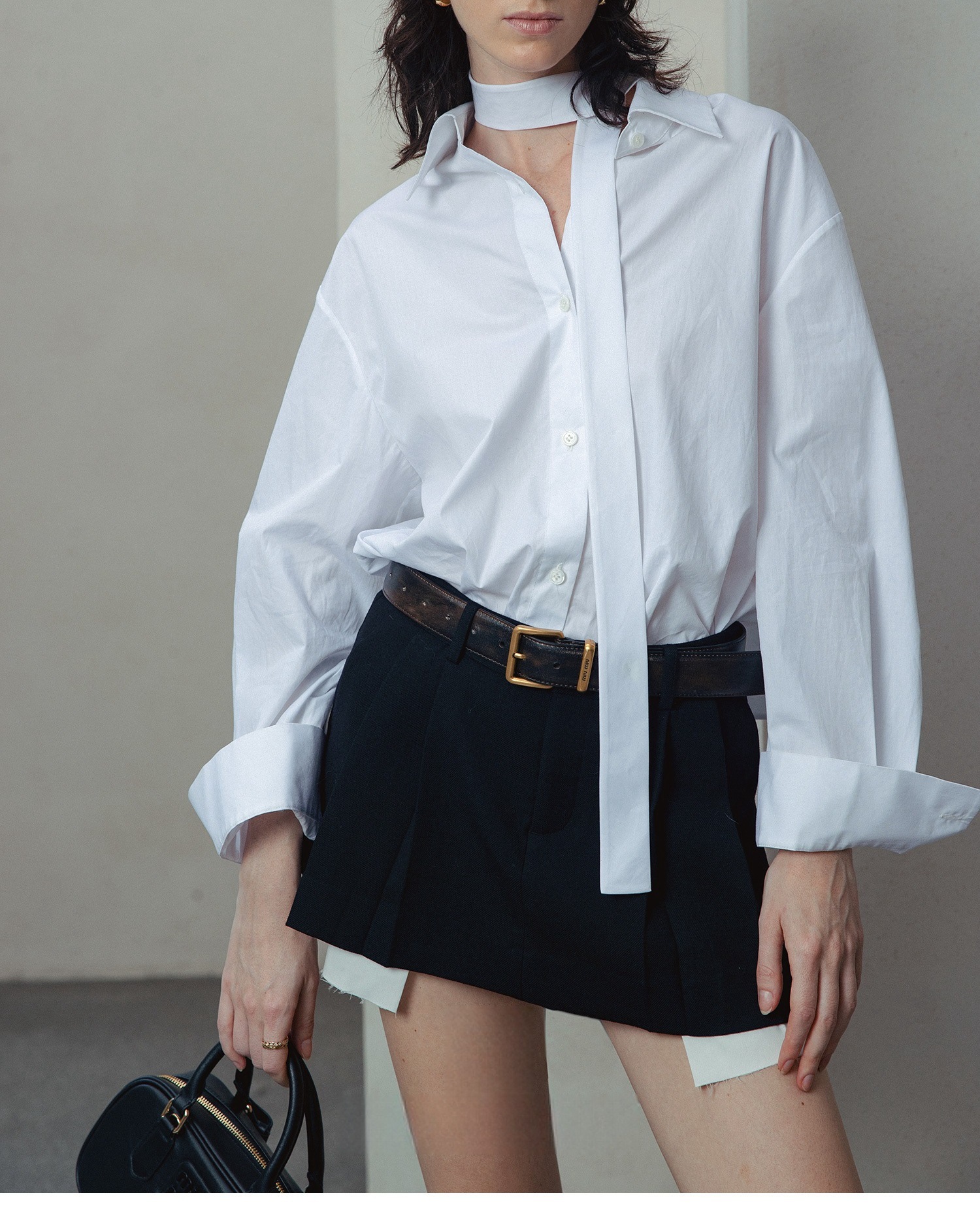 봄철 상의로 입을 수 있으며 3계절 착용 가능하며, B형 탈부착 가능한 리본으로 스타일링을 연출할 수 있으며, 레이어드하여 활용할 수 있는 활용도 높은 긴팔 셔츠입니다.스토어 가기