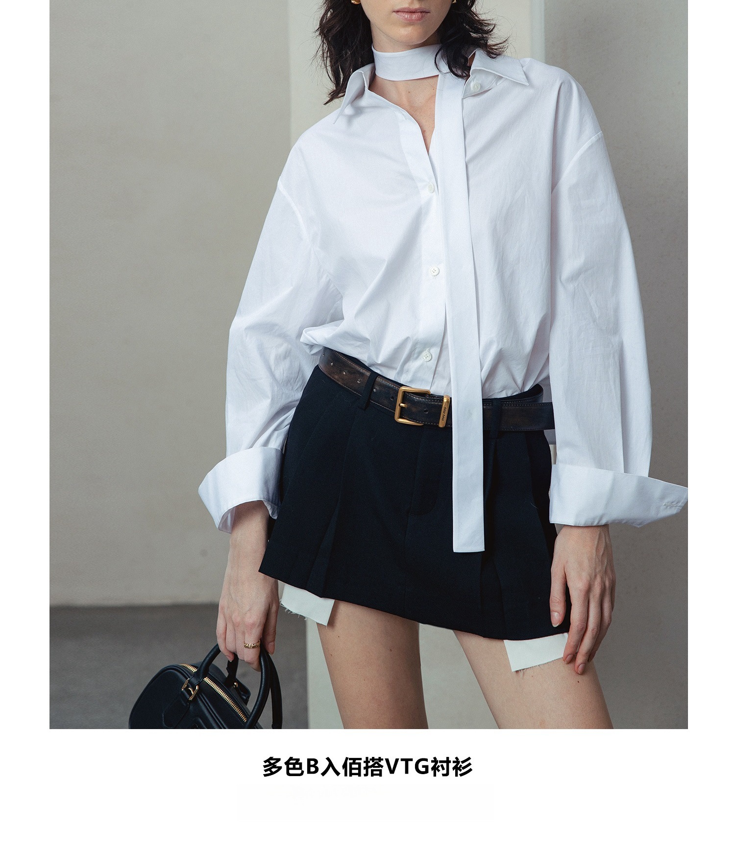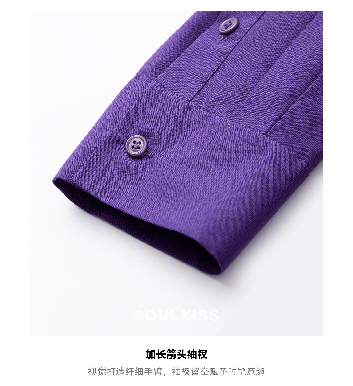 봄철 상의로 입을 수 있으며 3계절 착용 가능하며, B형 탈부착 가능한 리본으로 스타일링을 연출할 수 있으며, 레이어드하여 활용할 수 있는 활용도 높은 긴팔 셔츠입니다.