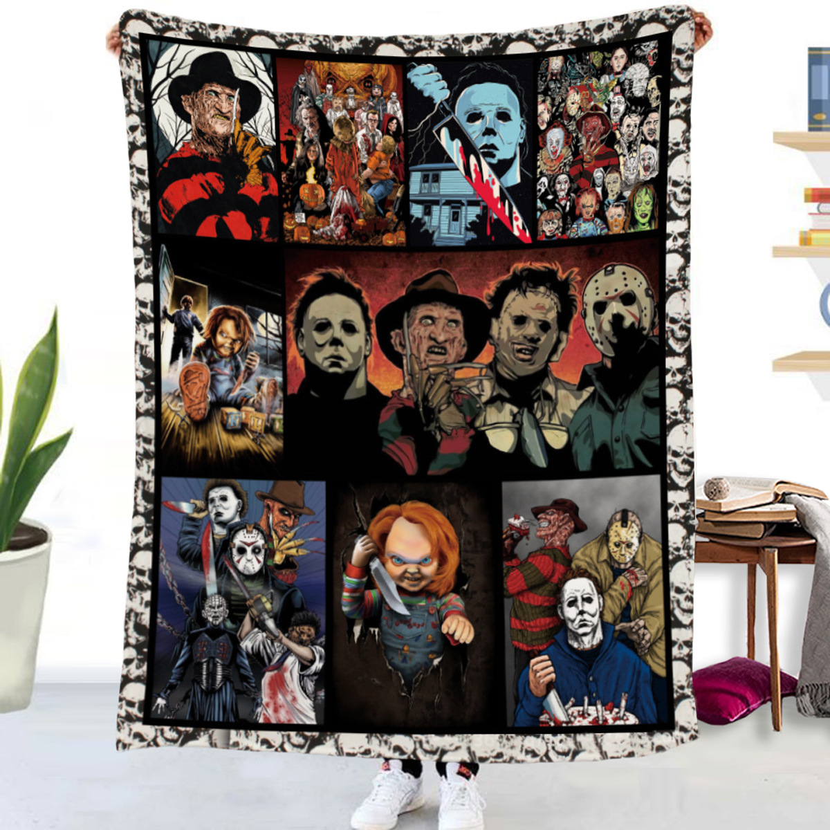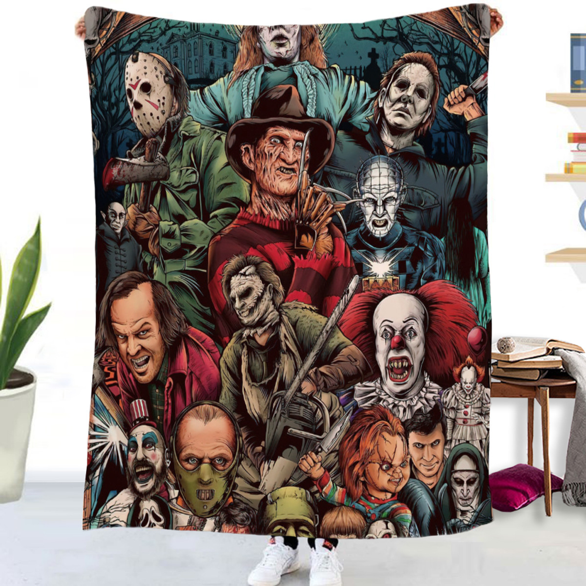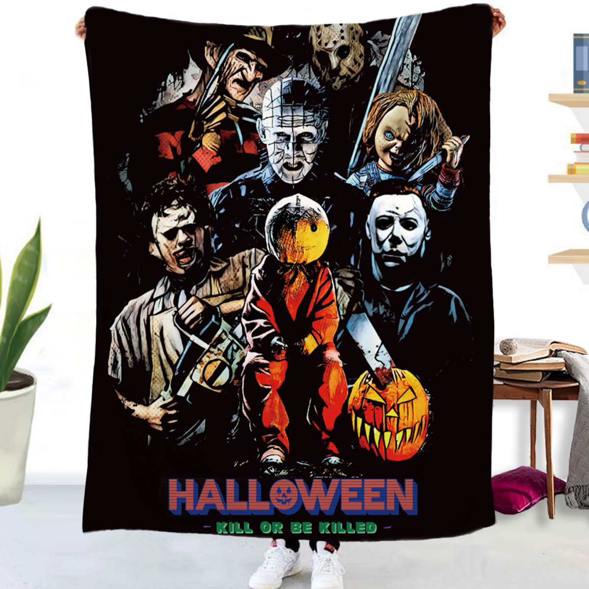 국경 간 아마존 할로윈 공포 캐릭터 필름 플란넬 담요 양가죽 담요 디지털 인쇄 도매