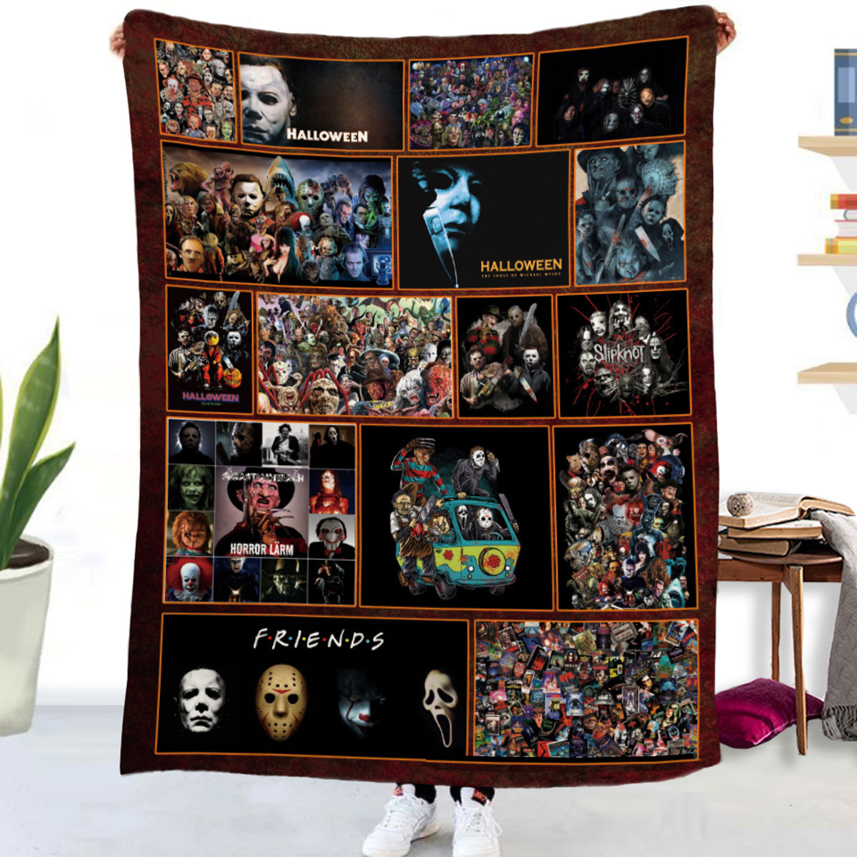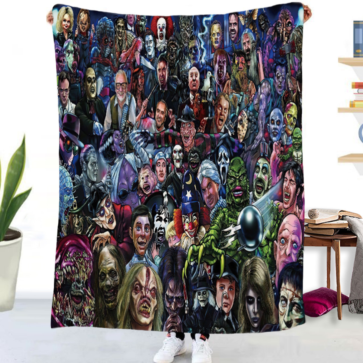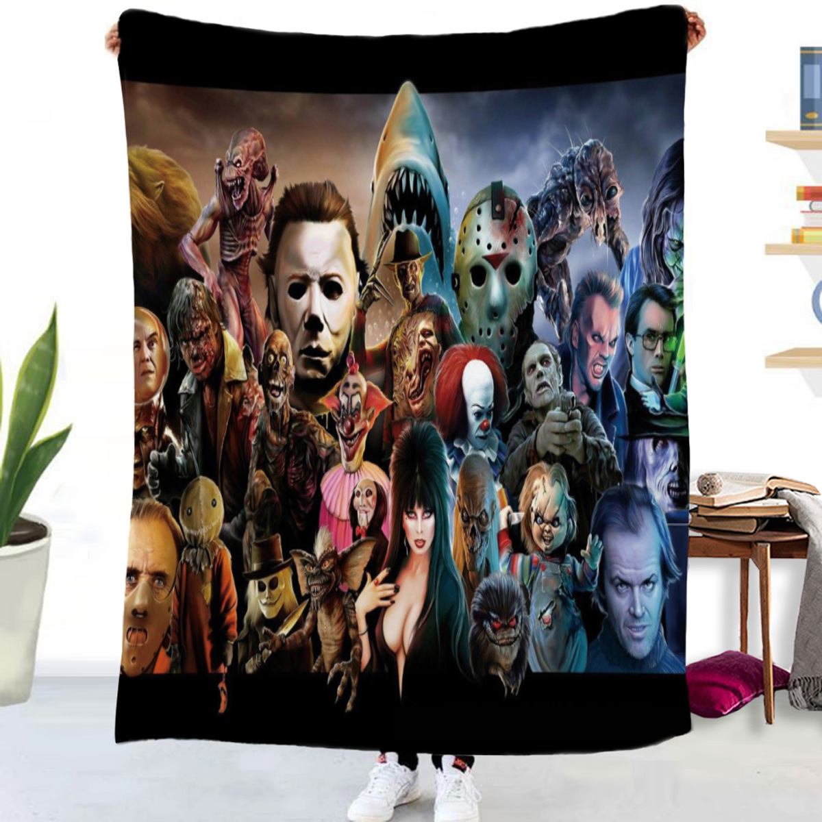 국경 간 아마존 할로윈 공포 캐릭터 필름 플란넬 담요 양가죽 담요 디지털 인쇄 도매