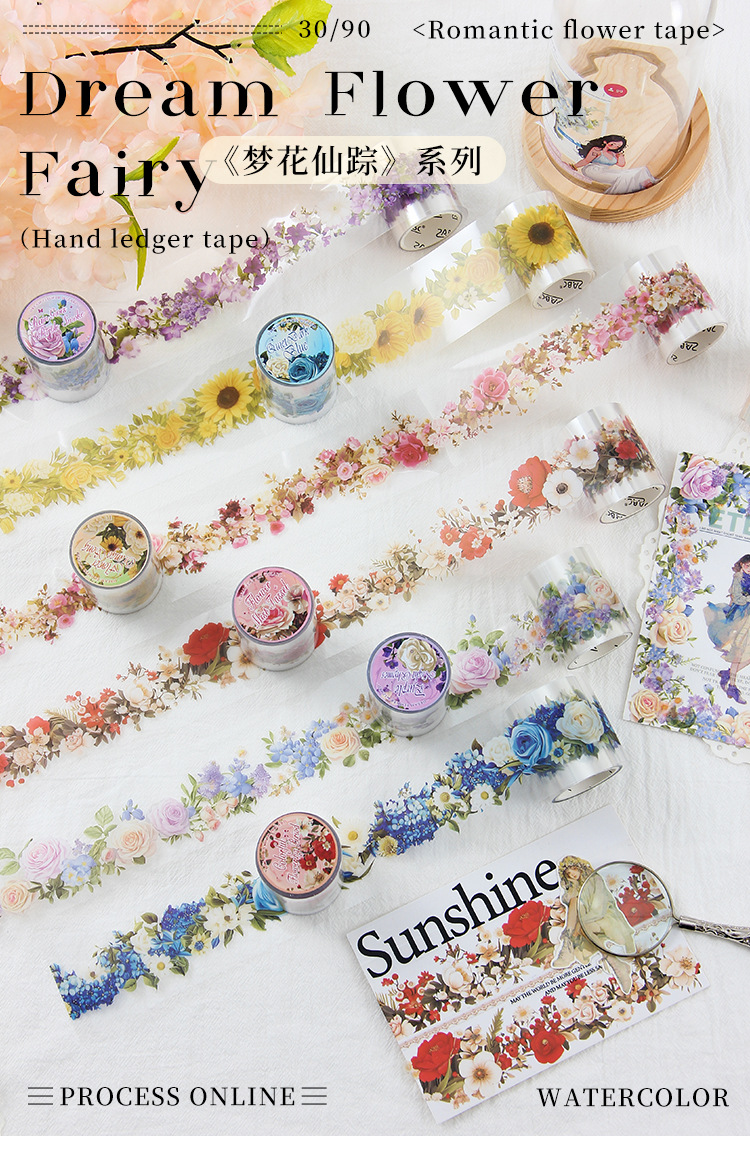 새로운 꿈의 꽃 마법사 꽃 장식 테이프 스티커 롤 어린이 손 계정 소재 테이프 도매를위한 국경 특별스토어 가기