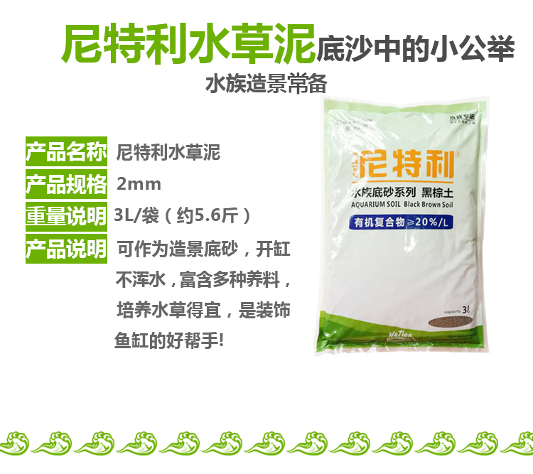 Nittli 수생 식물 진흙 수조 조경 장식 바닥 모래 검은 갈색 흙 잔디 탱크 Lanbao 무세척 영양 수질 정화 흙 및 모래