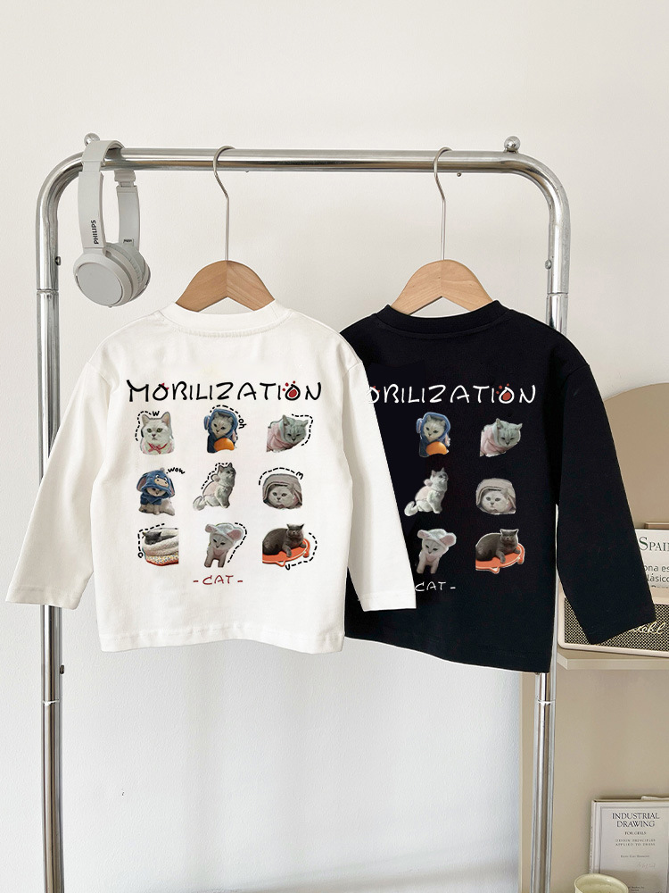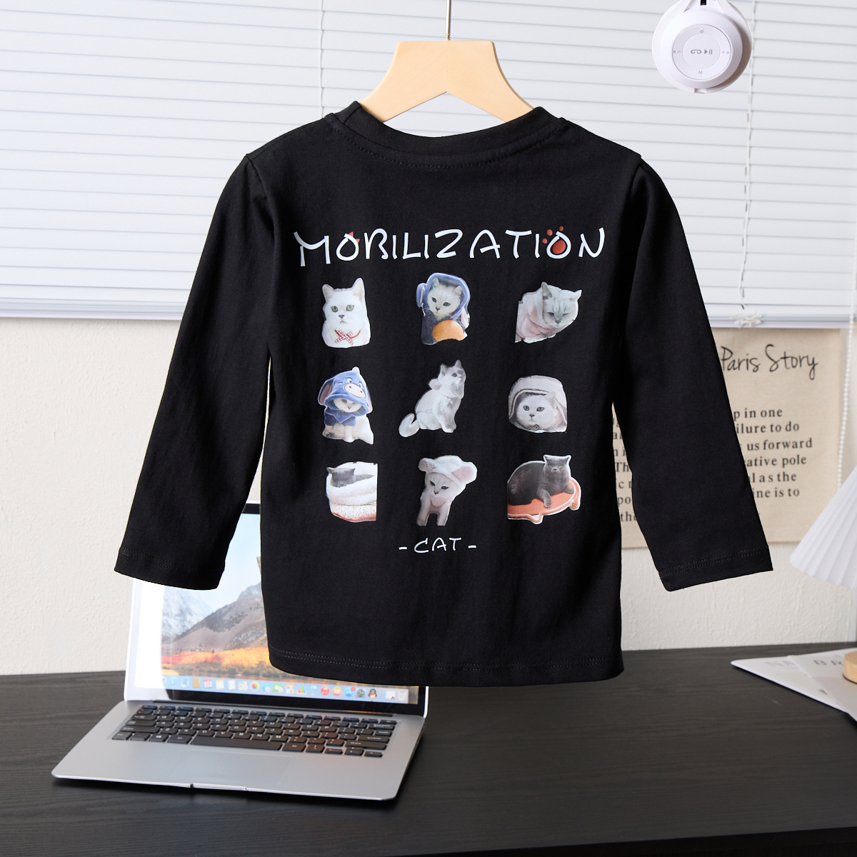 아동용 티셔츠 순면 긴팔 싱글탑 봄가을 베이직 라운드넥 중대형 아동복 A급 남녀공용스토어 가기