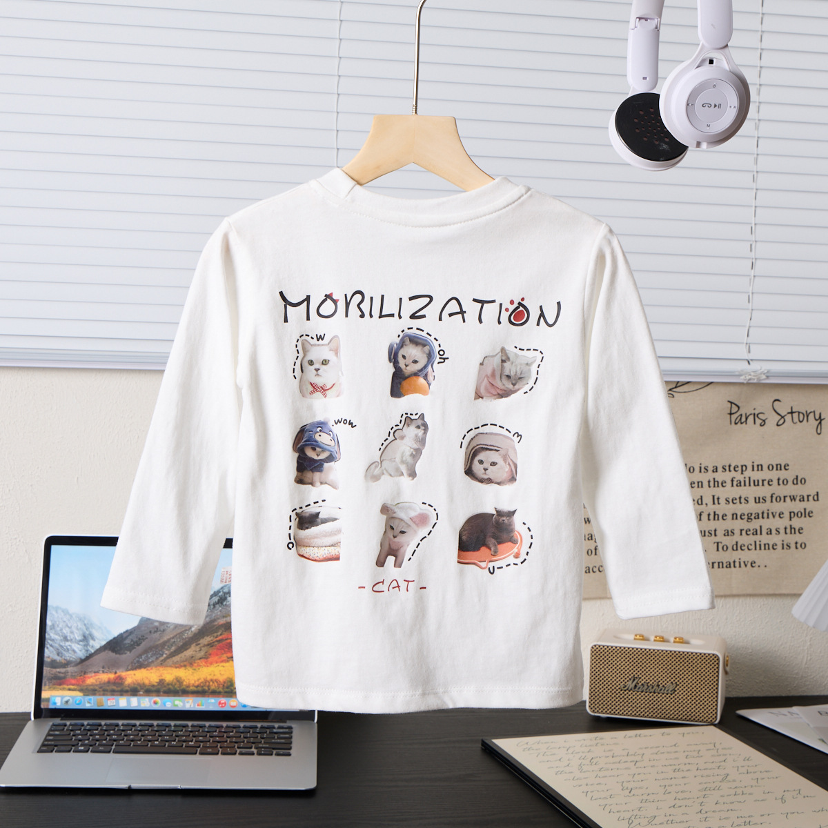 아동용 티셔츠 순면 긴팔 싱글탑 봄가을 베이직 라운드넥 중대형 아동복 A급 남녀공용