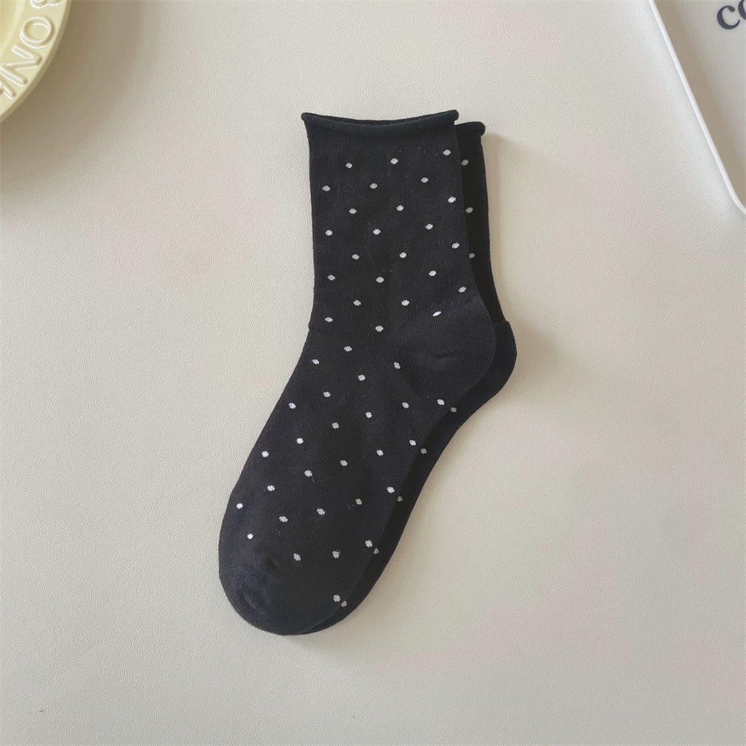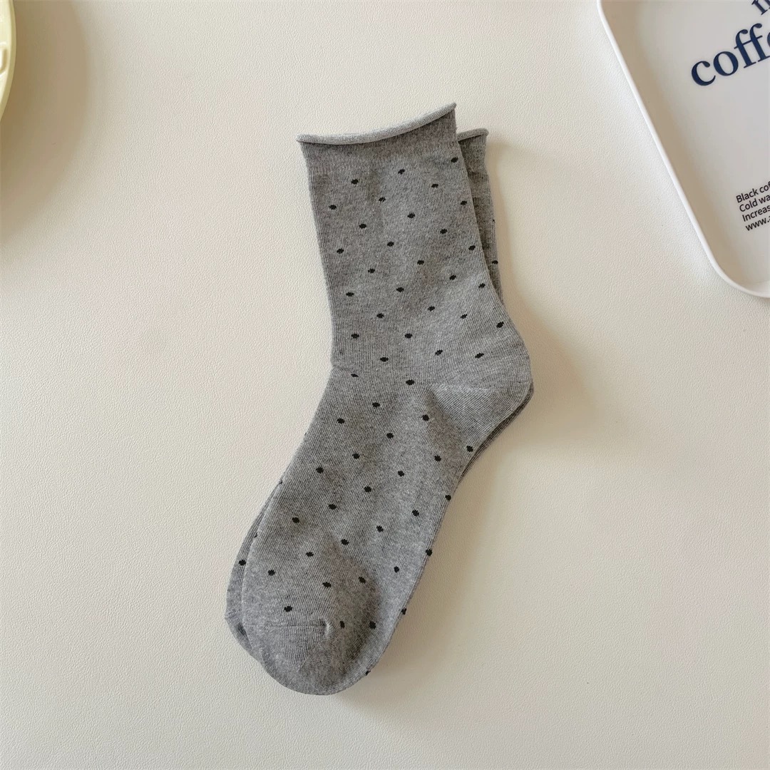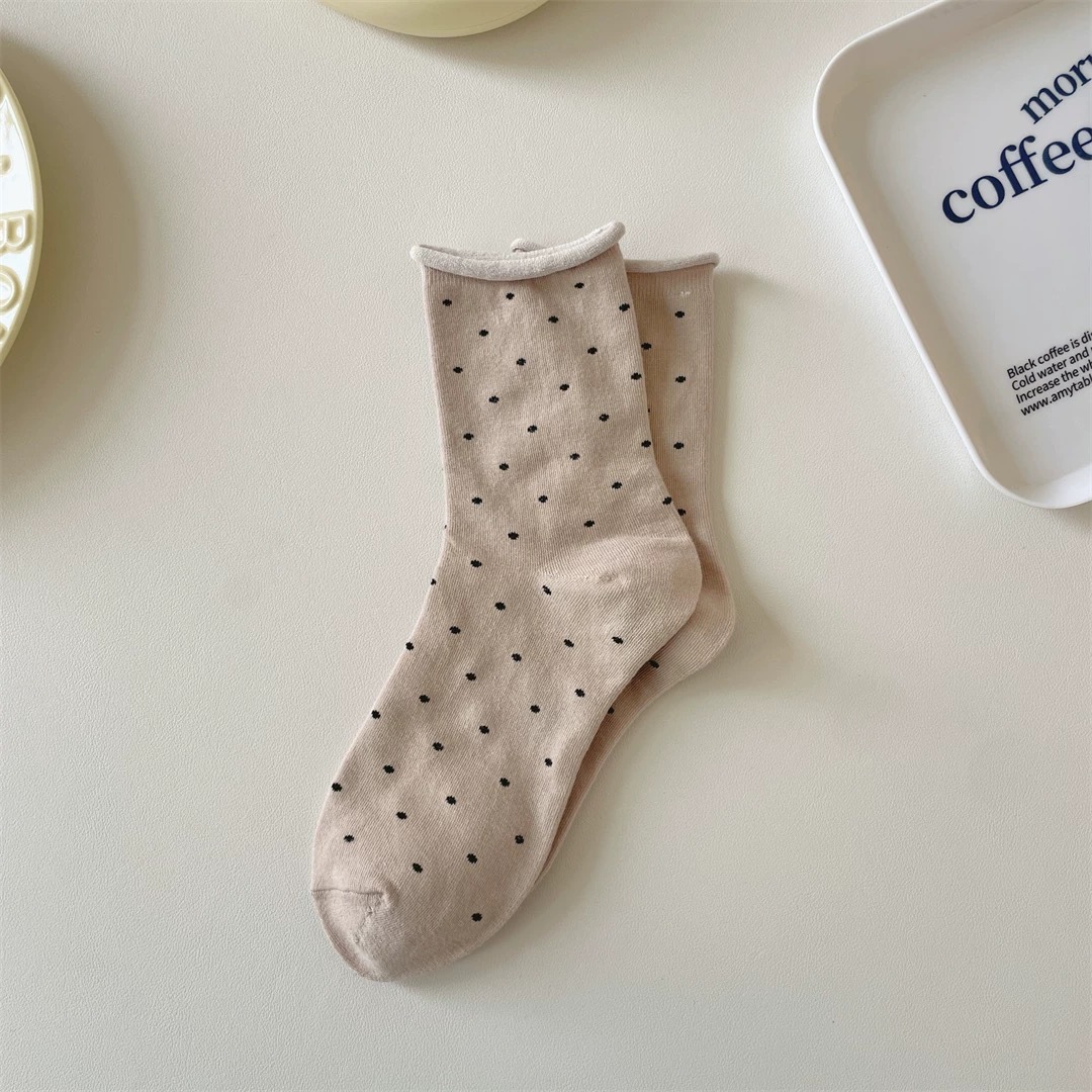 양말 여성 한국식 컬 웨이브 도트 코튼 양말 4 시즌 아카데미 스타일 간단한 올 매치 크림 Ins 유행 양말스토어 가기