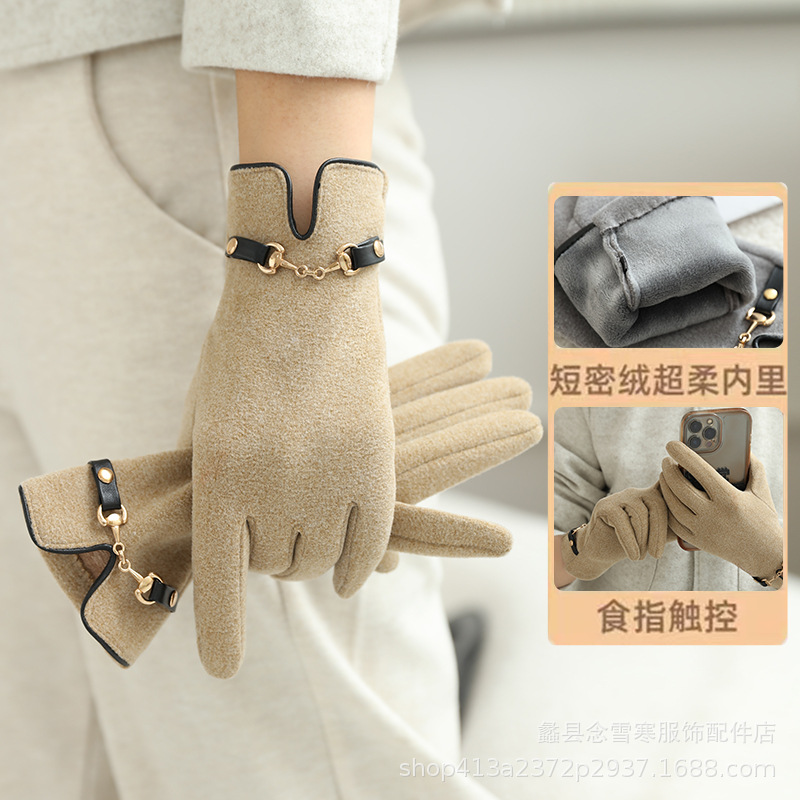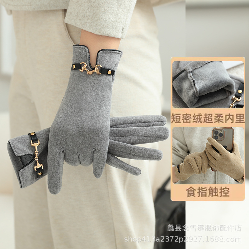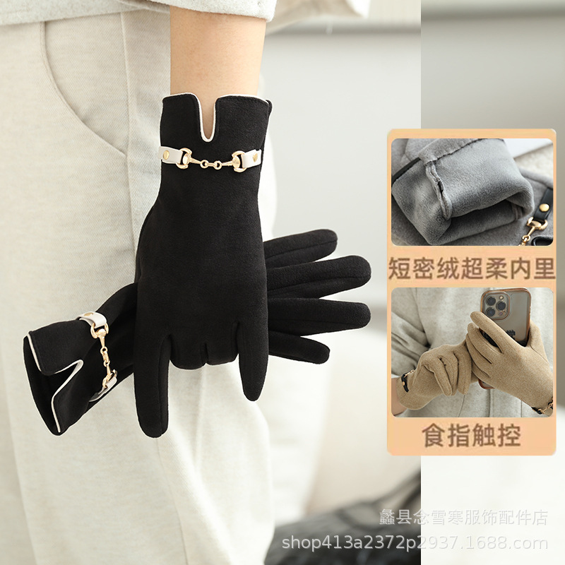 가을과 겨울 여성 벨벳 장갑 터치 스크린 안티 동결 방한 따뜻한 방풍 귀여운 한국식 학생들이 야외를 타고스토어 가기