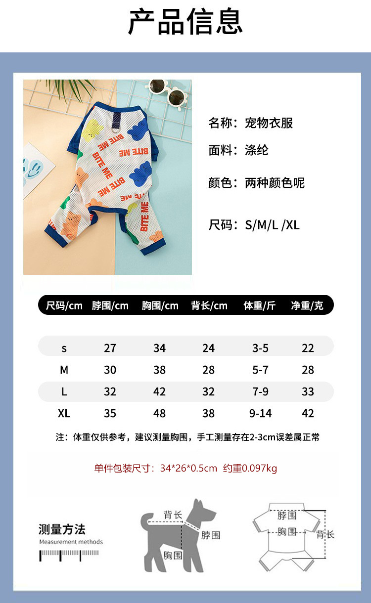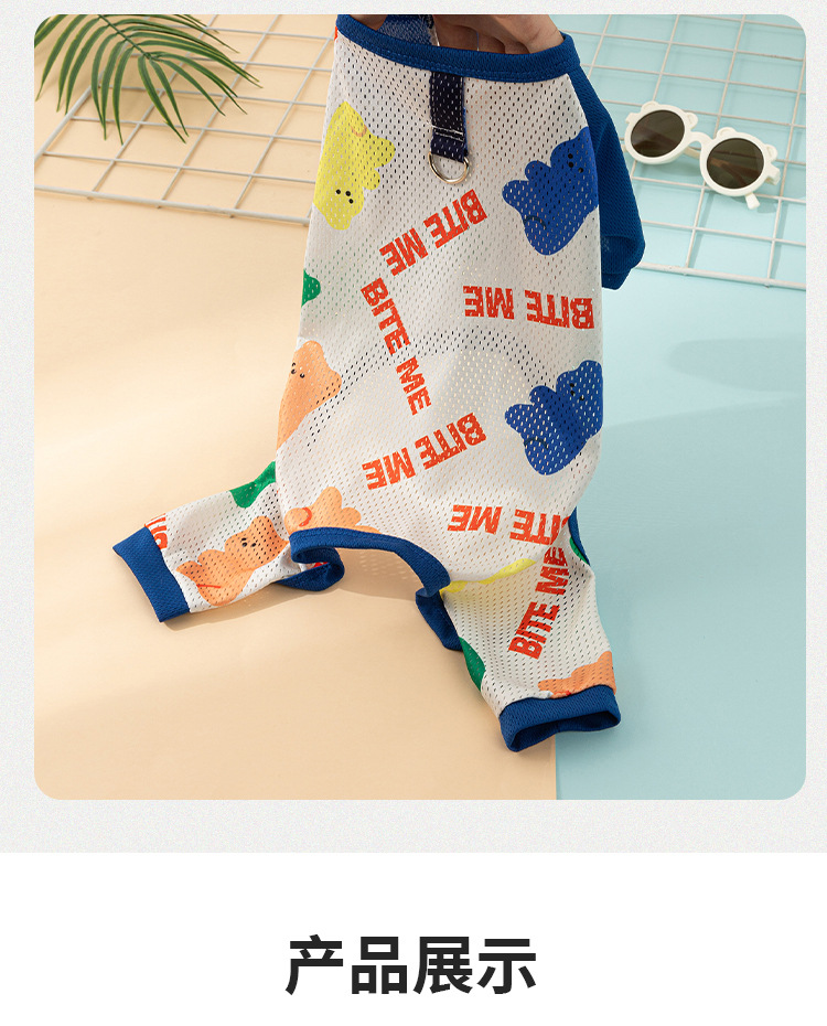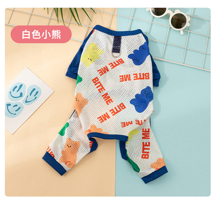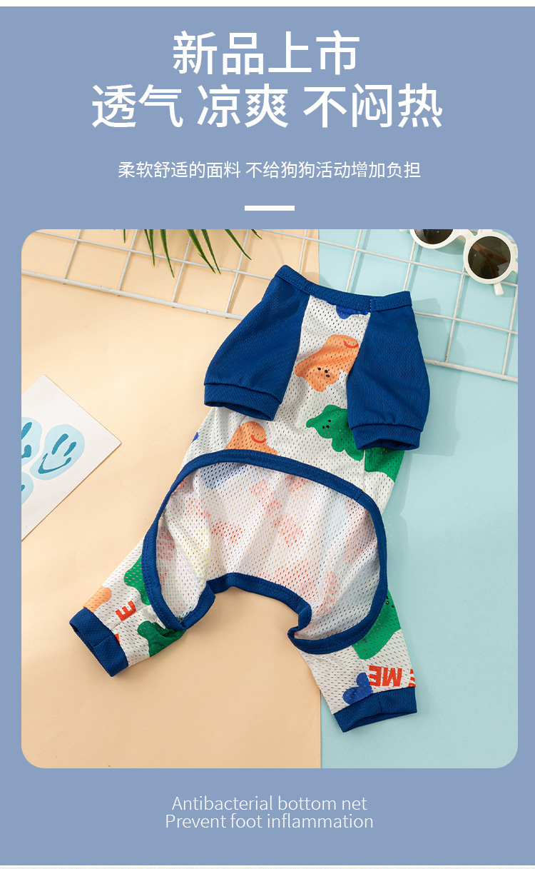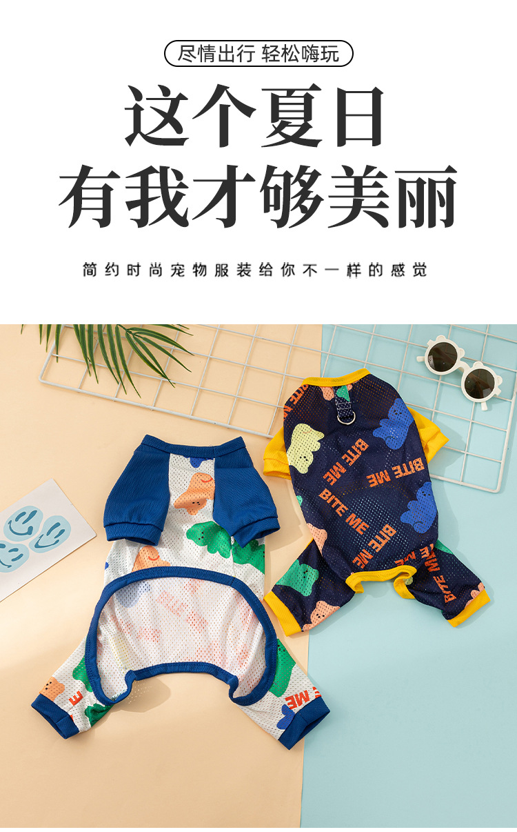 새로운 여름 강아지 고양이 애완 동물 네 다리 옷 만화 피부 친화적 인 소프트 소스 공장 직접 판매스토어 가기