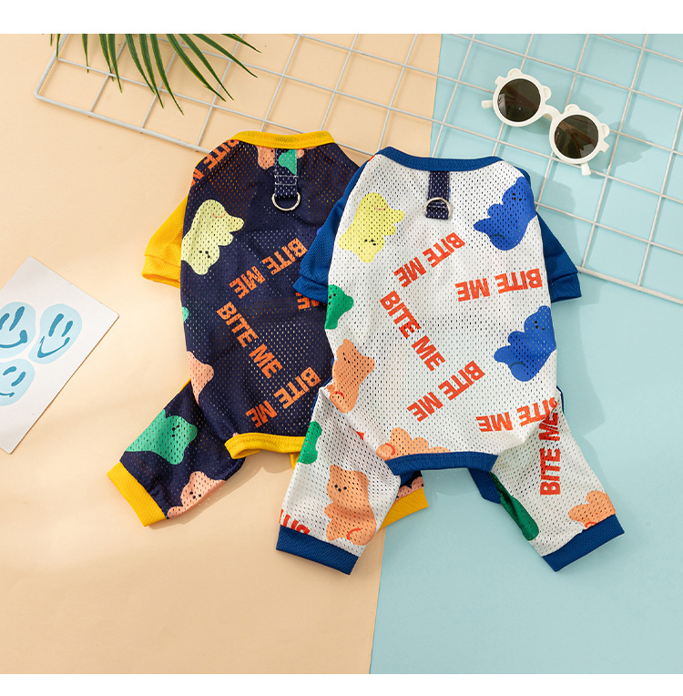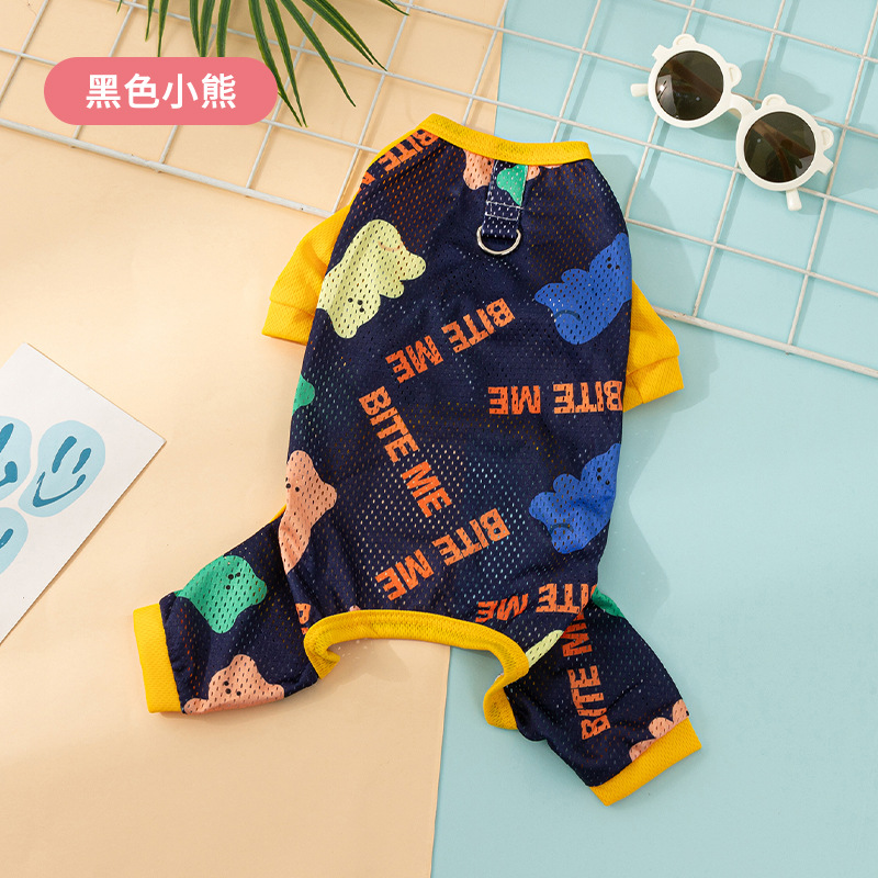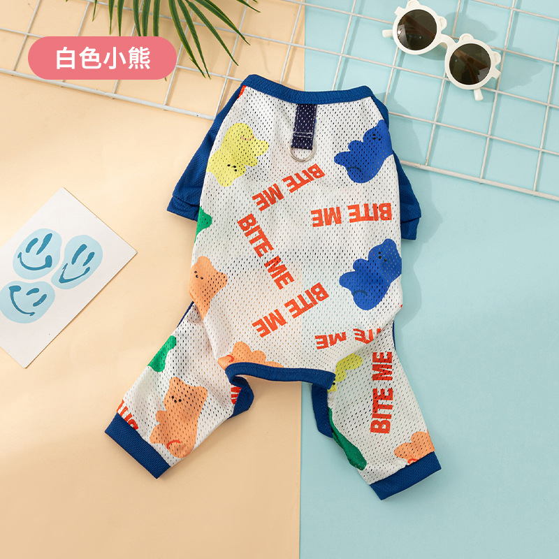 새로운 여름 강아지 고양이 애완 동물 네 다리 옷 만화 피부 친화적 인 소프트 소스 공장 직접 판매