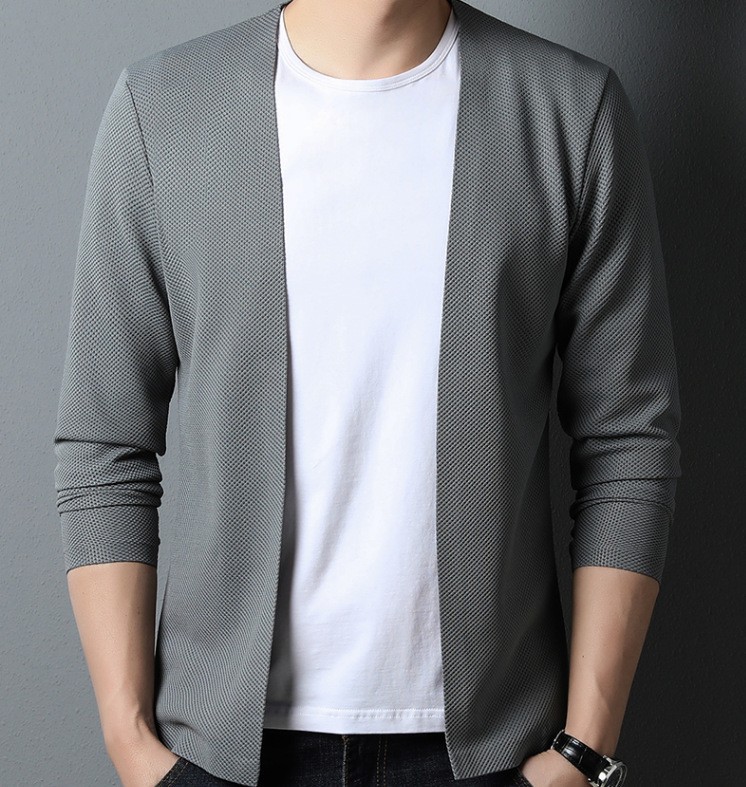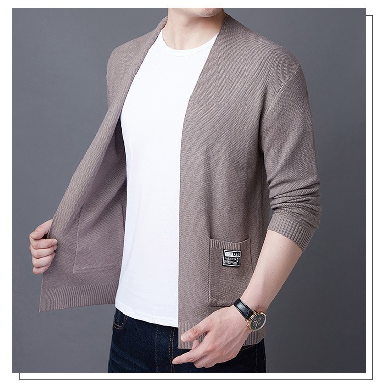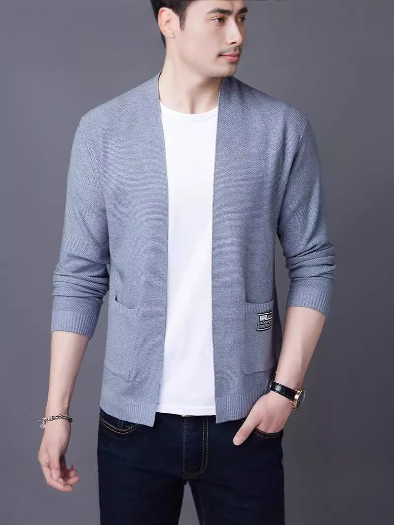 2023 봄과 가을 새로운 니트 카디건 남자 올 매치 얇은 홍콩 스타일 솔리드 컬러 버클 니트 카디건 루즈 재킷스토어 가기