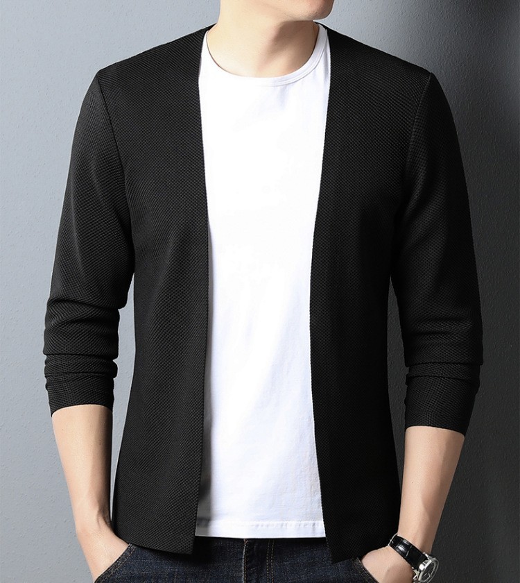 2023 봄과 가을 새로운 니트 카디건 남자 올 매치 얇은 홍콩 스타일 솔리드 컬러 버클 니트 카디건 루즈 재킷