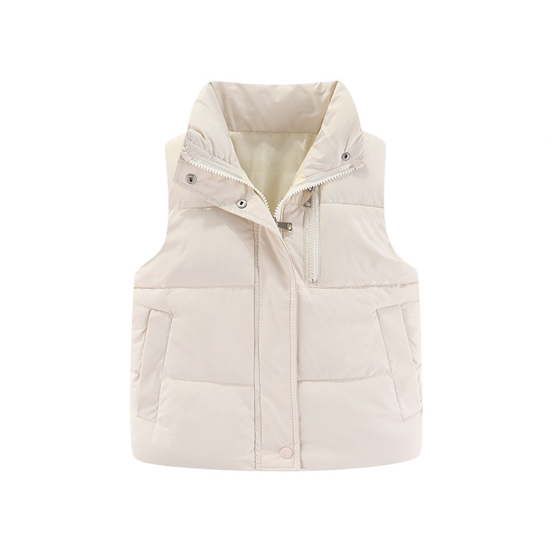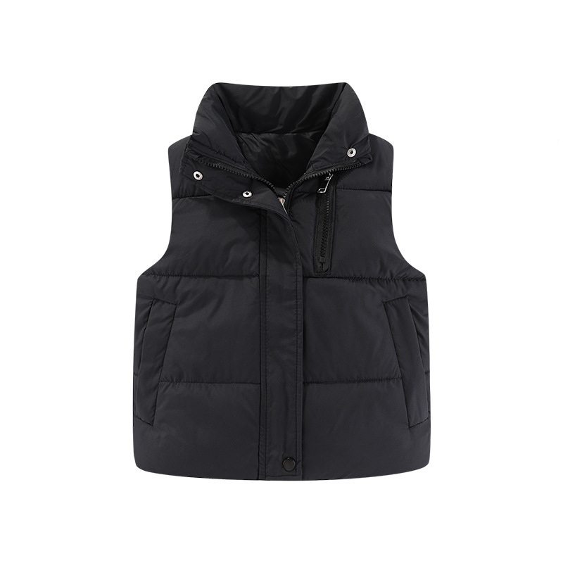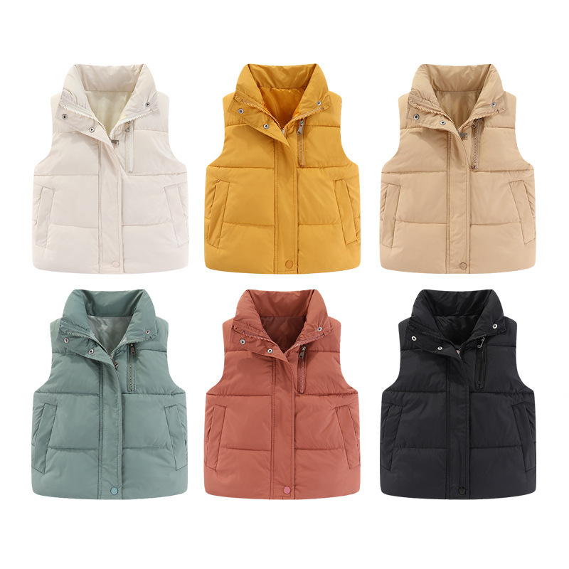 소년 겨울 조끼 2024 새로운 한국 스타일 어린이 지퍼 조끼 아기의 민소매 두꺼운 면 패딩 재킷