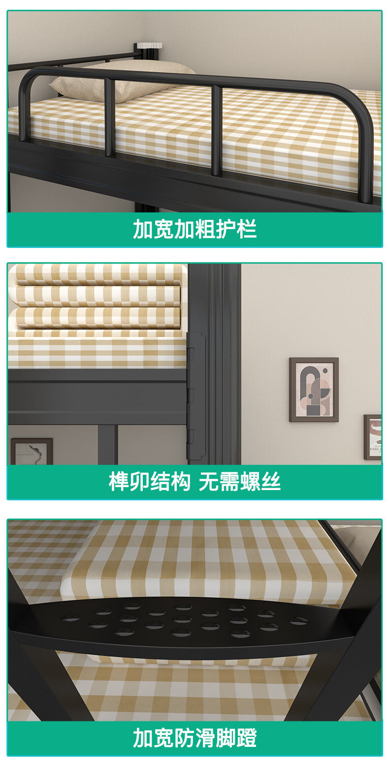 상하 이층 철제 프레임 침대 학생 기숙사 이층 학교 직원 기숙사 아파트 건설 현장 철제 높고 낮은 프로필 침대