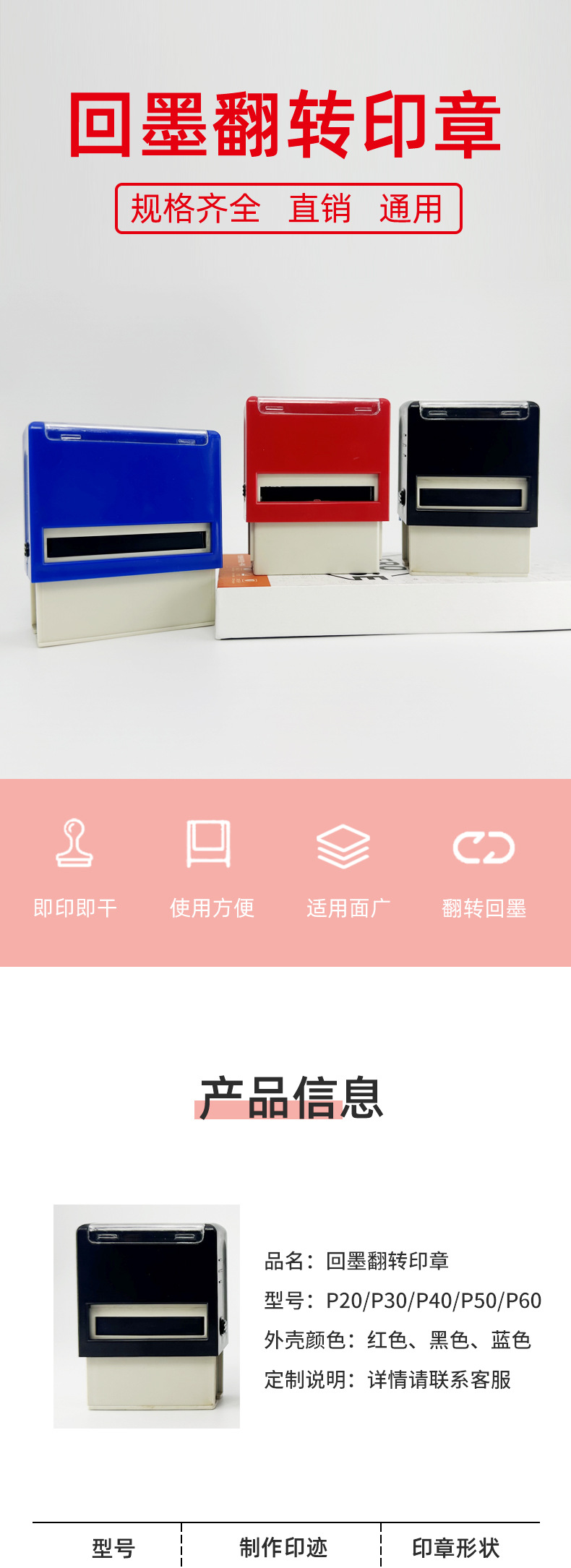 새로운 유니버설 잉크 백 씰 플립 씰 오피스 블랙 레드 블루 직사각형 잉크 백 씰 쉘 소재스토어 가기