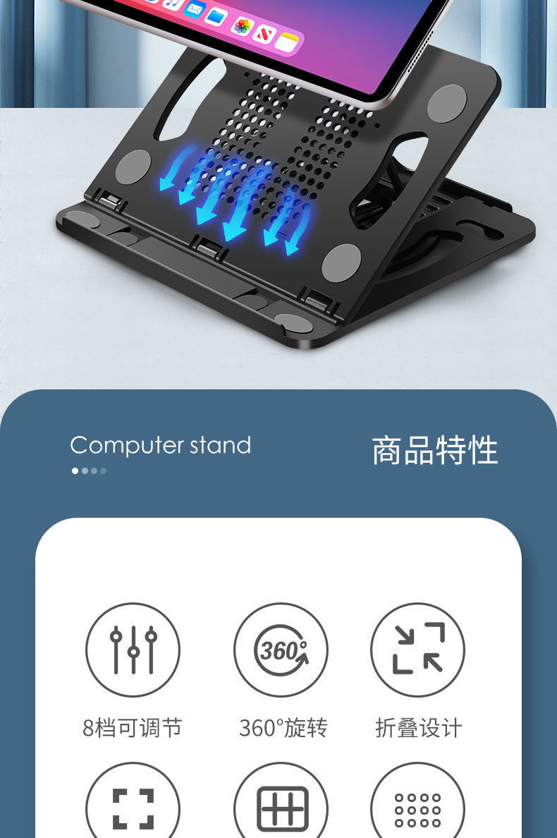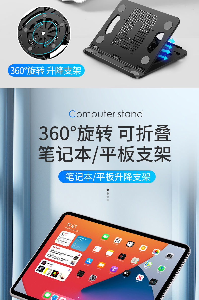 회전형 컴퓨터 스탠드 다기능 접이식 스탠드 노트북 냉각 스탠드 금속 다기능 높이 조절 컴퓨터 스탠드