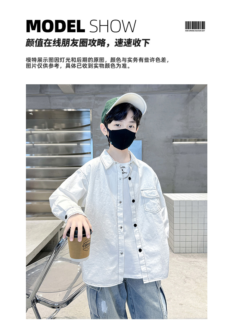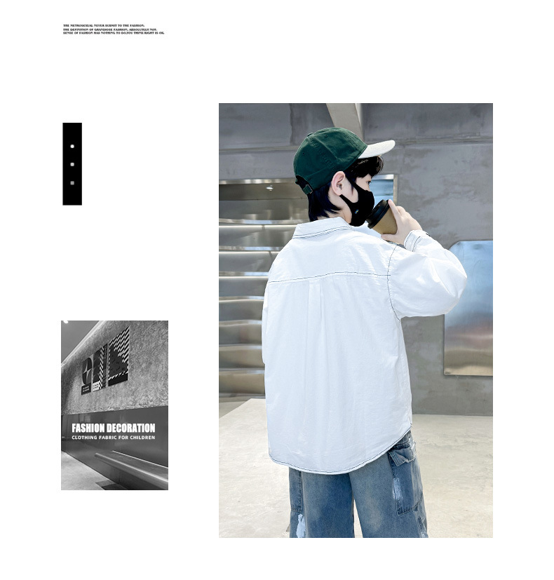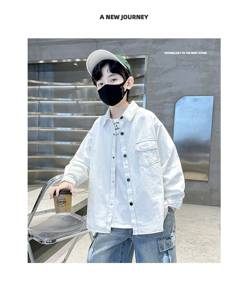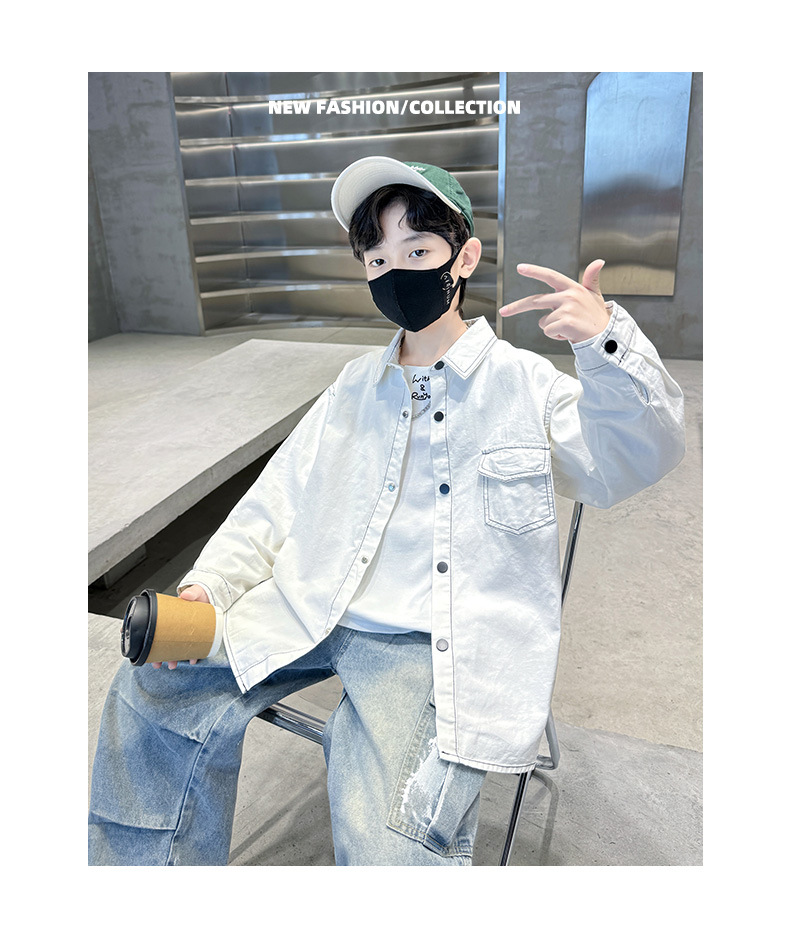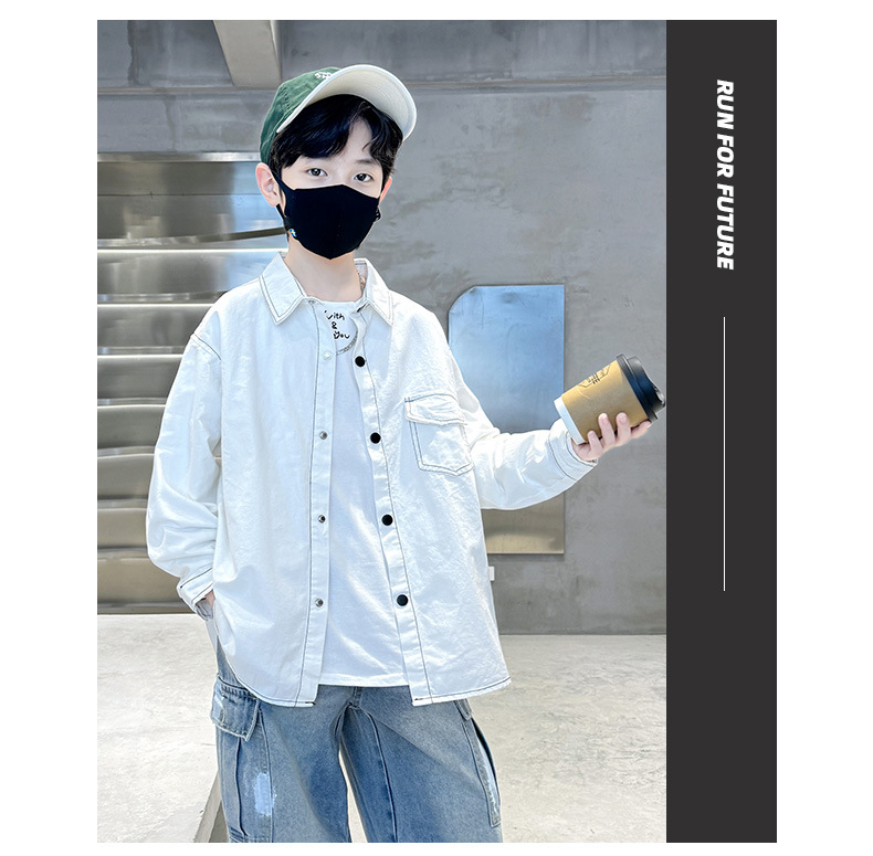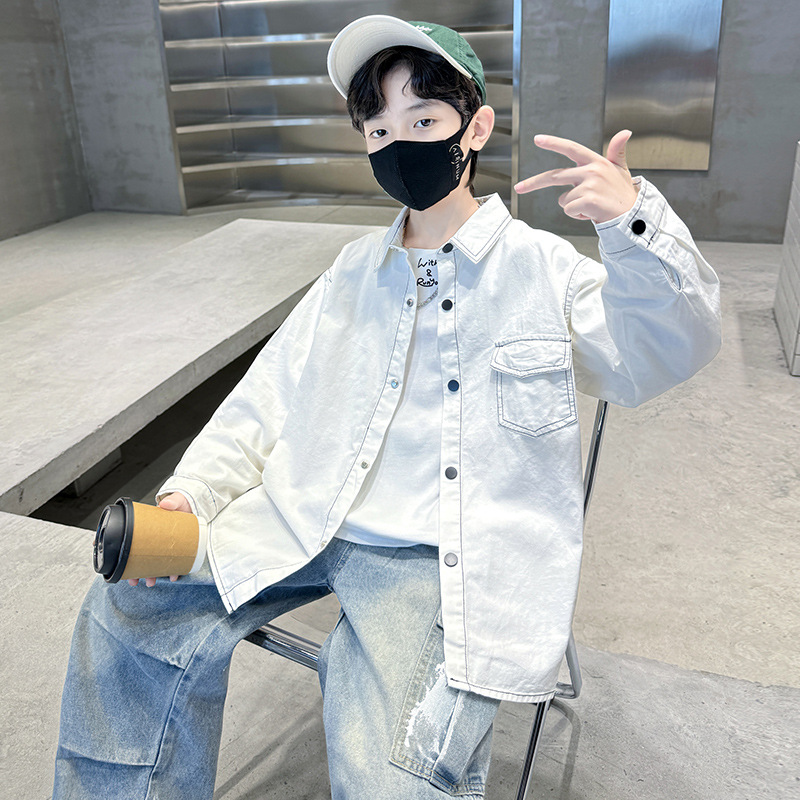 소년의 봄과 가을 셔츠 단색 트렌디 브랜드 재킷 2024 새로운 중대형 어린이 가을 캐주얼 화이트 셔츠스토어 가기