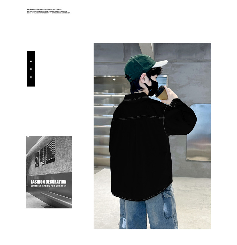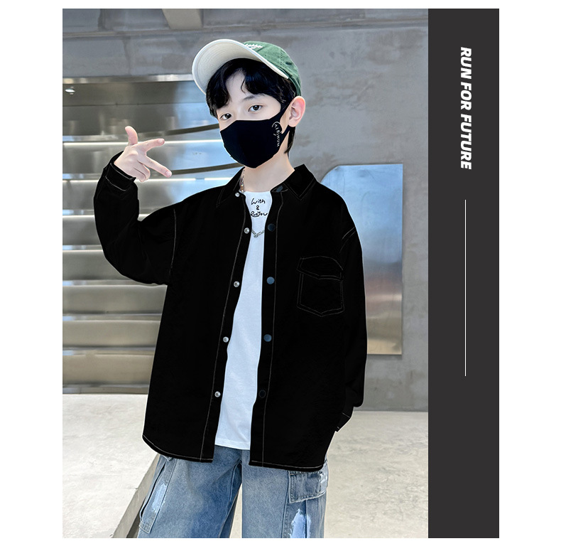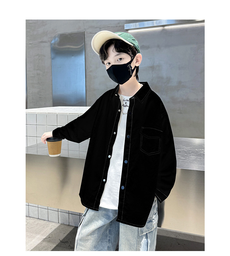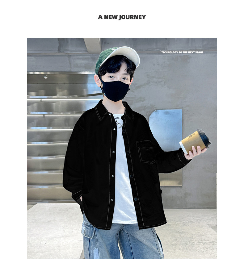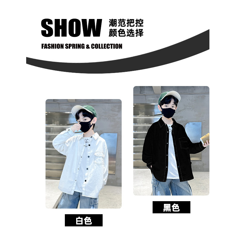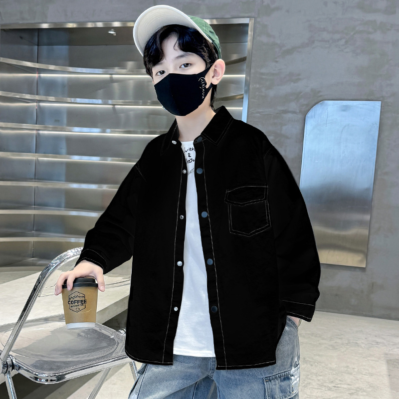 소년의 봄과 가을 셔츠 단색 트렌디 브랜드 재킷 2024 새로운 중대형 어린이 가을 캐주얼 화이트 셔츠스토어 가기