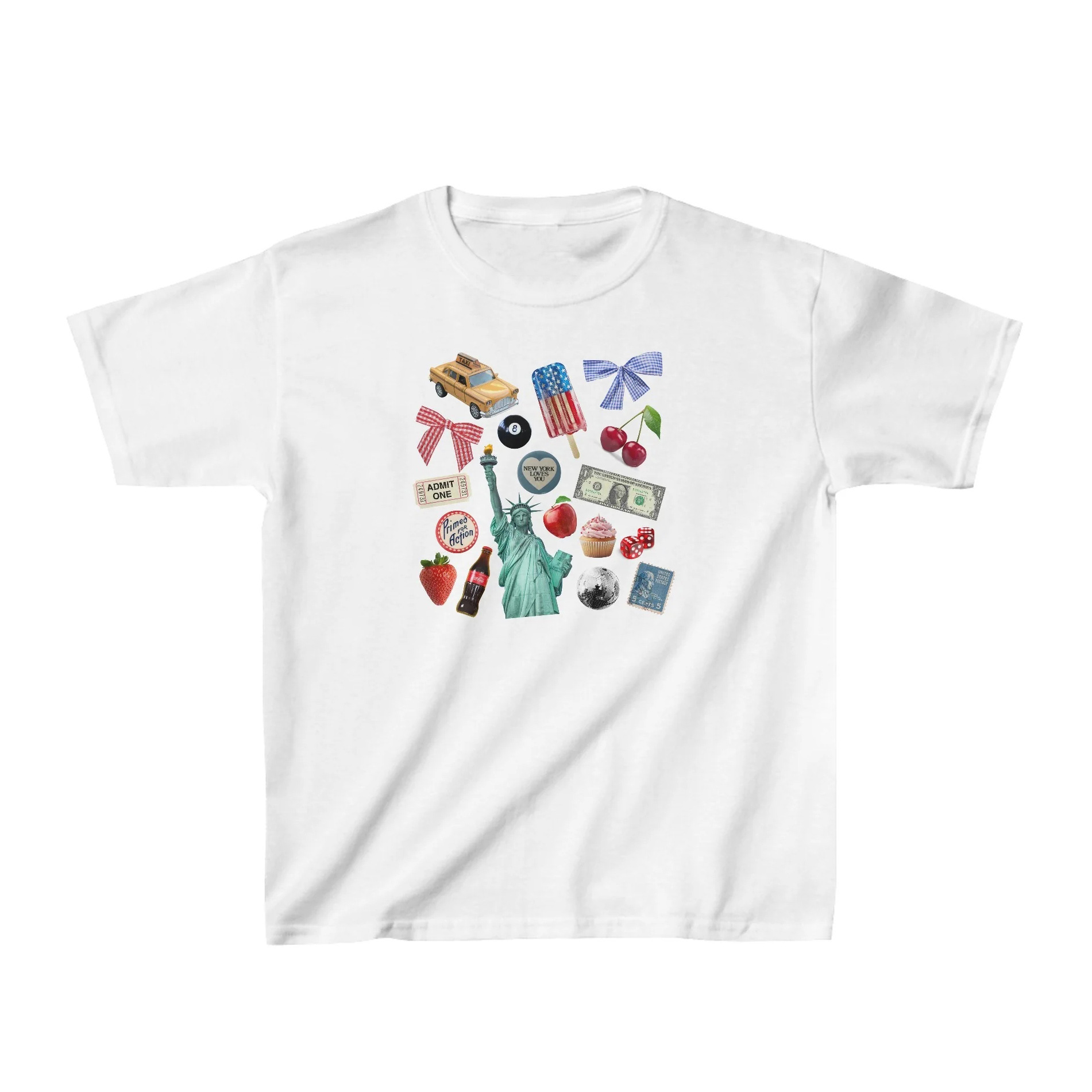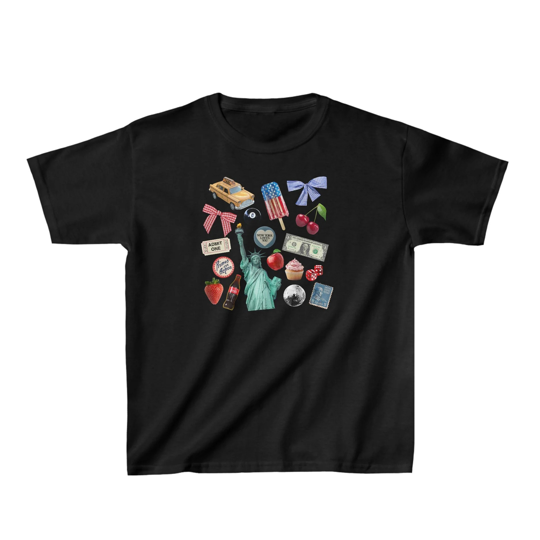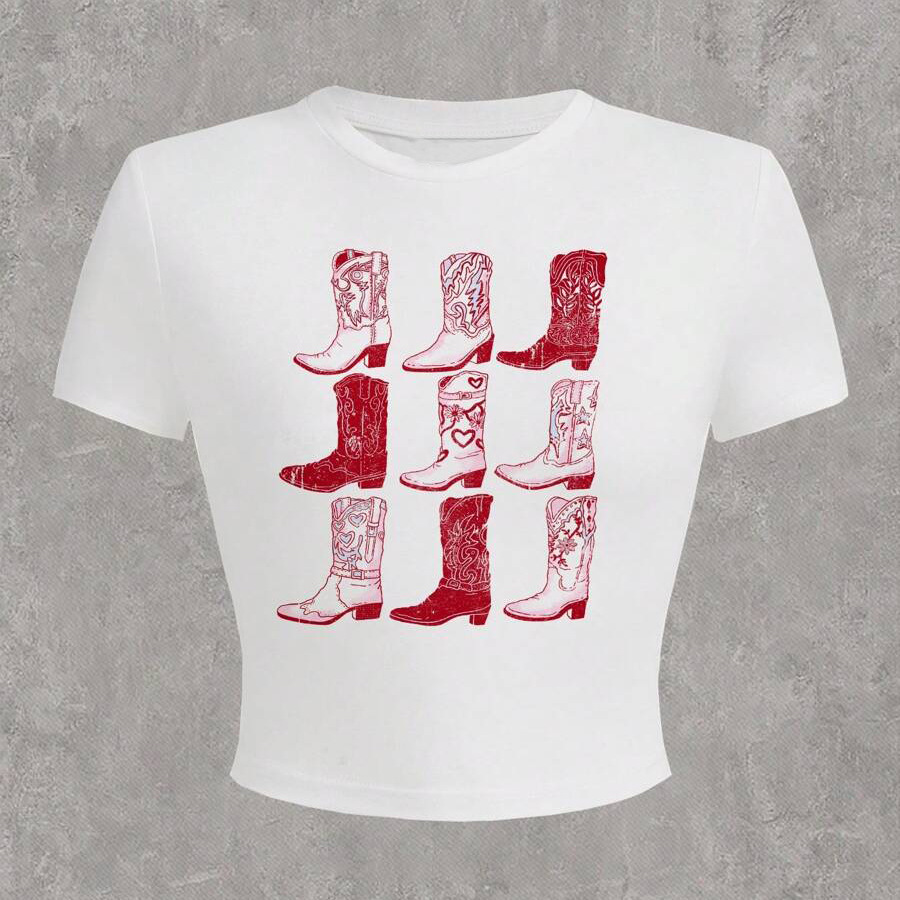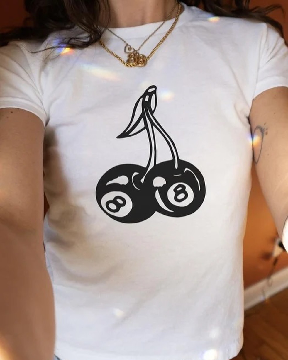 아메리칸 스타일 레트로 Y2K 밀레니엄 스타일 석류 패턴 반팔 짧은 티셔츠 여성용 핫 걸 슬림 핏 숄더 크롭 탑 트렌디스토어 가기