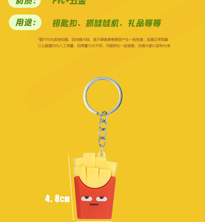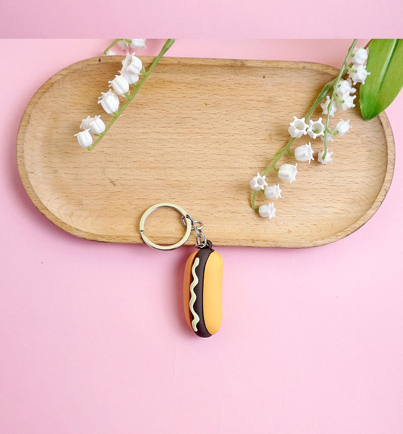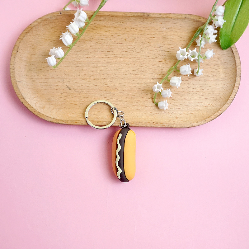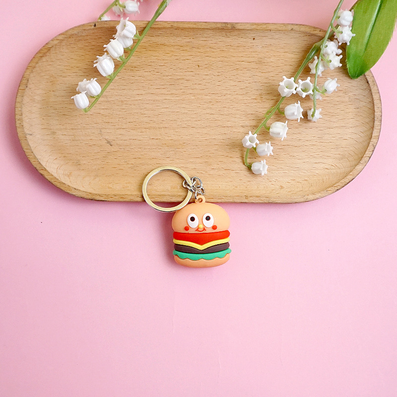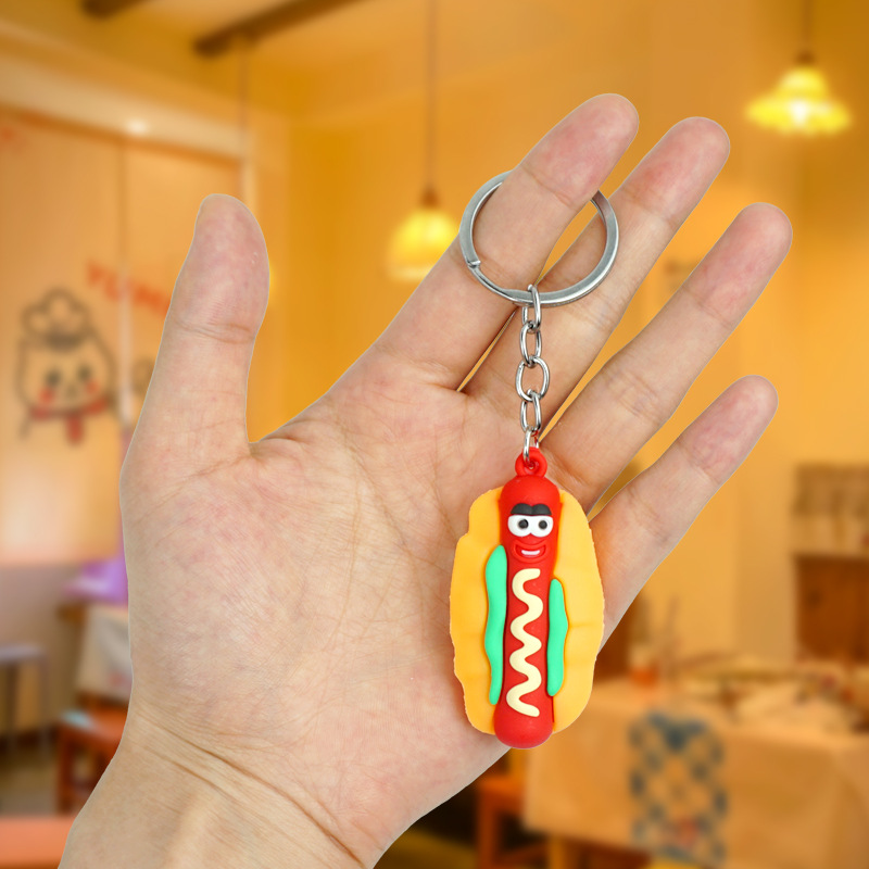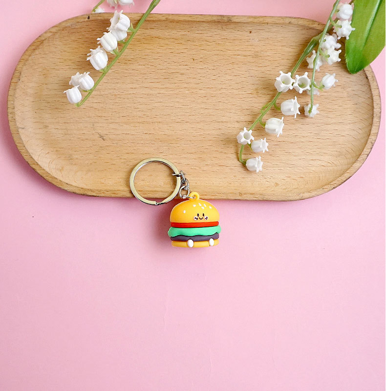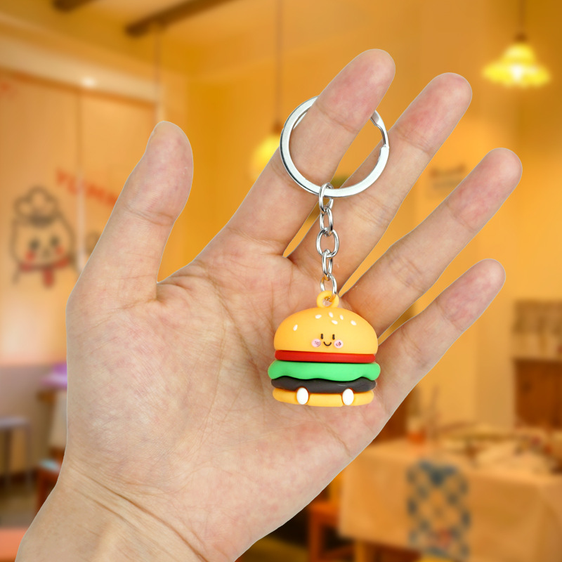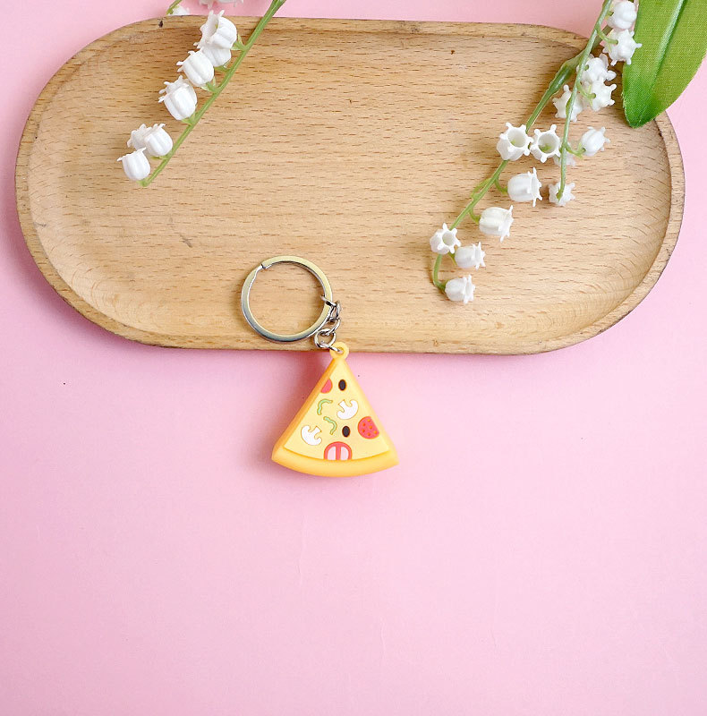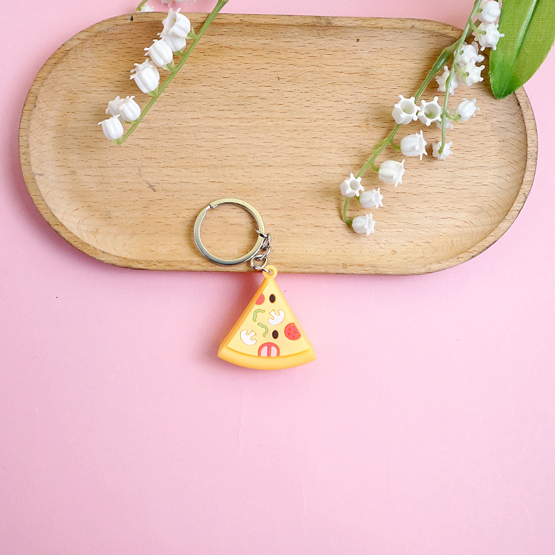 창의적이고 실용적인 시뮬레이션 프라이 햄버거 키 체인 펜던트 만화 귀여운 부드러운 접착제 피자 키 체인 장식 매달려 장식품