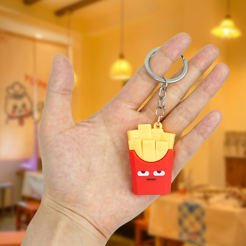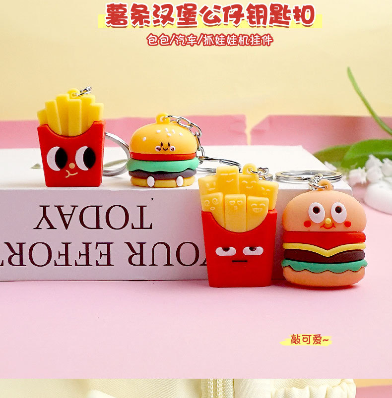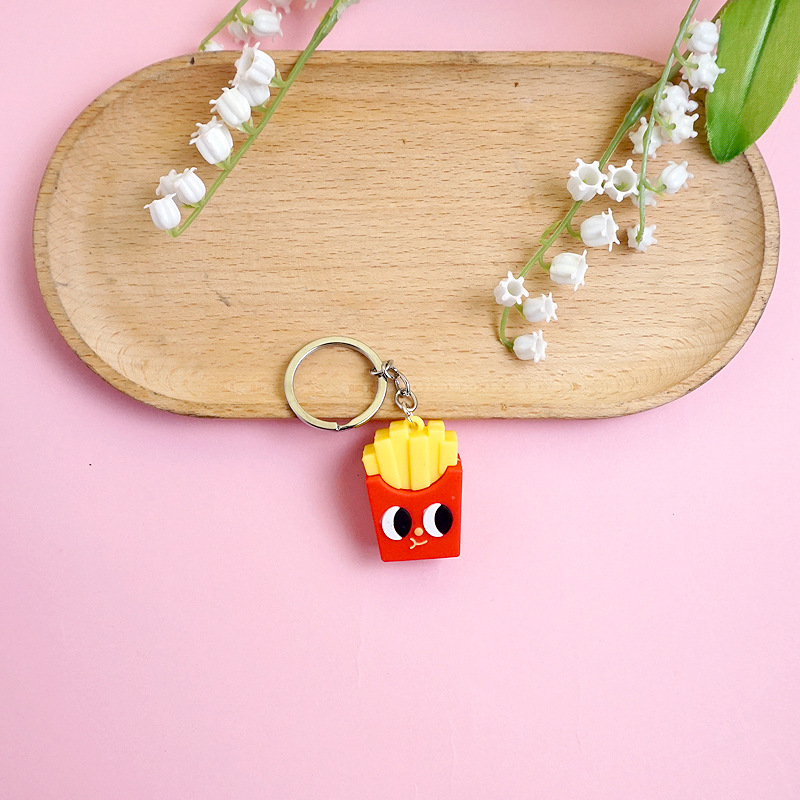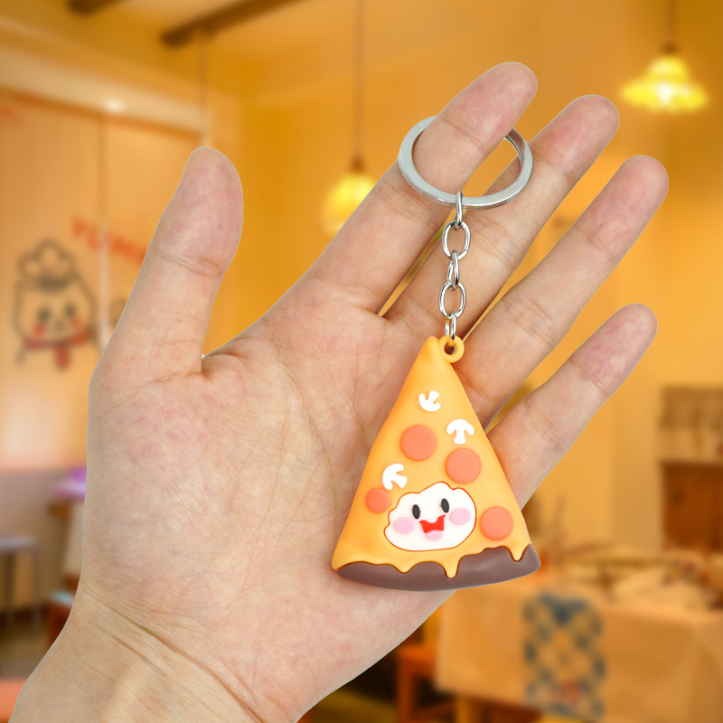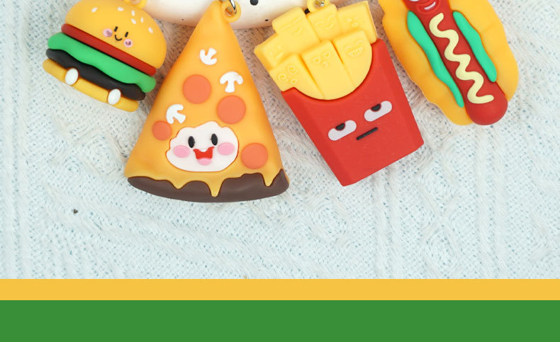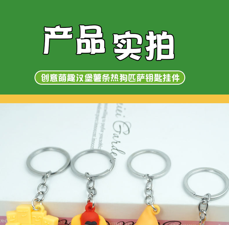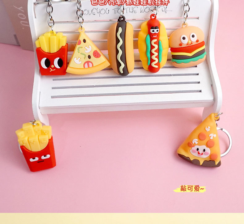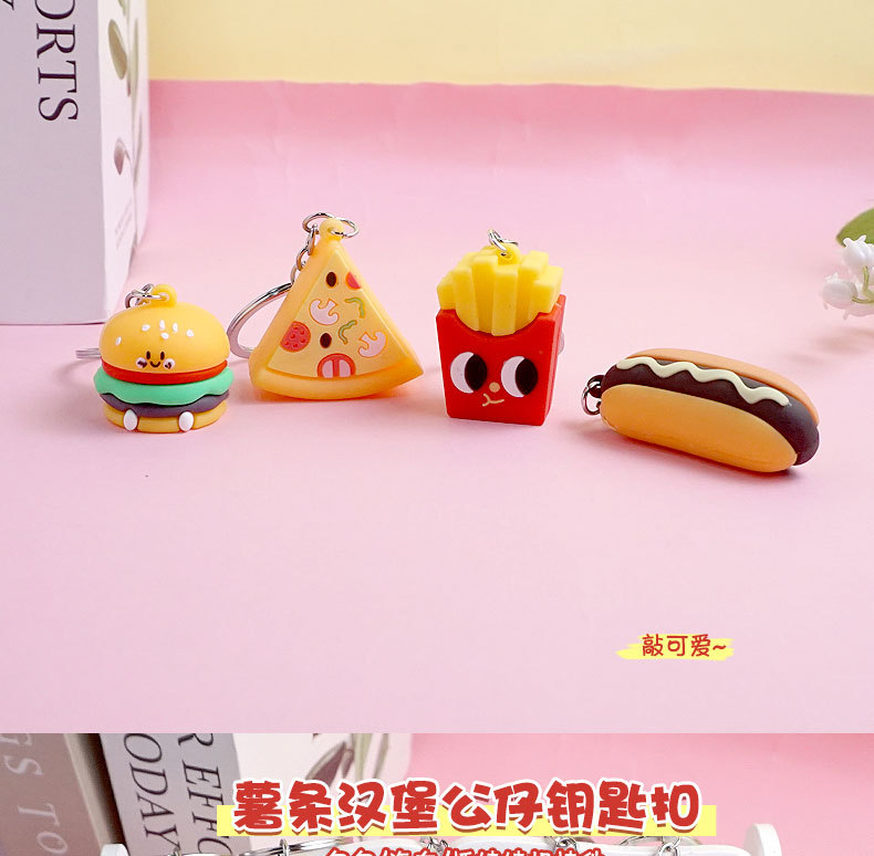 창의적이고 실용적인 시뮬레이션 프라이 햄버거 키 체인 펜던트 만화 귀여운 부드러운 접착제 피자 키 체인 장식 매달려 장식품스토어 가기